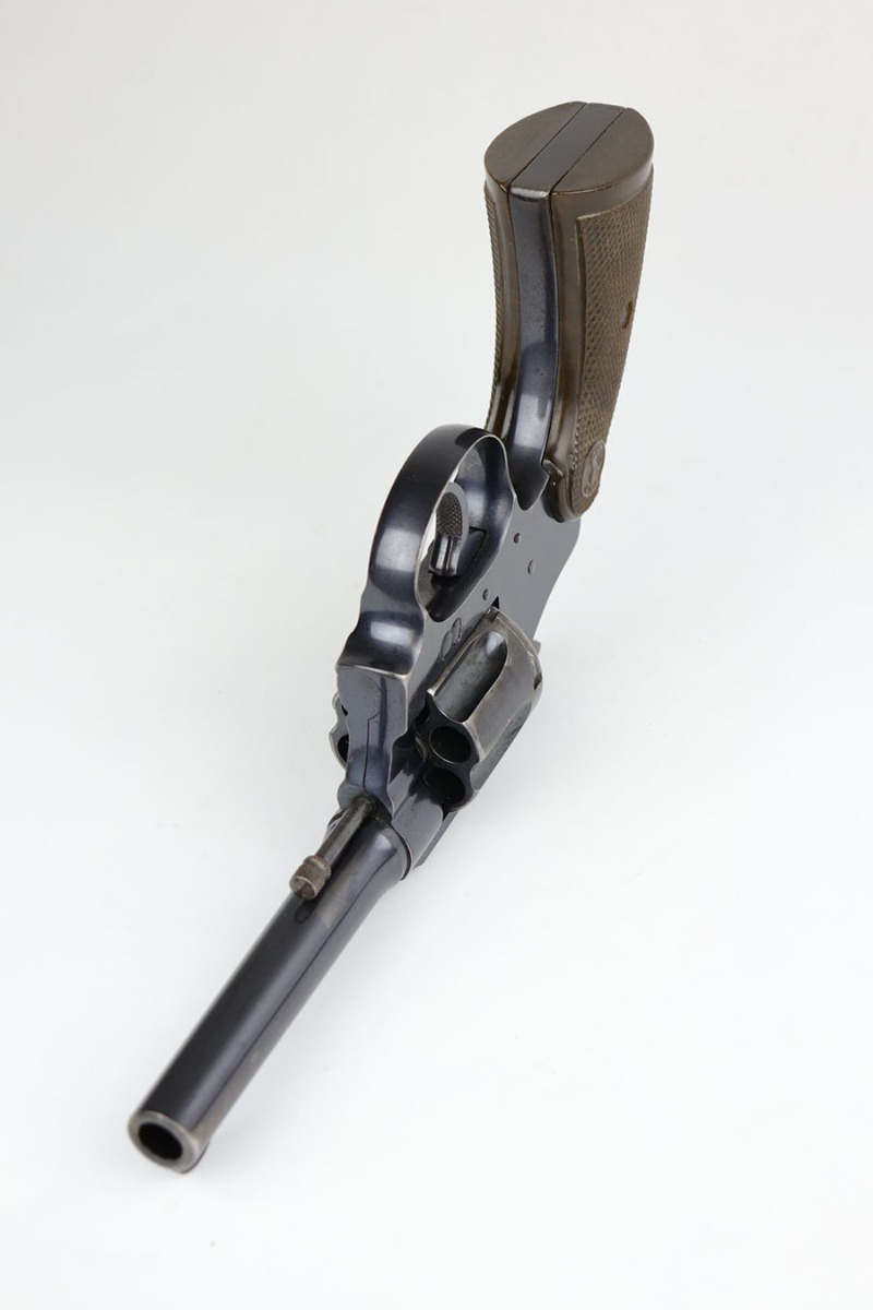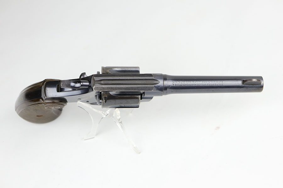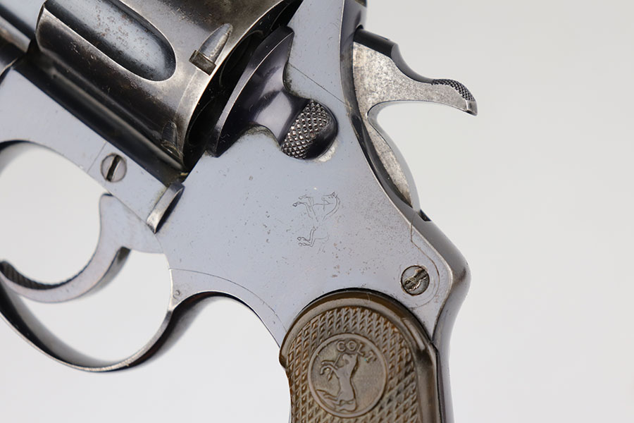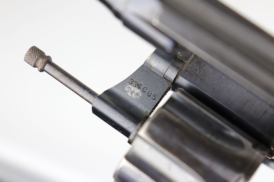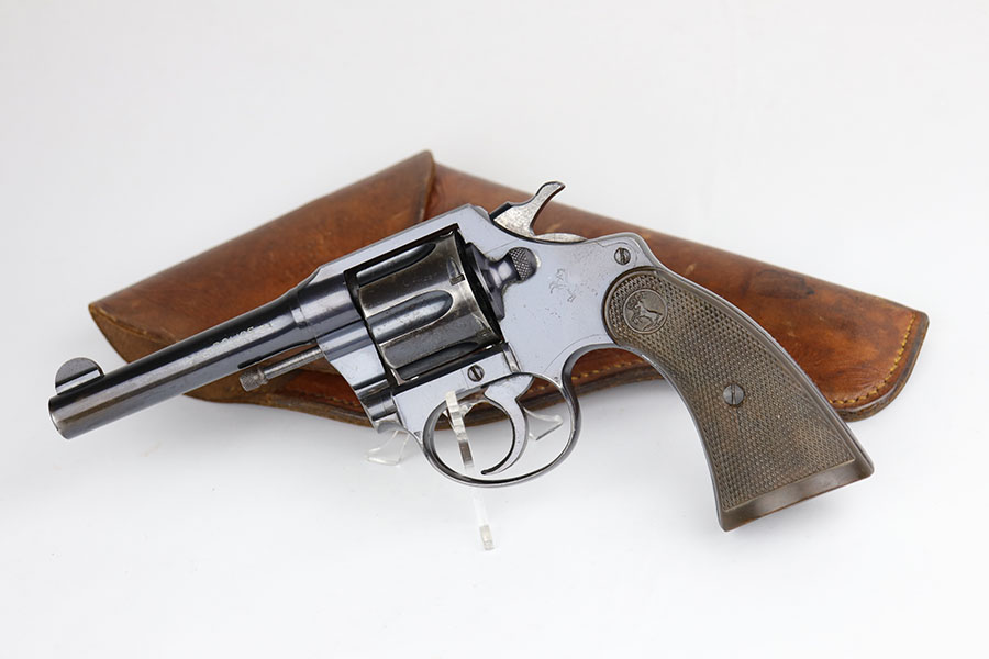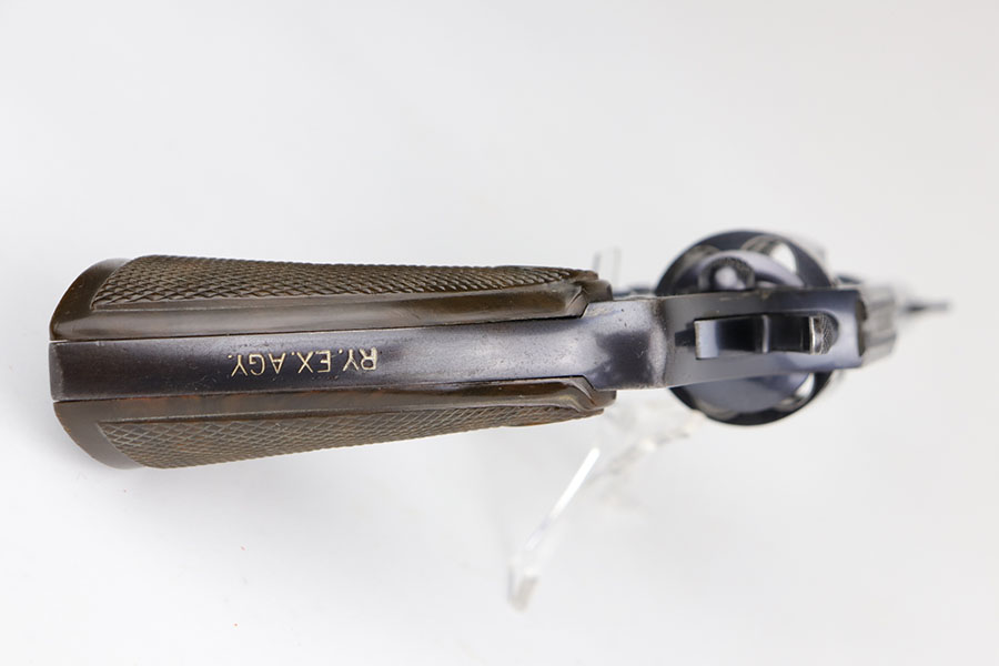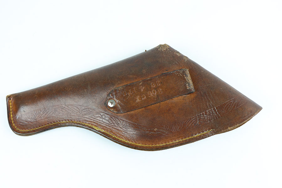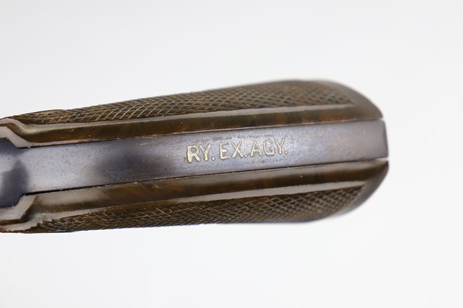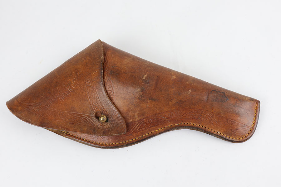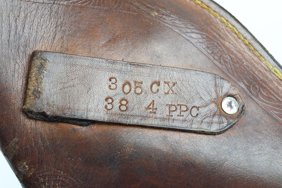 5/1/20 – This is a scarce Colt Police Positive revolver rig that was sent to the Railway Express Agency, as indicated by marking on back of frame and the front flap of the holster. It’s all original with 90+% blue remaining, with most of the finish loss on the muzzle and the cylinder. Excellent grips and bore. Four inch barrel. Smooth timing/action. Serial dates the gun to about 1930. The holster is in very good shape with clear ‘RAILWAY EXPRESS AGENCY’ marking.