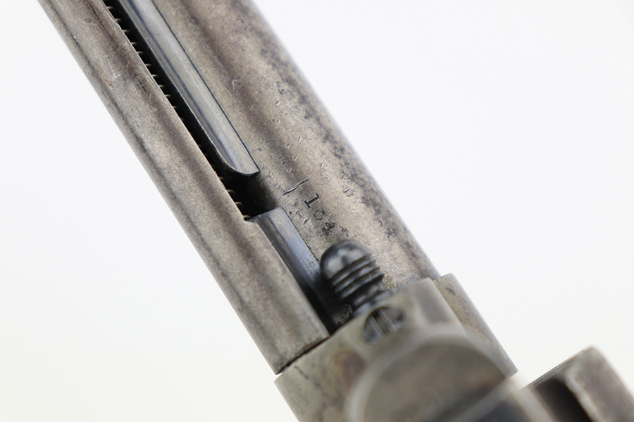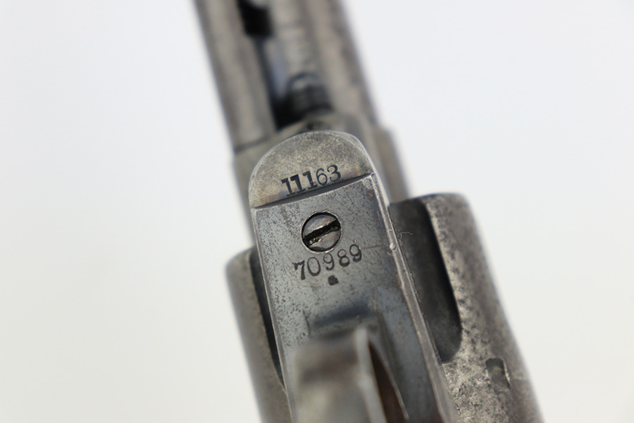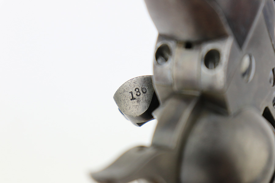 From College Hill Arsenal: In 1893 the United States military began the process of recalling the Colt M-1873 “Single Action Army” .45 caliber revolvers, many of which had been in service for almost two decades, in order to replace them with the newly adopted M-1892 Colt “New Army” Double Action .38 caliber revolver. Initially the new .38 revolvers were only issued to cavalry regiments, and as sufficient quantities were available to reequip a regiment, the new guns were issued and the venerable .45 caliber single action Colts were returned to the nearest arsenal for storage and future issue if needed. However, the .45 Colts still remained the standard service revolver for the infantry and artillery, with the new .38s being specifically intended for cavalry issue first and other branches as the new guns became available. It was during this time that complaints from the field continued to come from light artillery regiments about the length of the single action Colt’s barrel. The light or “horse” artillery had long complained that the barrel and holster length were uncomfortable for the men who were intended to ride upon the caissons and limbers of the artillery pieces while they were being drawn by the team of horses. As a result, in August of 1894, the Ordnance Department requested a study be completed at the National Armory in Springfield, MA regarding the feasibility of shortening the 7 ““ long barrels of the current stocks of .45 caliber revolvers to a more convenient length of between 5” and 5 “. These guns were all late production Rinaldo A. Carr inspected guns in the 13XXXX range, delivered in 1890 & 1891 and still in new, unissued condition. The guns had their barrels shortened a number of times, with the front sight relocated each time. More detail can be found on their site posting: https://collegehillarsenal.com/colt-single-action-army-artillery-alteration