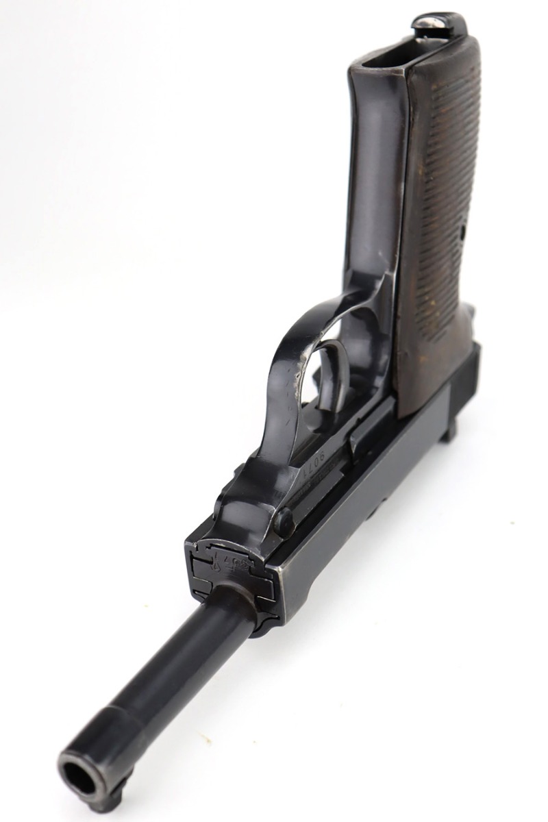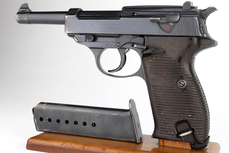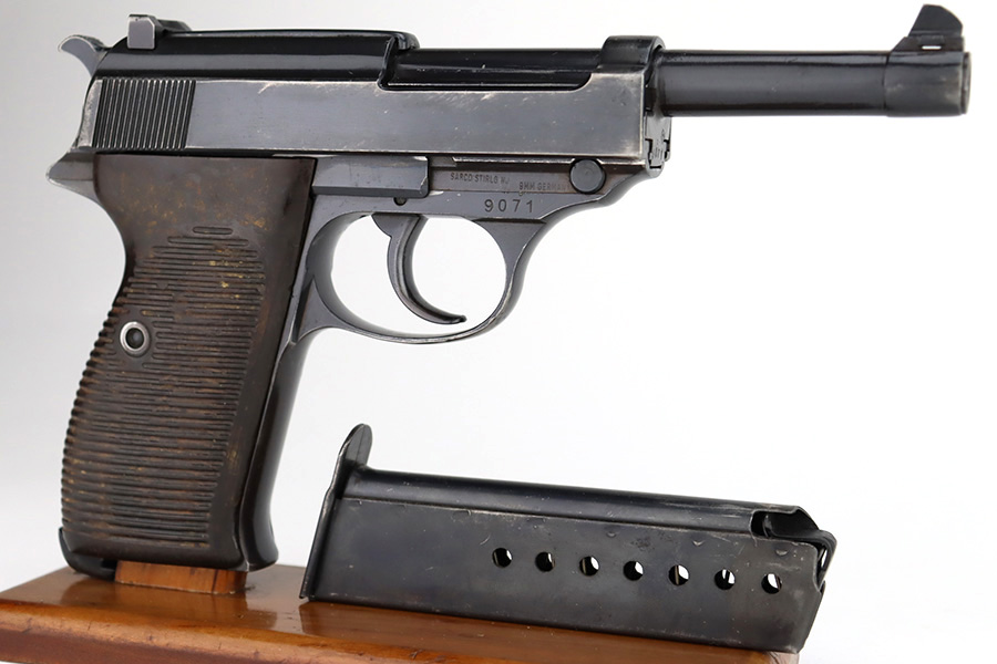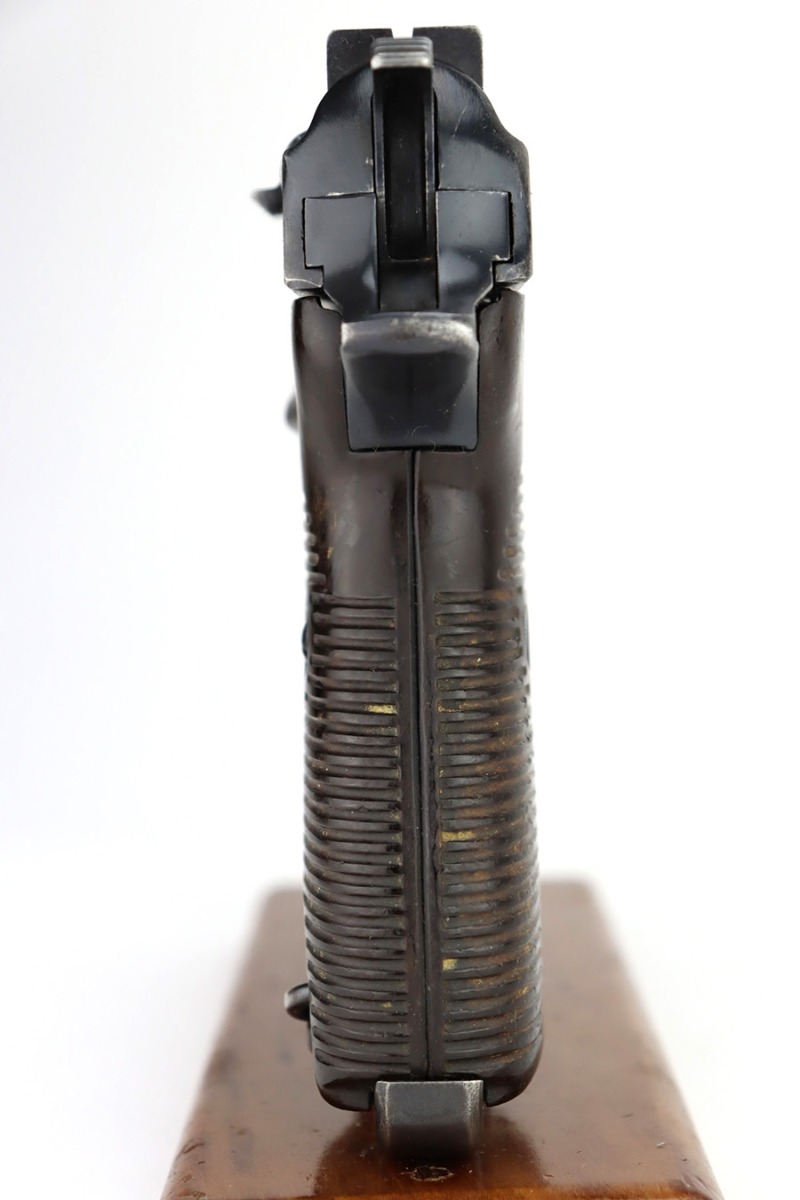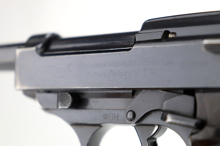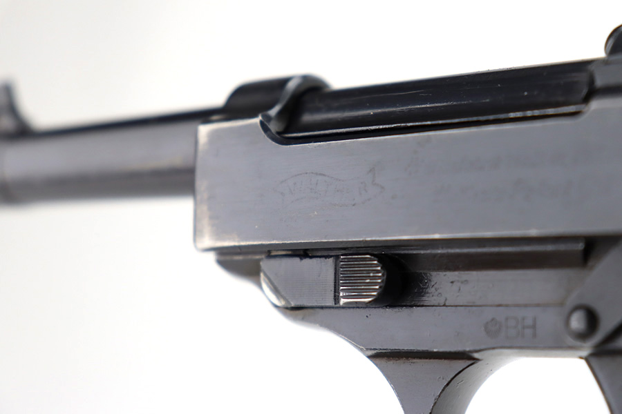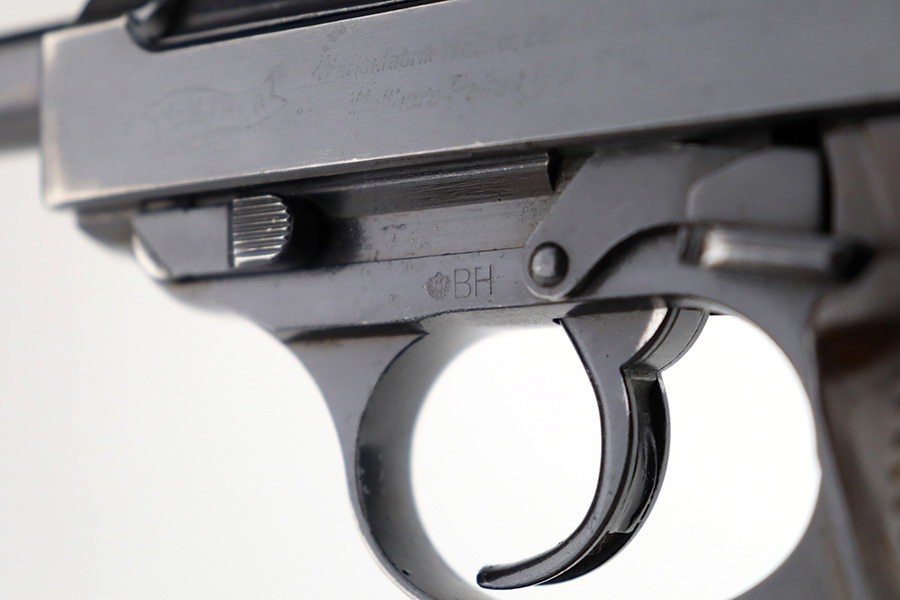 3/5/24 – This is a very nice example of a rare Walther Mod HP sold in the commercial market in the 1940’s. It is all matching but has an import mark on the right side of the frame. There is also an “Eagle BH” marking on the left side of the frame, indicating it ended up with the Austrian military after the war. The finish rates about 96% with minor muzzle and high edge wear. Fitted with period-correct bakelite grips and comes with an un-marked magazine. Minty bore. De-cocker is functional.