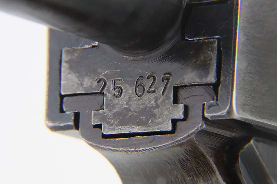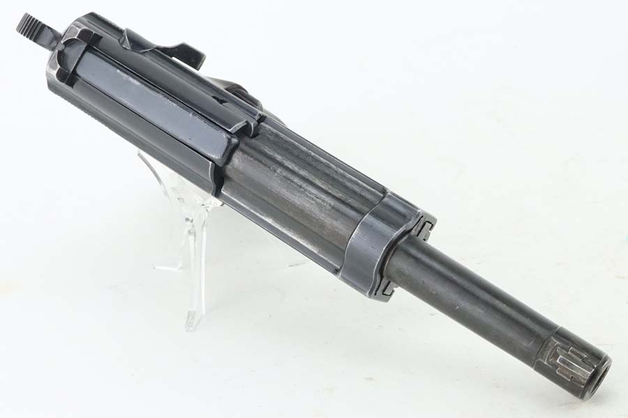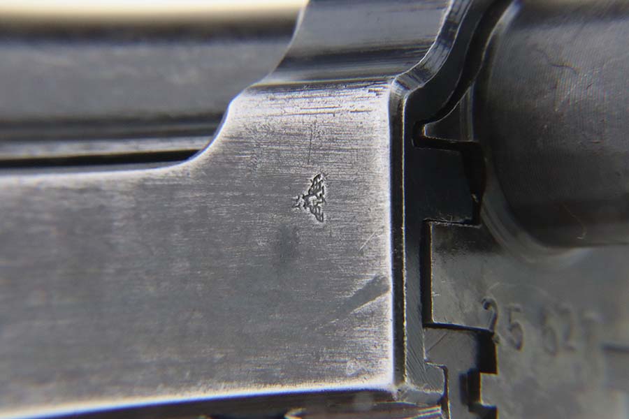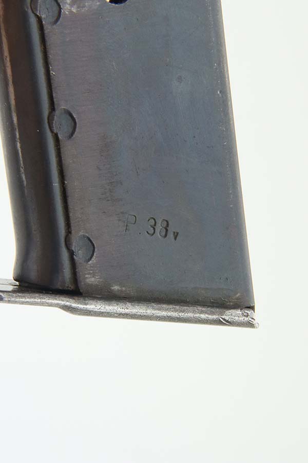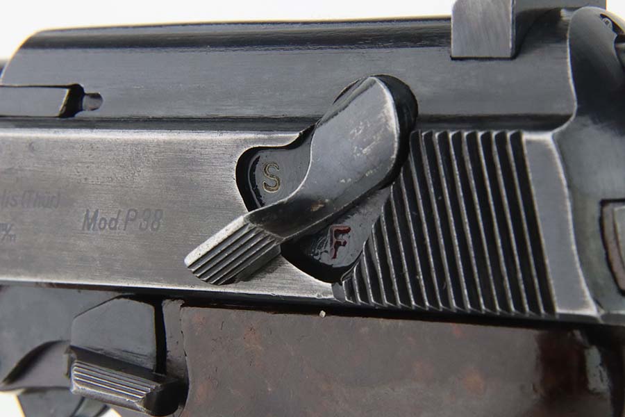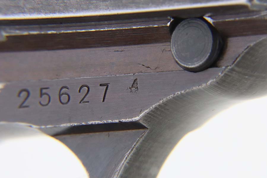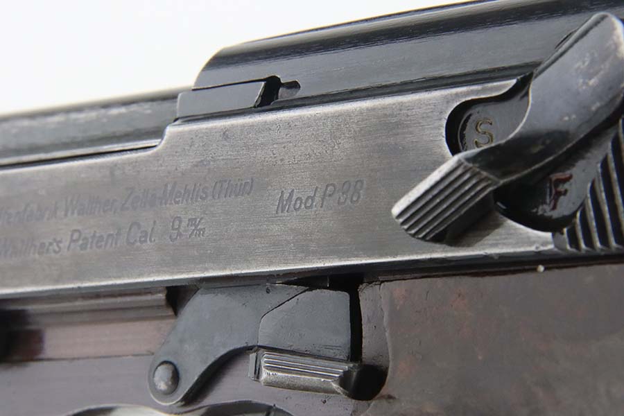3/26/24 – This is a nice example of a rare Walther Mod P.38 sold in the commercial market during WW2. This one is all matching and has the proper “Eagle N” proofs. This gun is rare as only 1,800 were produced. It has retained roughly 75% of its finish with obvious thinning along both sides of the slide, general high edge wear, and minor muzzle wear. Slight plum-colored frame. Fitted with period-correct reddish bakelite grips and comes with an “Eagle 359” marked Walther magazine. Excellent bore. De-cocker is functional.