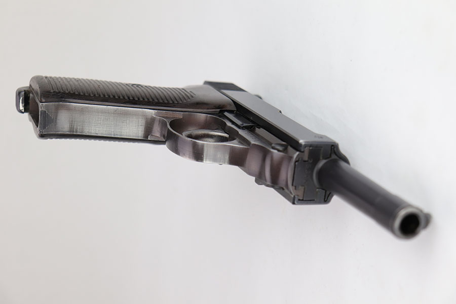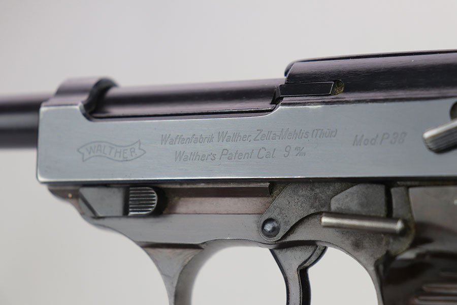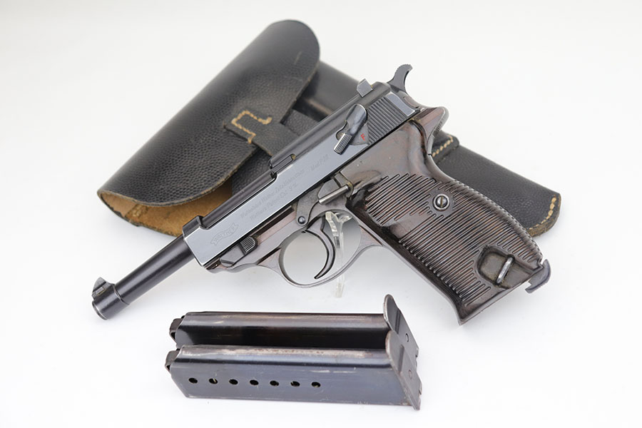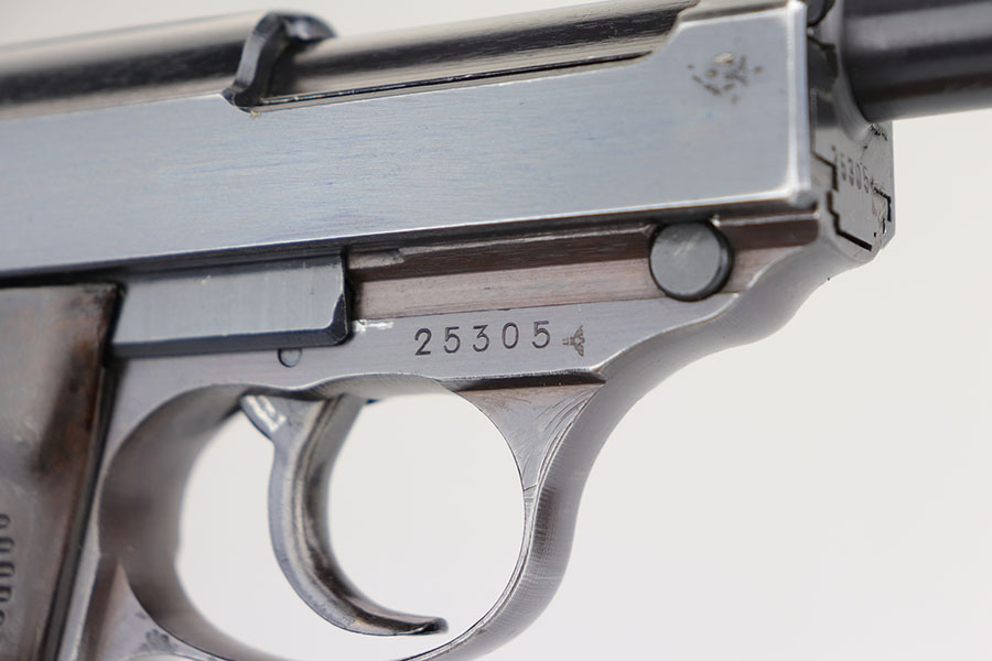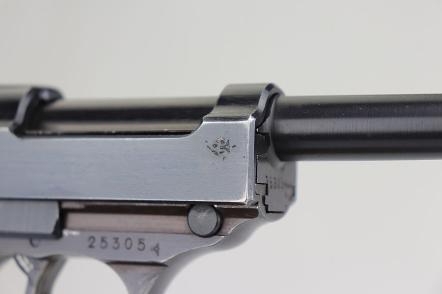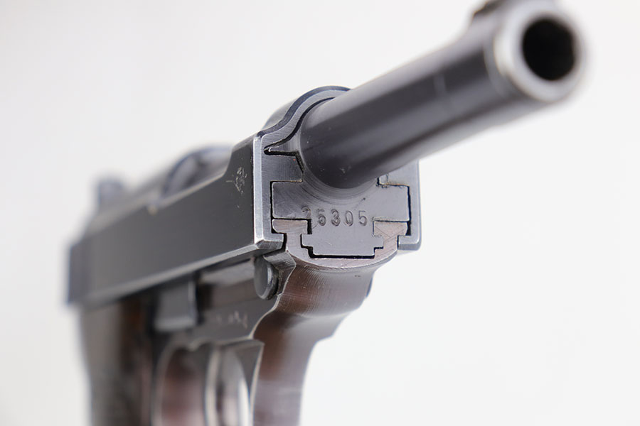 3/17/20 – This is a very nice example of a rare Walther P.38 variant. It is a commercial Mod. P38 rig, one of only 1,800 produced. The pistol is all matching and original with 90-92% of the bluing remaining, showing just a minor hint of high edge wear on the slide, but thinning throughout the front strap. The front strap does have a casting flaw that is surprisingly common on these pistols. Mirror bore and excellent grips. One magazine is ‘ac’ marked on body, other is Mauser made. Comes with a minty holster that is 1944 dated.