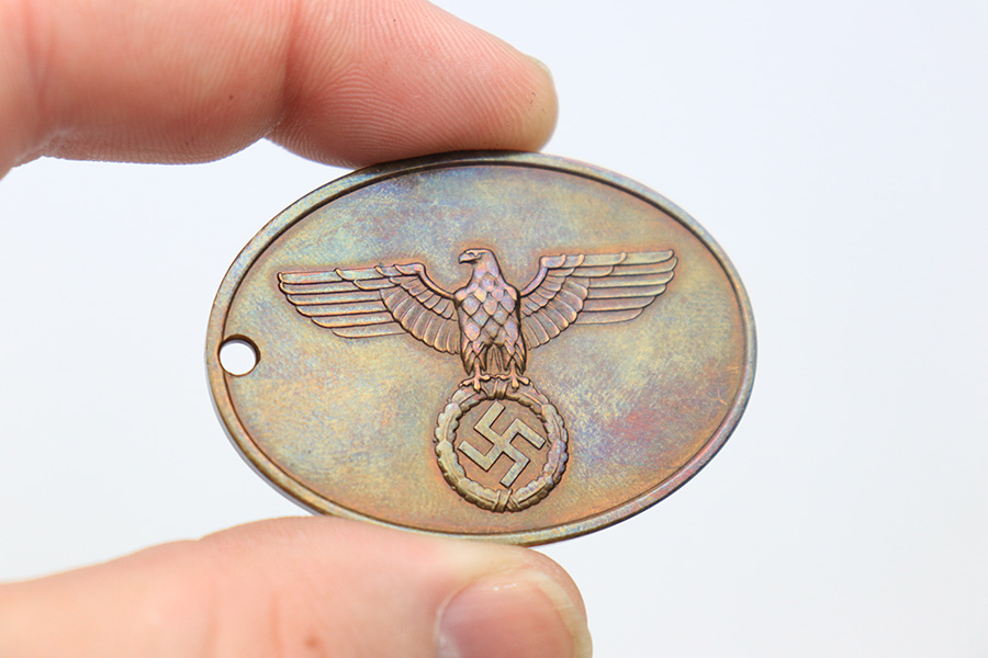 5/31/22 – This is an original WW2 German State Criminal Police Warrant Disc. Also known as a Kripo badge. These were identification badges worn by officers on duty and acted as a search warrant for the Third Reich. The reverse of this badge shows the badge number “9323” and is in excellent condition. This badge has been examined by experts and has been found to be original based on correct character traits to other known originals.