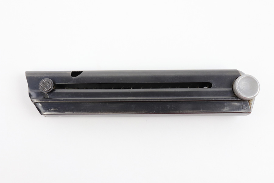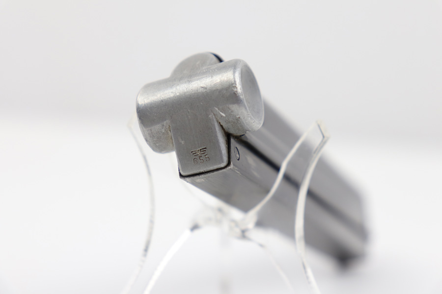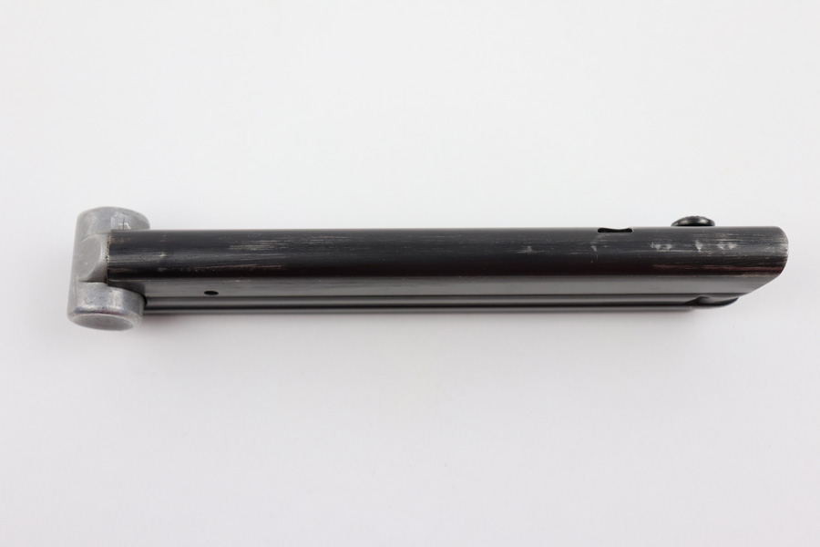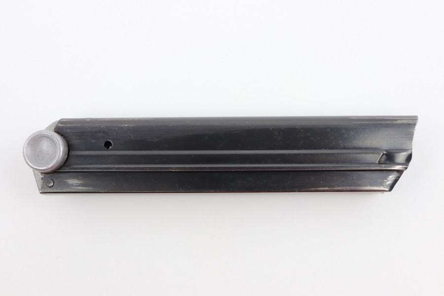 8/8/19 – This is an original Mauser eagle/655 military proofed Luger magazine from WW2. The magazine is rare and desirable due to the lack of a serial number on the base. This magazine would be appropriate for a 1941 or 1942 dated Luger with eagle/655 proofs on the frame. Beautiful condition with minimal bluing loss, and no rust or pitting. Strong fully functional spring as well.