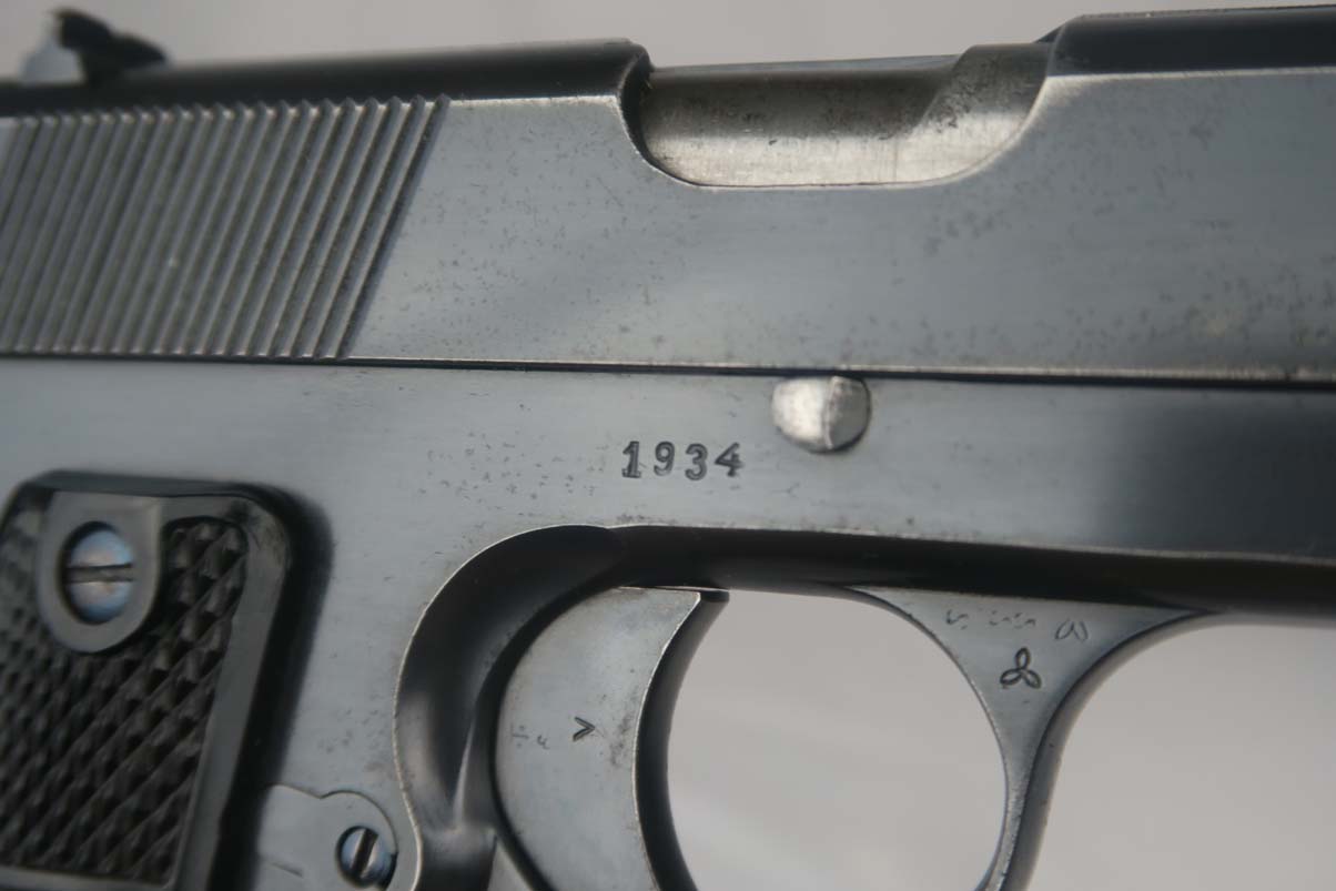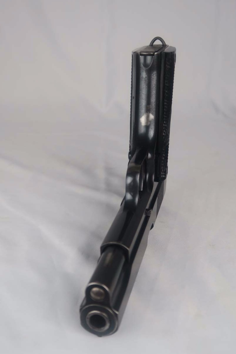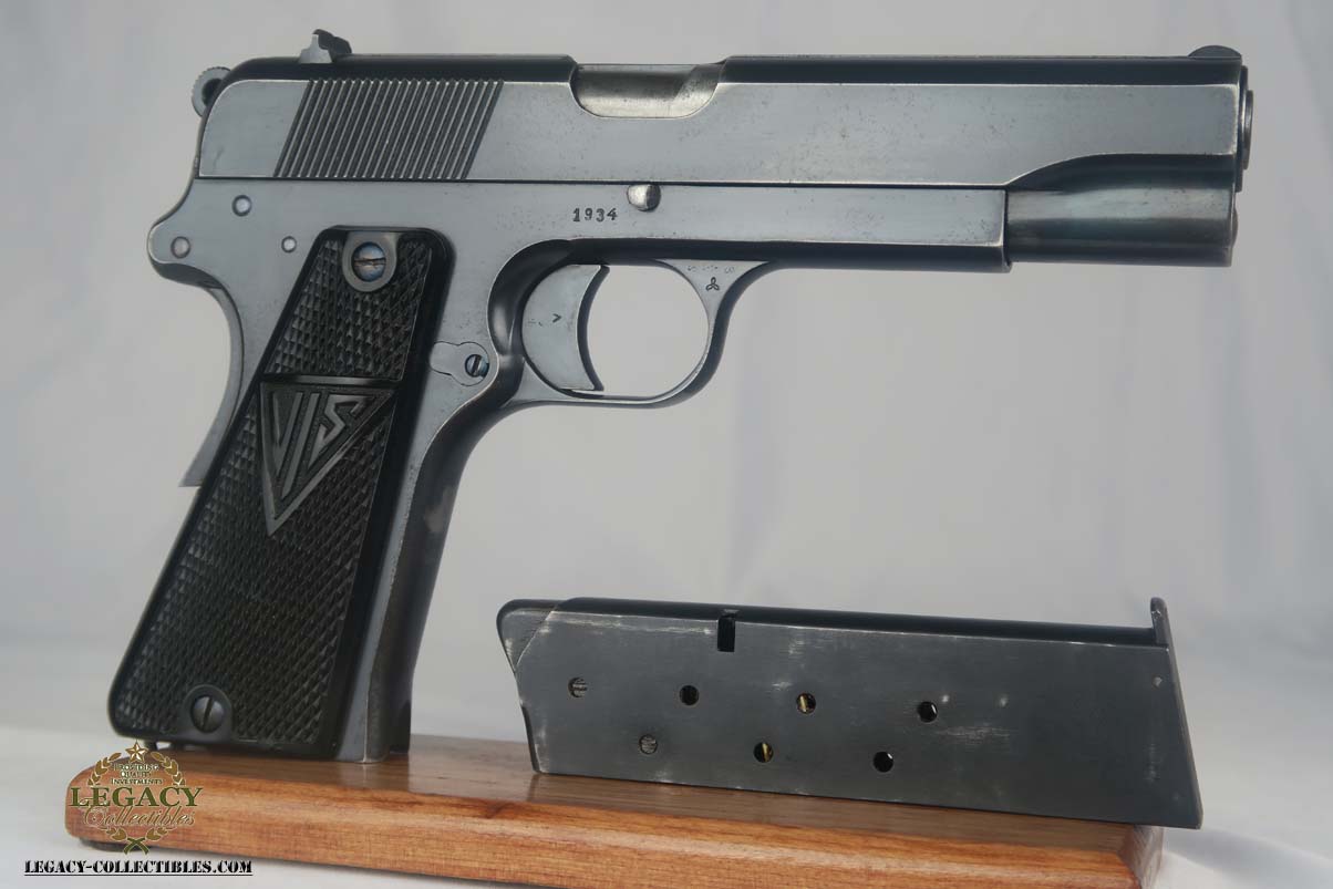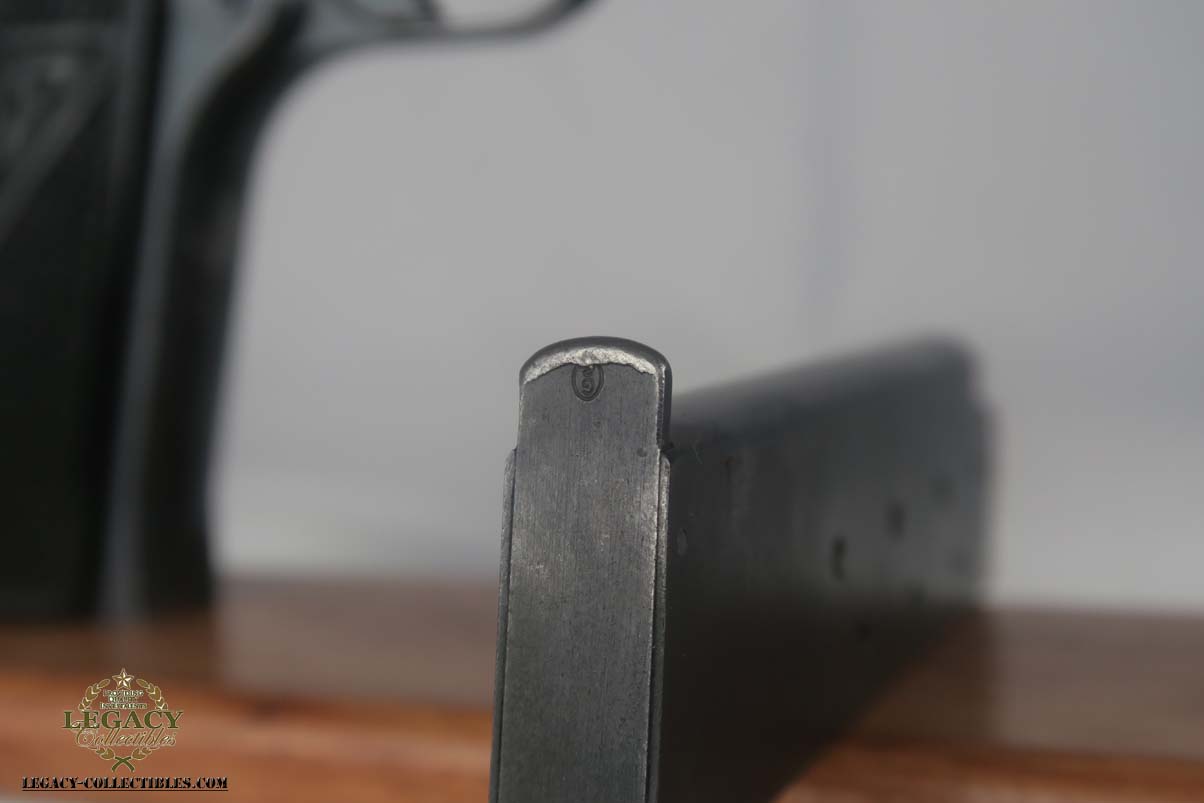 5/23/17 – In 95-96% original condition, we have a top example of a very early, 1936 dated Polish Eagle Radom pistol.  This first year of production pistol is all matching and 100% factory original.  The slide is beautiful, but there are two noticeable spots of wear – one on the trigger guard, one on the front strap.  This is a fairly early 1936 pistol, and it bears unique early features such as the rounded rear sight.  With the serial range for these pistols being 01-05500, this is one of the first 2,000 Radom vis 35’s ever manufactured.  The vis 35 was one o the most elegant pistols of the era and has reached an iconic status with collectors.  This is one of the prettiest examples that we have seen and for it to have survived the entirety of WW2 in such fine condition is almost unheard of.  The bore is in similarly excellent condition. If you are looking for a top example of this legendary Polish-made firearm, then this is for you.