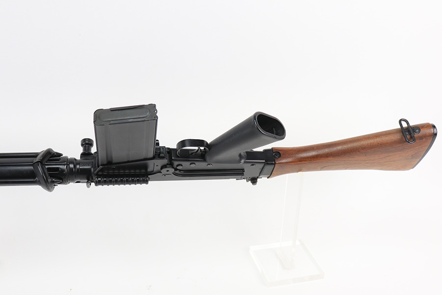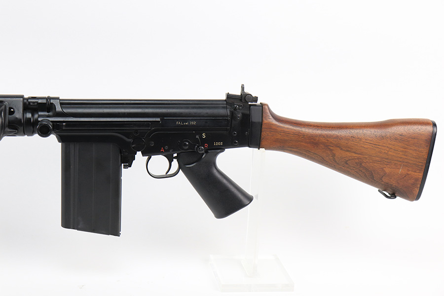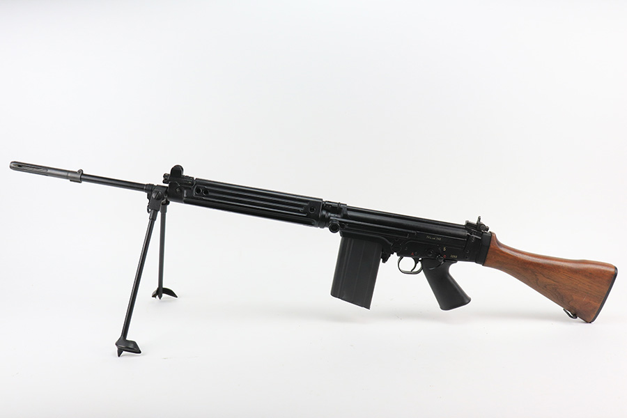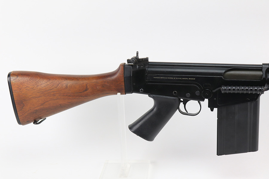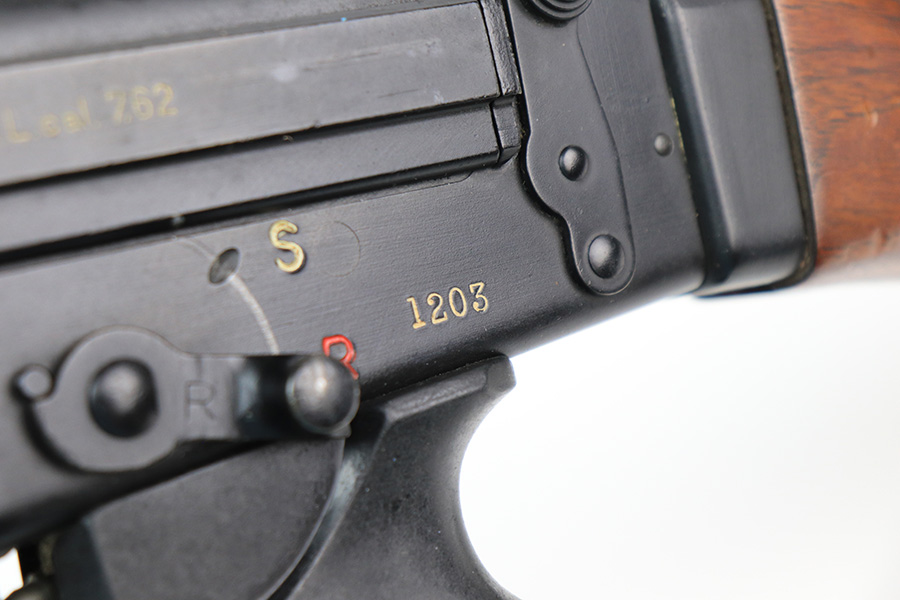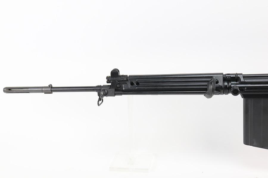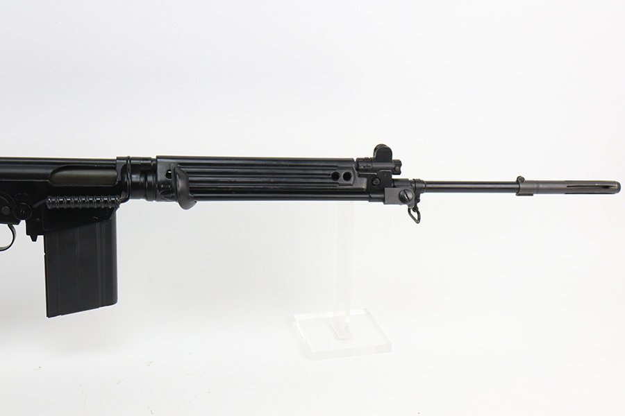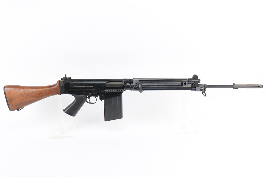 5/13/22 – This is a very rare FN FAL G-Series rifle in excellent, original condition. The rarity of the G-series FN-FAL rifles stems from the receivers being capable of accepting select-fire components, e.g. being capable of being converted to a fully automatic rifle. Initially the BATF determined that these had to be registered or destroyed. However in 1963 the BATF reversed this position and determined that they were not “machine guns” and could be legally imported and sold as semi-automatic rifles. Additionally in 1973, the BATF issued a new opinion that specifically exempted, 1,836 G-series FN-FAL rifles as imported by Browning (by serial number) from the provisions of the National Firearms Act. This rifle is listed by serial number within the exempted serial number block. The left side of the lower receiver is correctly marked “A/R/S”, which are the fully automatic markings; with the selector switch correctly factory blocked so that it can’t rotate to the automatic position. These are the same original markings as found on original select-fire rifles. This particular example is in excellent condition, with minor flaking of the finish on the handguard but the rest of the rifle is beautiful. Terrific, shiny bore. This listing also includes a very rare FN bayonet, and two original magazines from the 1960s. C&R eligible. More info on the history of these can be viewed here: https://www.youtube.com/watch?v=7c0tiiBY494