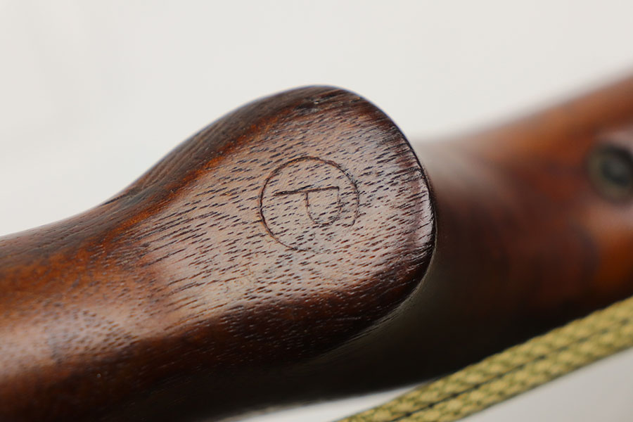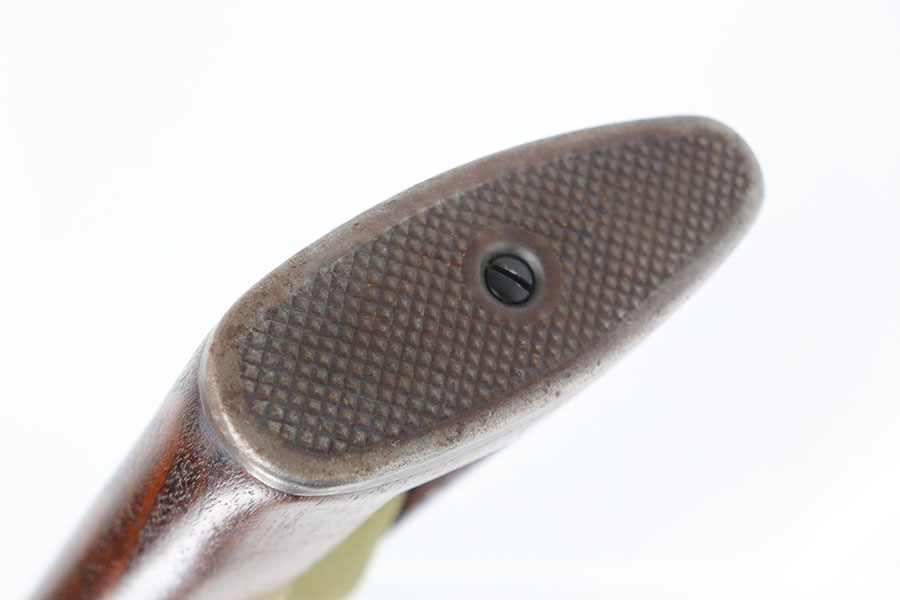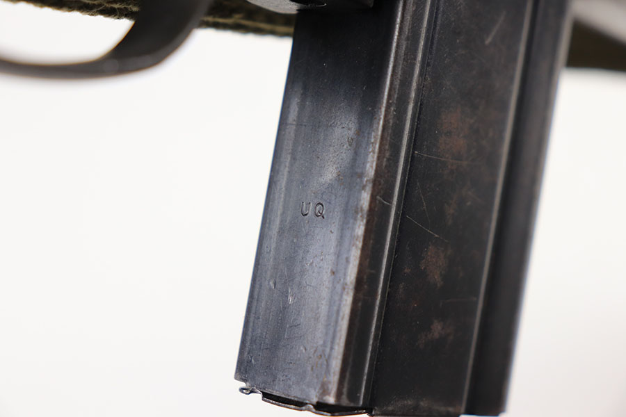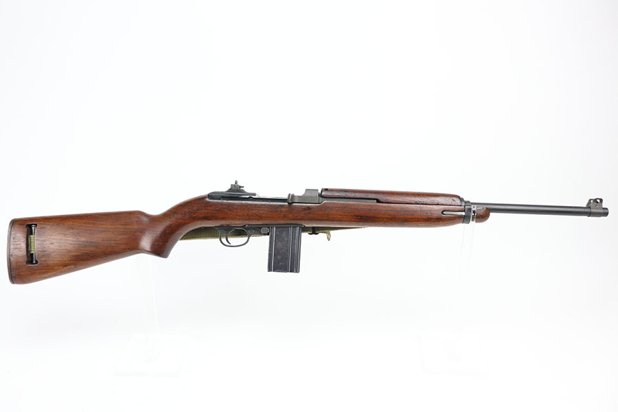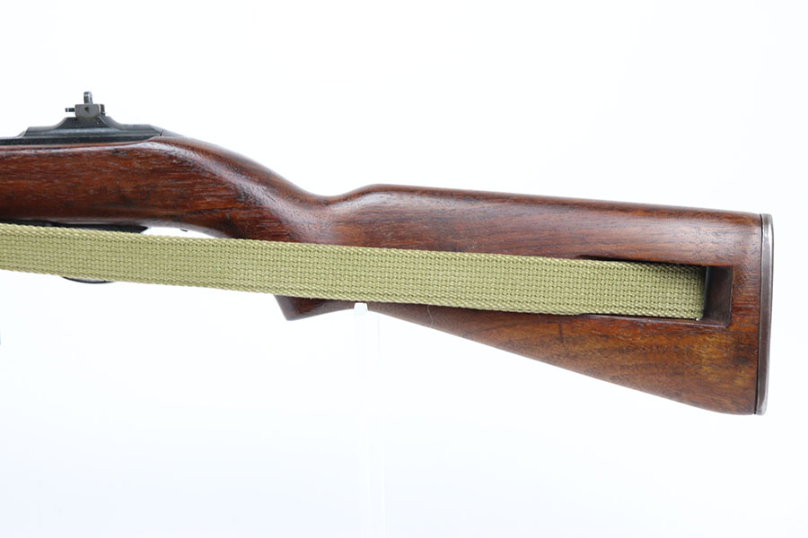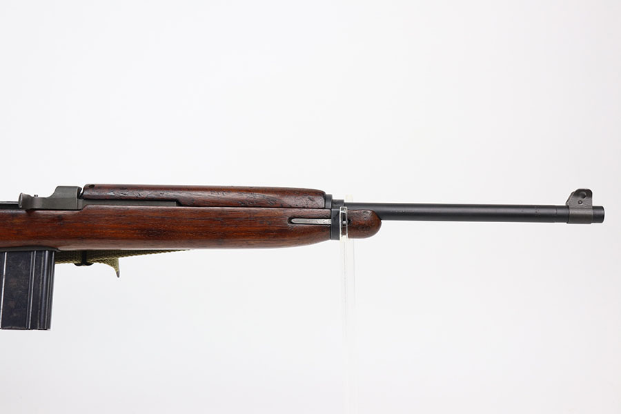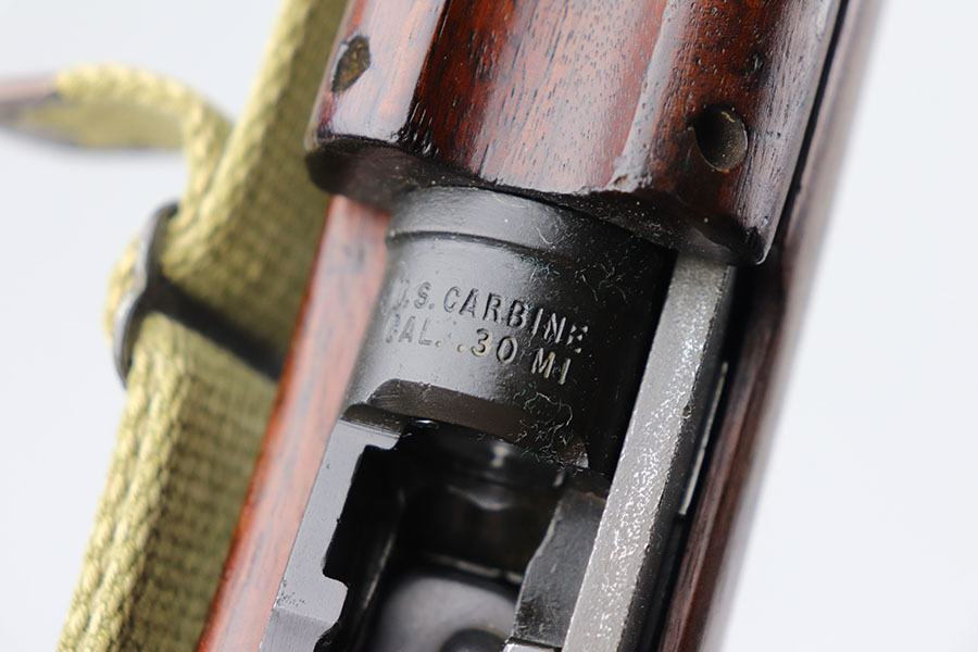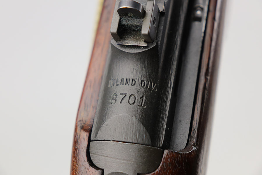 3/3/21 – This is a rare and very early Inland M1 Carbine, one of the first 9,000 ever produced! Likely made around June or July of 1942, it has the early Inland stock with flaming bomb, crossed cannon cartouche, Overton and ‘LA’ markings in the sling well. Circle P proof on the bottom of the wrist. Early Inland handgaurd with another flaming bomb proof inside. Front sight is marked ‘N’, rear sight marked with an ‘S’. W-I marked checkered mag release, and checkered safety. PI marked slide. Early flat bolt with IO in circle. Inland trigger housing. Flaming bomb and H proof on hammer. Bore is shiny with strong rifling but has a small area of freckling inside. The rifle has excellent finish remaining but there is some pitting on the barrel and on the receiver, hidden by the stock.