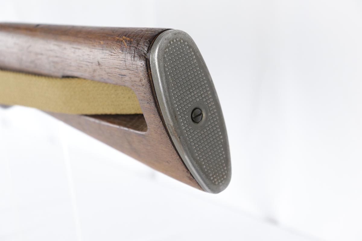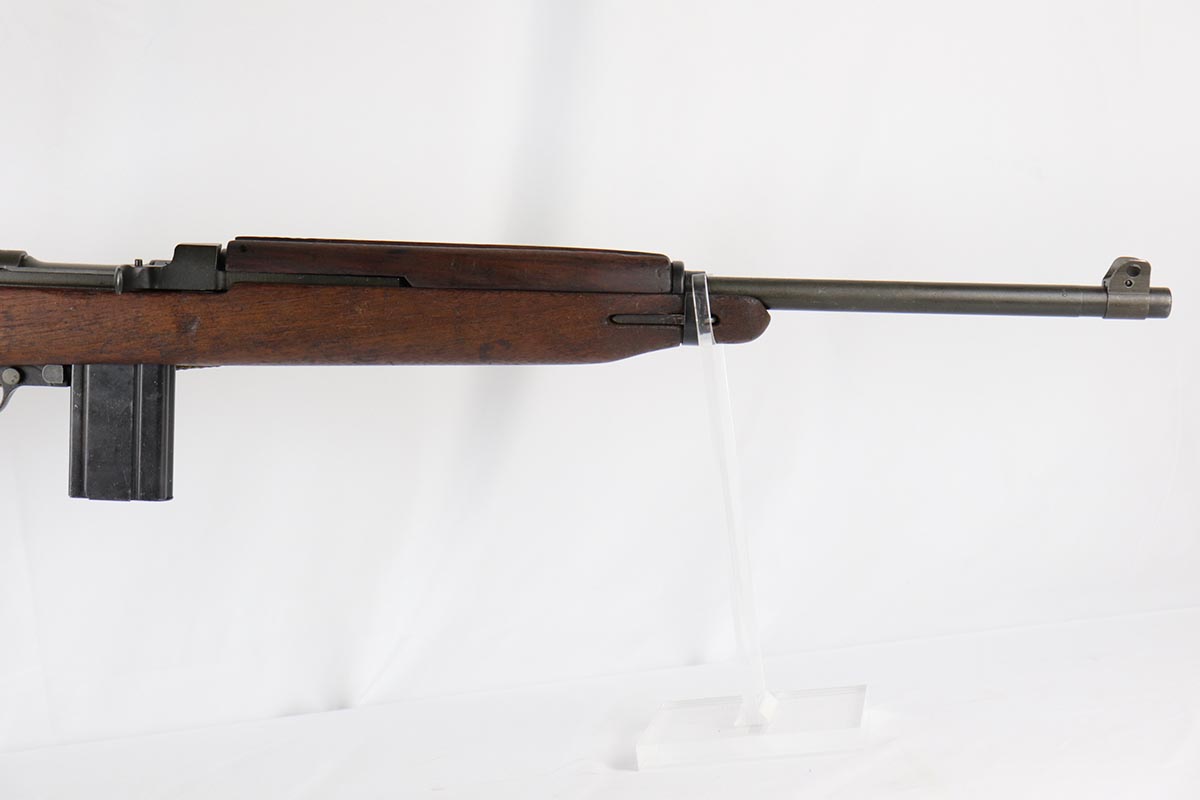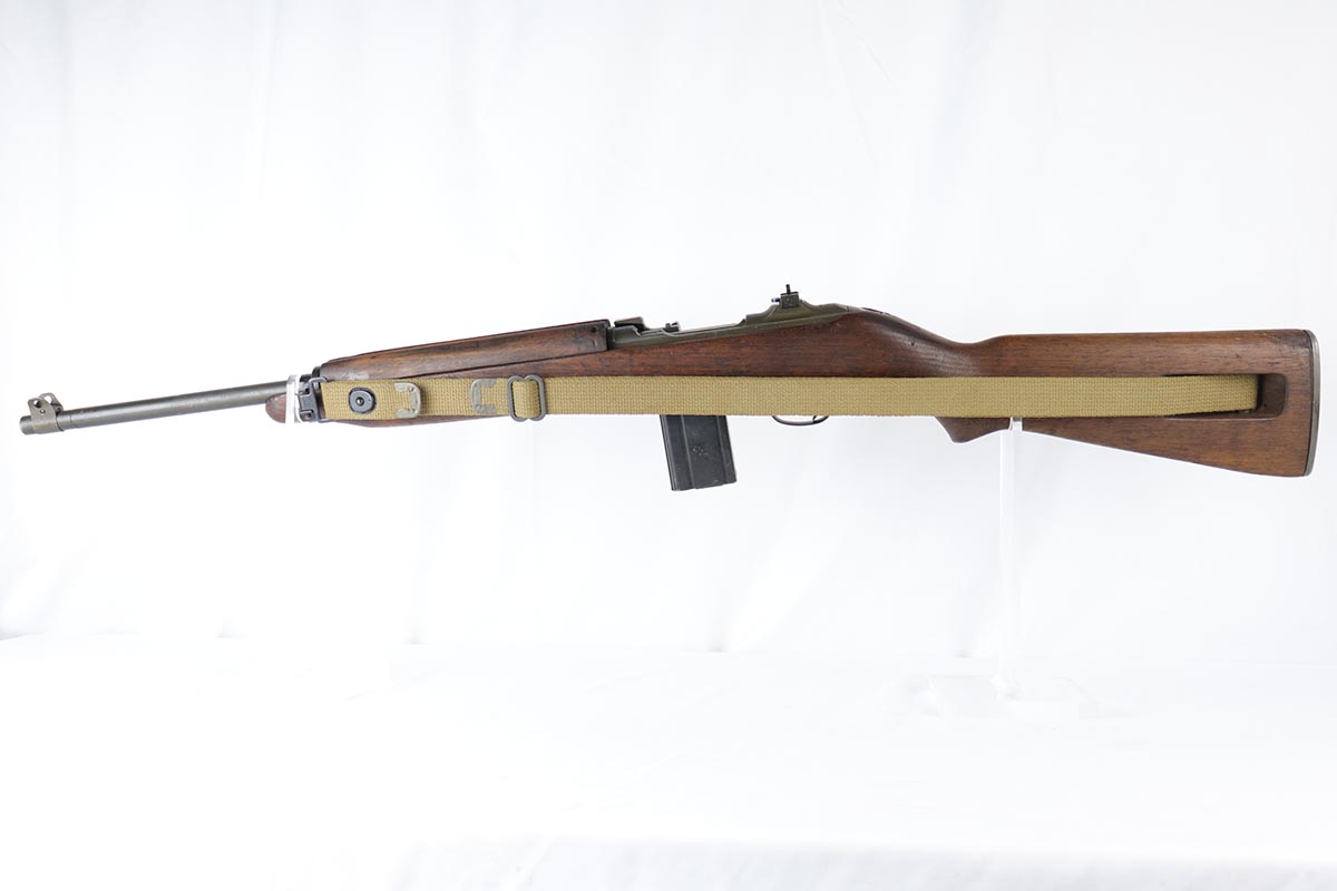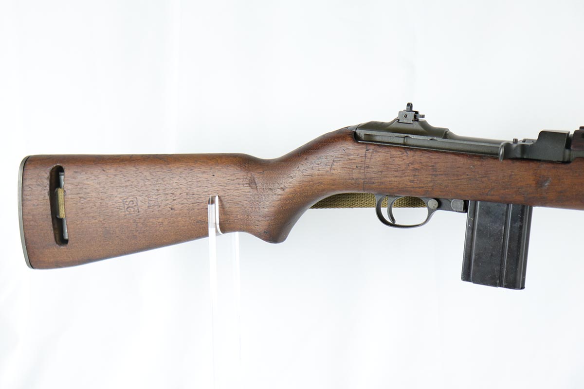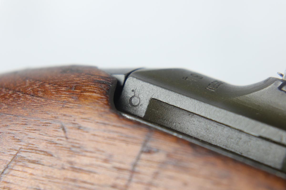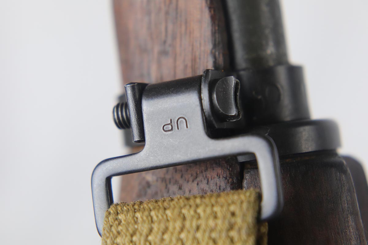 7/12/18 – The is an Irwin-Pedersen M1 Carbine – by far teh rarest maker from the World War II era. Most were put together with early parts from other contractors, and this is such a variant. It is a correct, type 1 S’G’ carbine with I-P receiver. Made in 1943, it has a B-IP marked rear site. Barrel is 1943 dated and Underwood marked. Safety is IP marked. The stock is S’G’ marked with high wood cut, and is RSG marked in the sling cut. It appears to have been lightly sanded at some point. The buttplate is S’G’ marked. Magazine is A1 marked and front sling swivel is marked UP. Comes with original sling, in original configuration. Excellent bore.