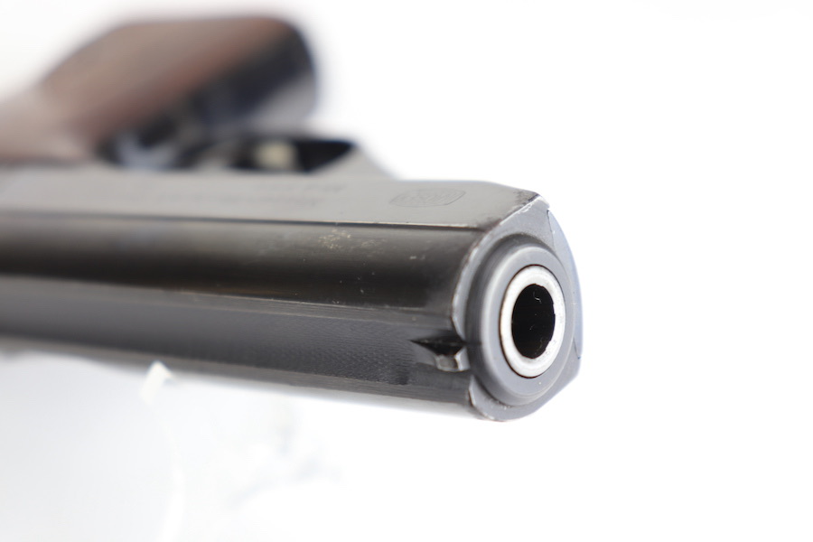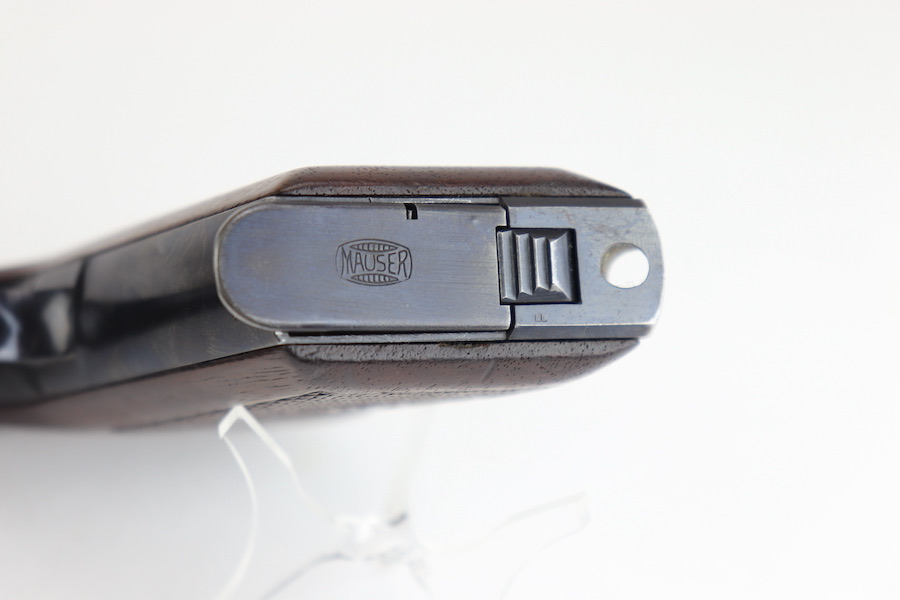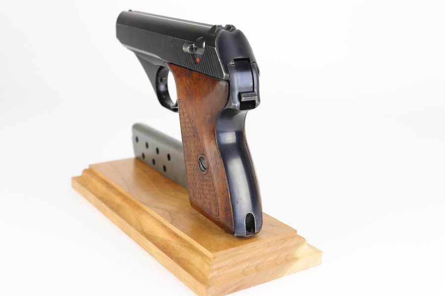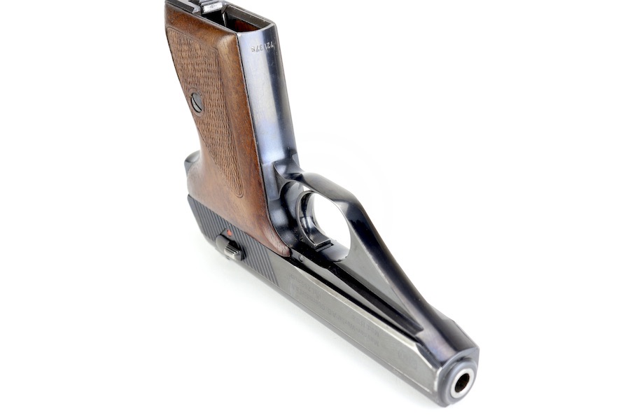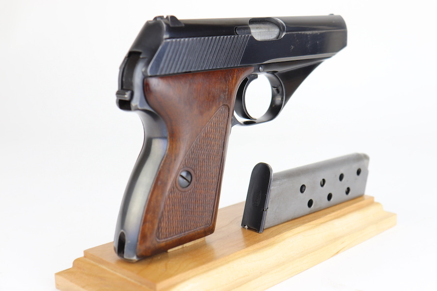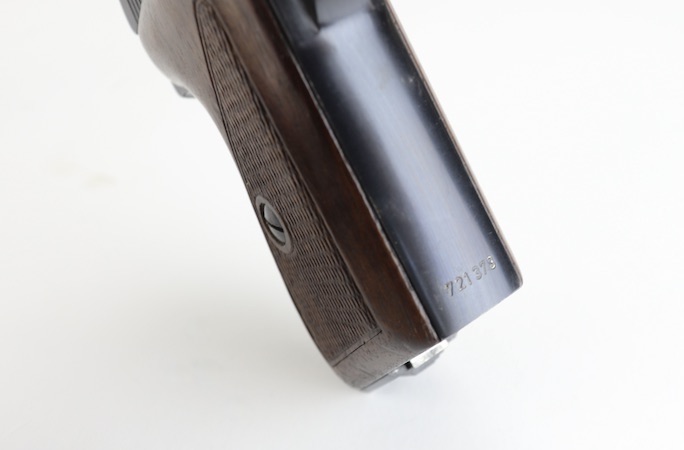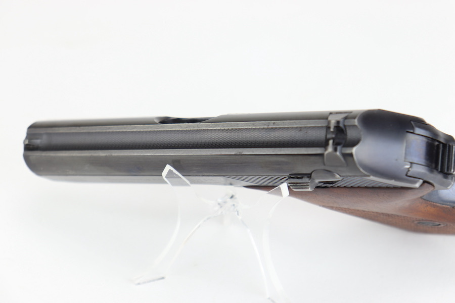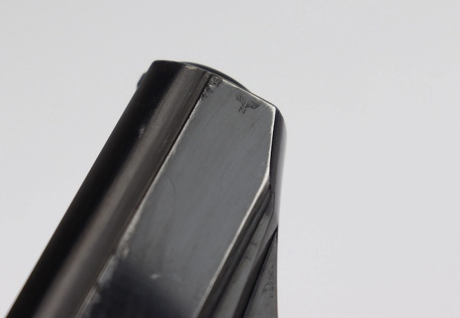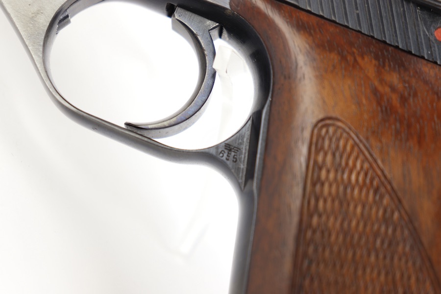 1/5/24 – Located at our Ohio office. This is a rare, early Nazi variation of the Mauser HSc. One of only 5,000 produced with Eagle/655 acceptance proof and no test eagle. It’s in great, all original condition with 95-98% of the high-polish blue remaining. Just a hint of freckling on the edges of the of the slide, and a little patina/thinning on the high edges. Mint bore. Excellent grips, no chips or cracks. Mauser banner magazine.