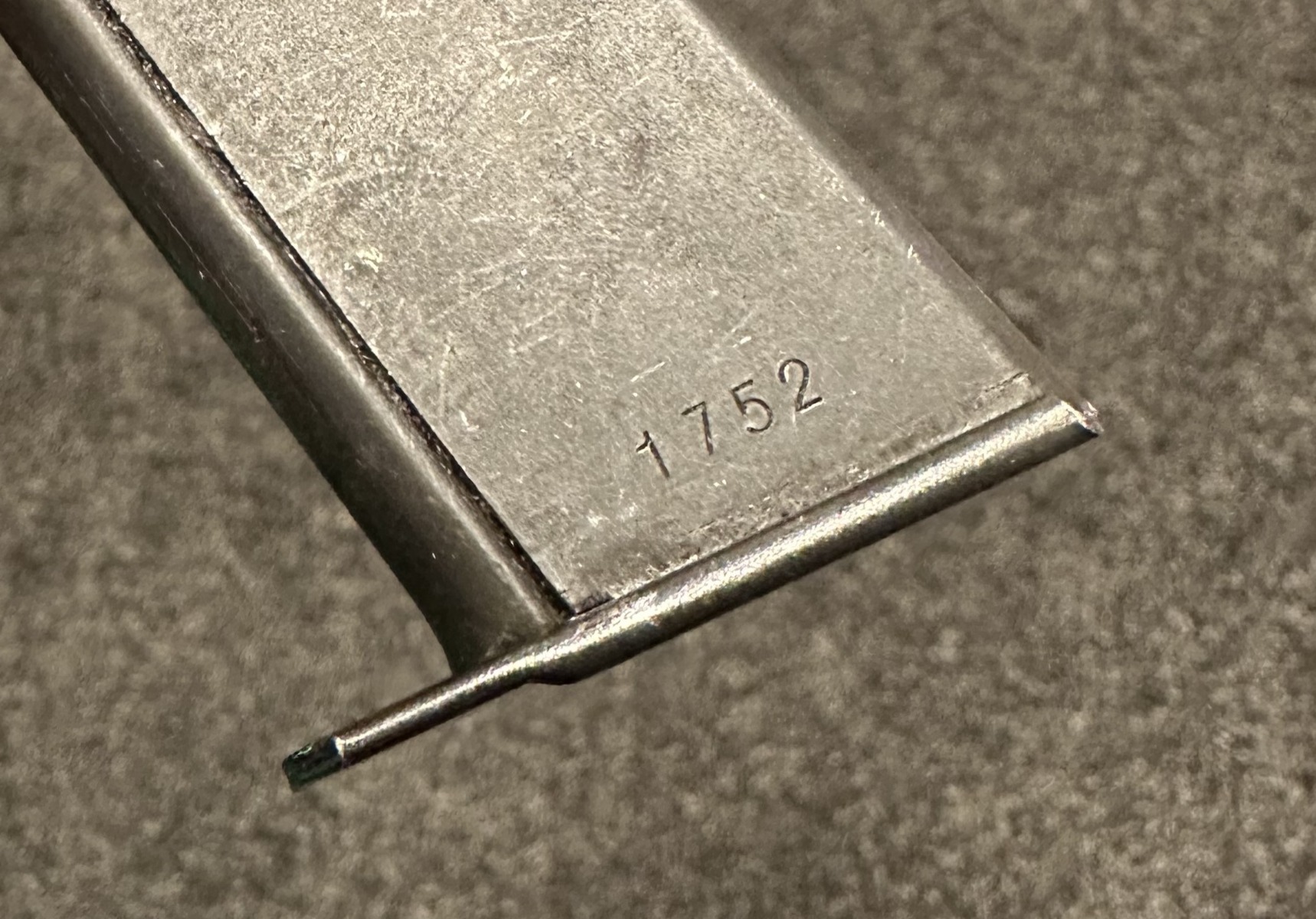 1/5/24 – This is a rare magazine for an early Swedish-contract Walther P.38 pistol, about 1939. Serial number is 1752 with no military proofs. Excellent condition. Fully functional.