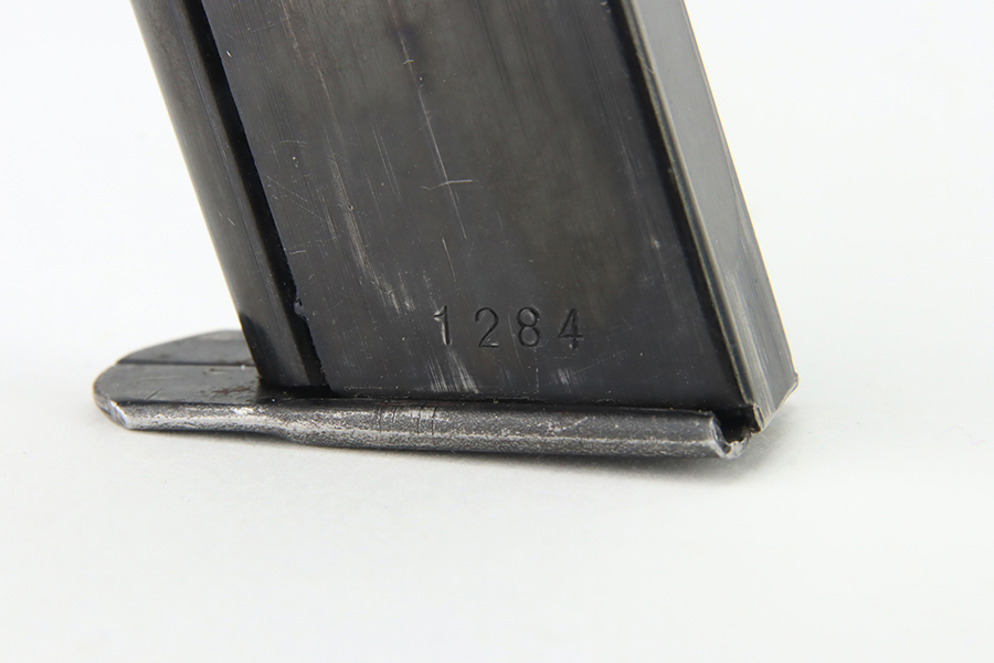 1/12/24 – This is a rare magazine for an early Swedish-contract Walther P.38 pistol, about 1939. Serial number is 1284 with no military proofs. Excellent condition. Fully functional.
