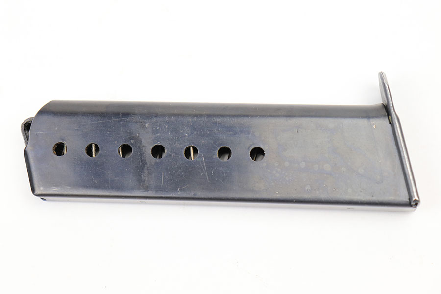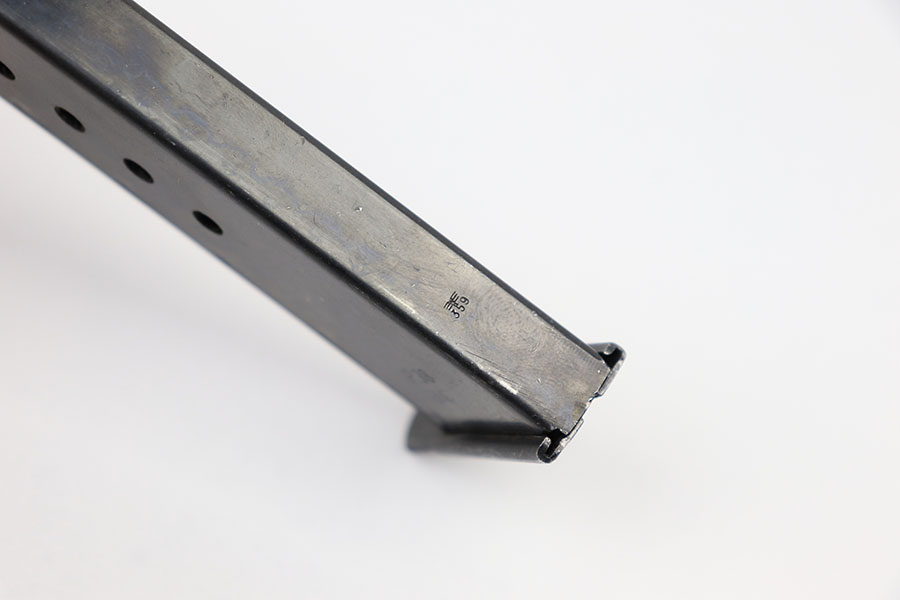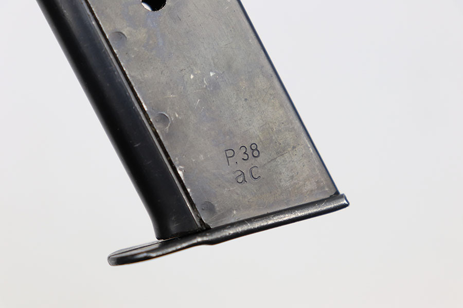 2/11/21 – This is a rare, early Walther armorer replacement magazine. The magazine is stamped P.38 with “AC” underneath. Additionally, there are two eagle/359 stamps on the spine, as shown. Excellent condition with no rust or pitting. Fully functional .