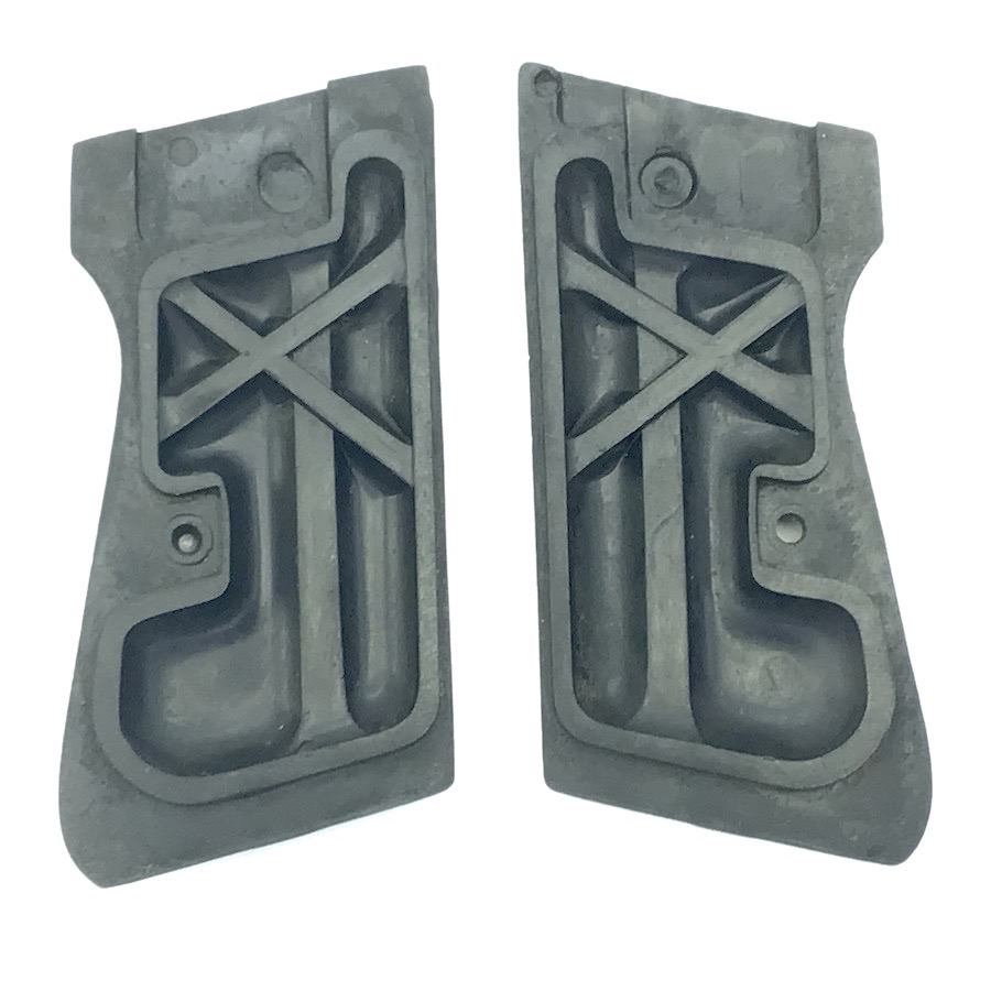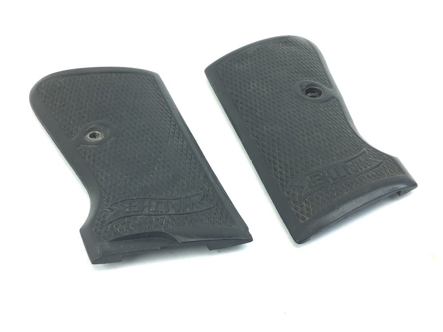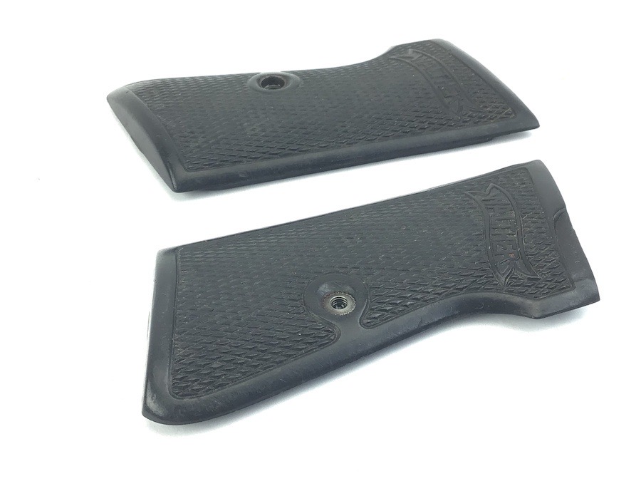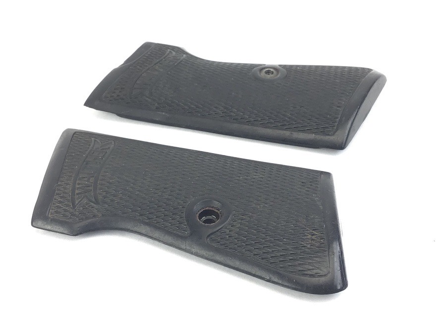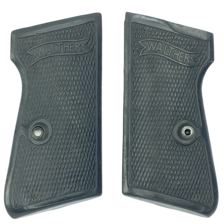 6/14/23 – Original and excellent condition. These early Walther PP grips were issued with the first 1000 to 2000 PP’s. These have the molded “X” on the reverse. No cracks, chips or warping. Hard to upgrade these rare grips.