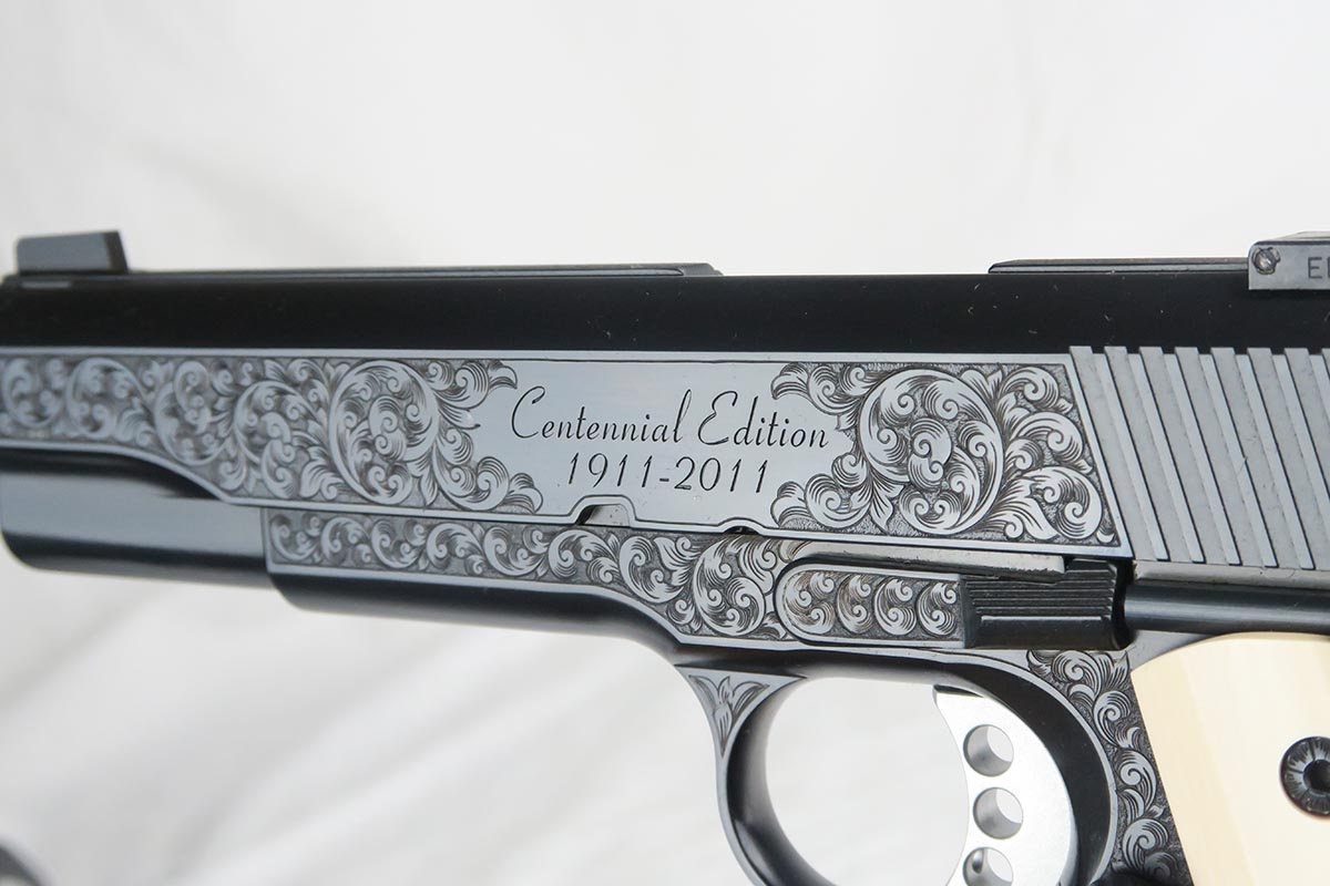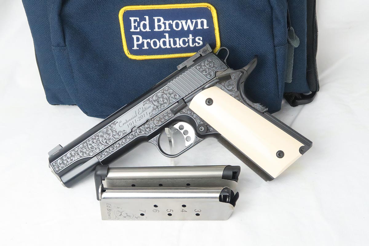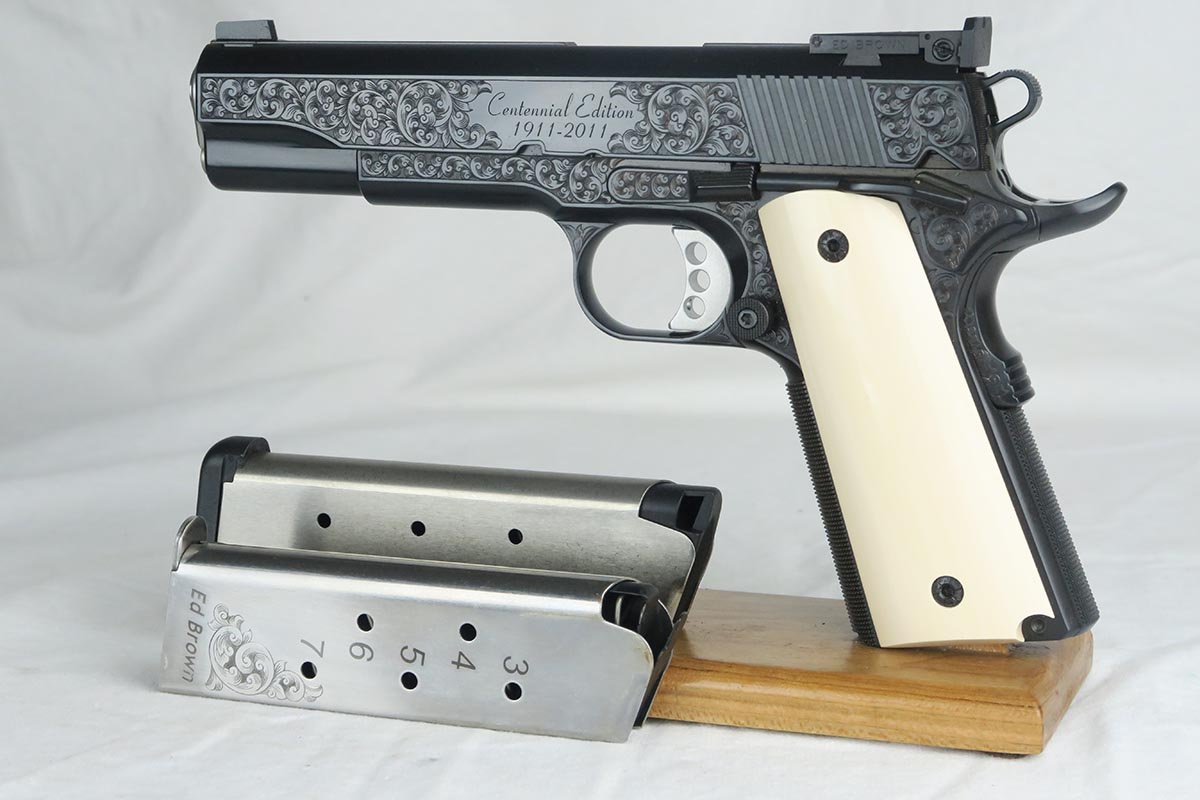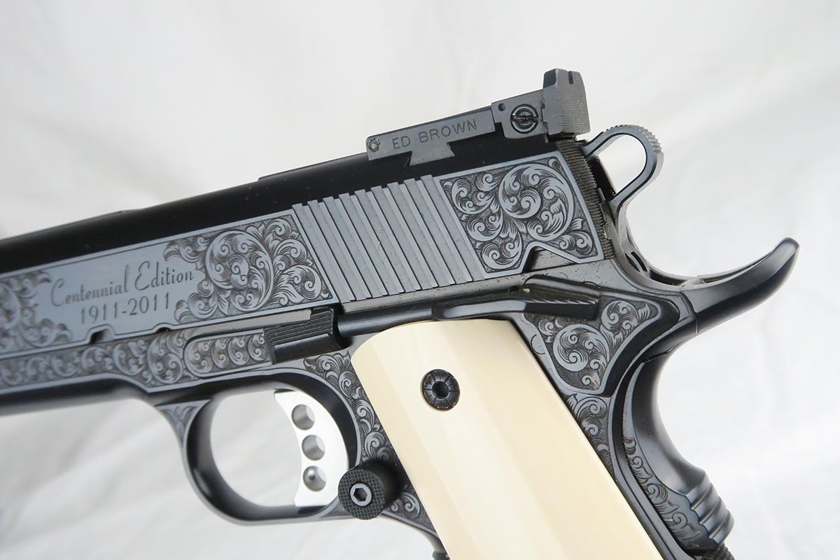 •  Centennial edition, 1911-2011 special laser engraving on left hand side of slide. “Custom by Ed Brown” remains on right hand side of slide.