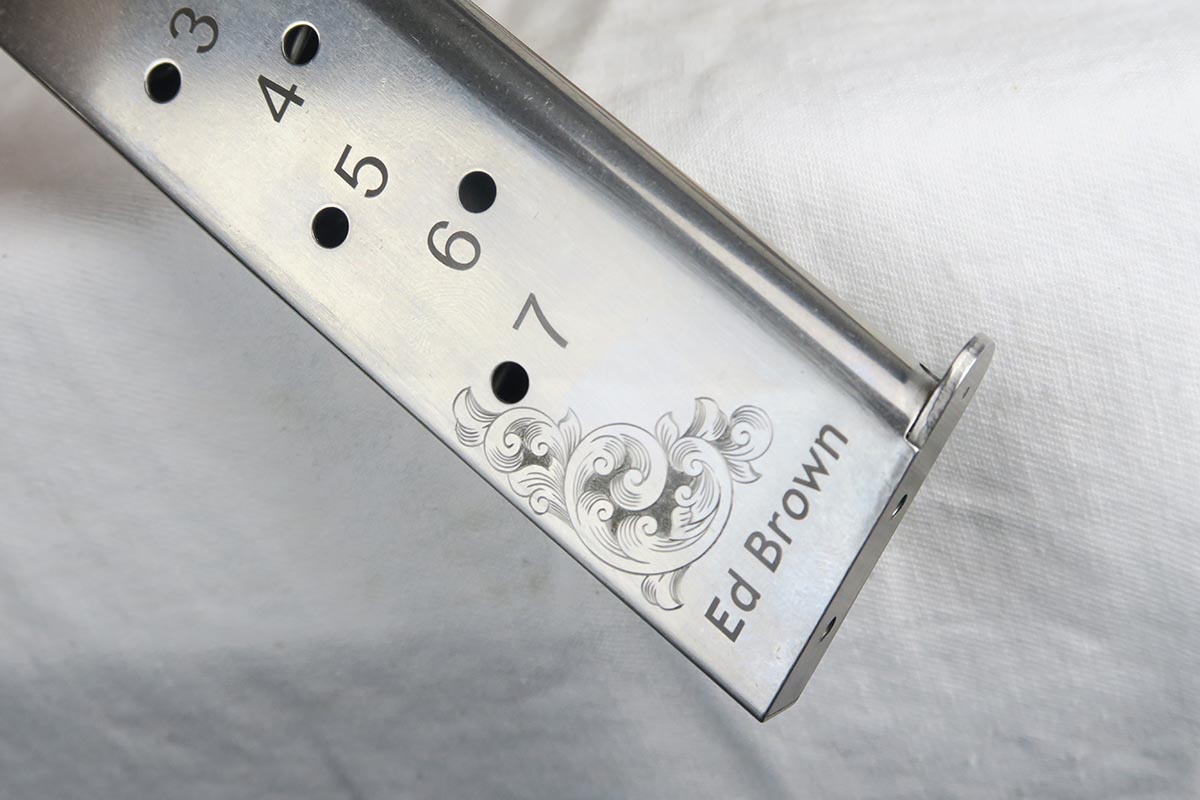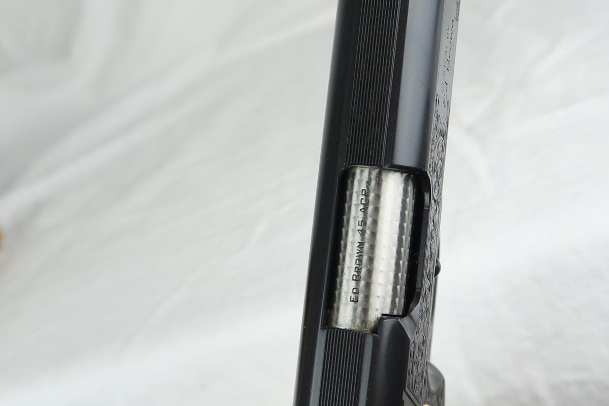 Also comes with spare magazine (one is engraved) and some paperwork, as well as an Ed Brown carry case.
