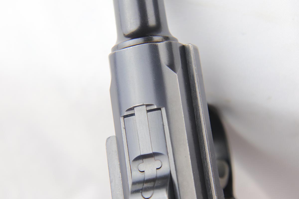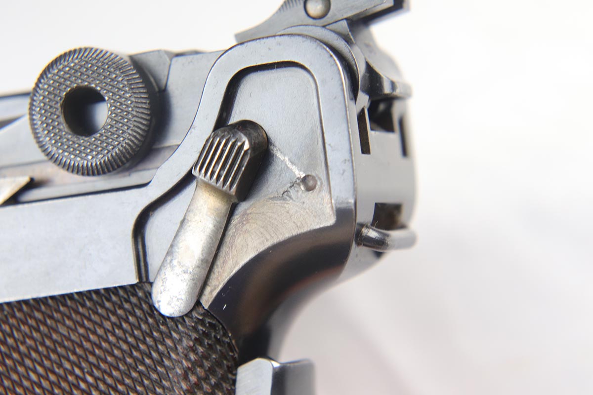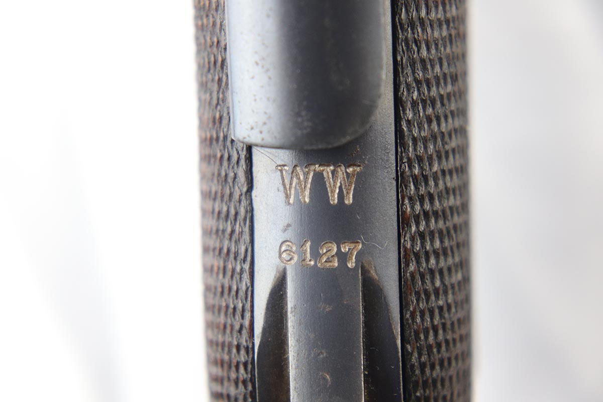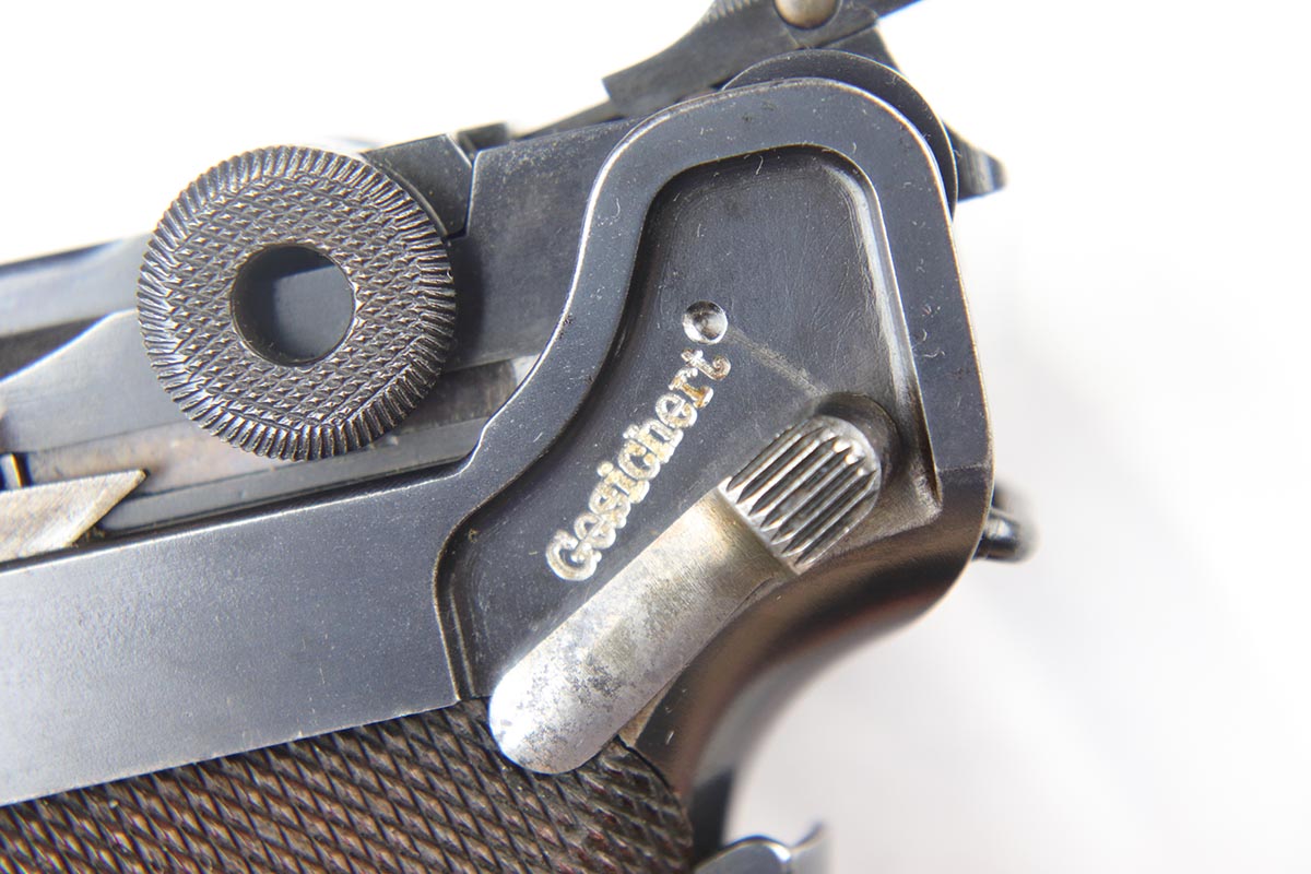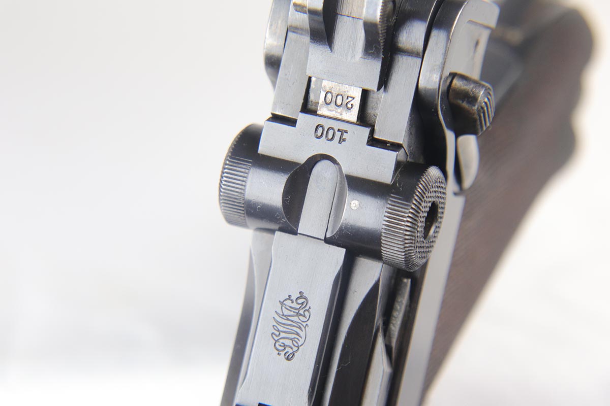 5/1/18 – This is an excellent example of a rare 1906 DWM Navy Luger. It has a nice high polish finish covering about 96% of the gun, with the straps being particularly nice. There is some tiny pin pricking around the Naval Property mark and on the lug stock. Fairly common and somewhat expected in an all original Navy gun due to a salt mist environment. The numbers on this gun are ALL matching with the exception of the correct Navy Magazine. The safety position is altered (2nd variation) so that the “Gesichert” is in the upper position. It is also WW 6127 property marked signifying that it was issued to the Wilhelmshaven Navy Base in the pre-WW1 to WW1 time period. The finish and all parts are original and authentic. It has some oxidation on the bluing and straw parts but better than most Navy lugers offered as it is over 100 years old!. Bore has strong rifling and shows minor use.