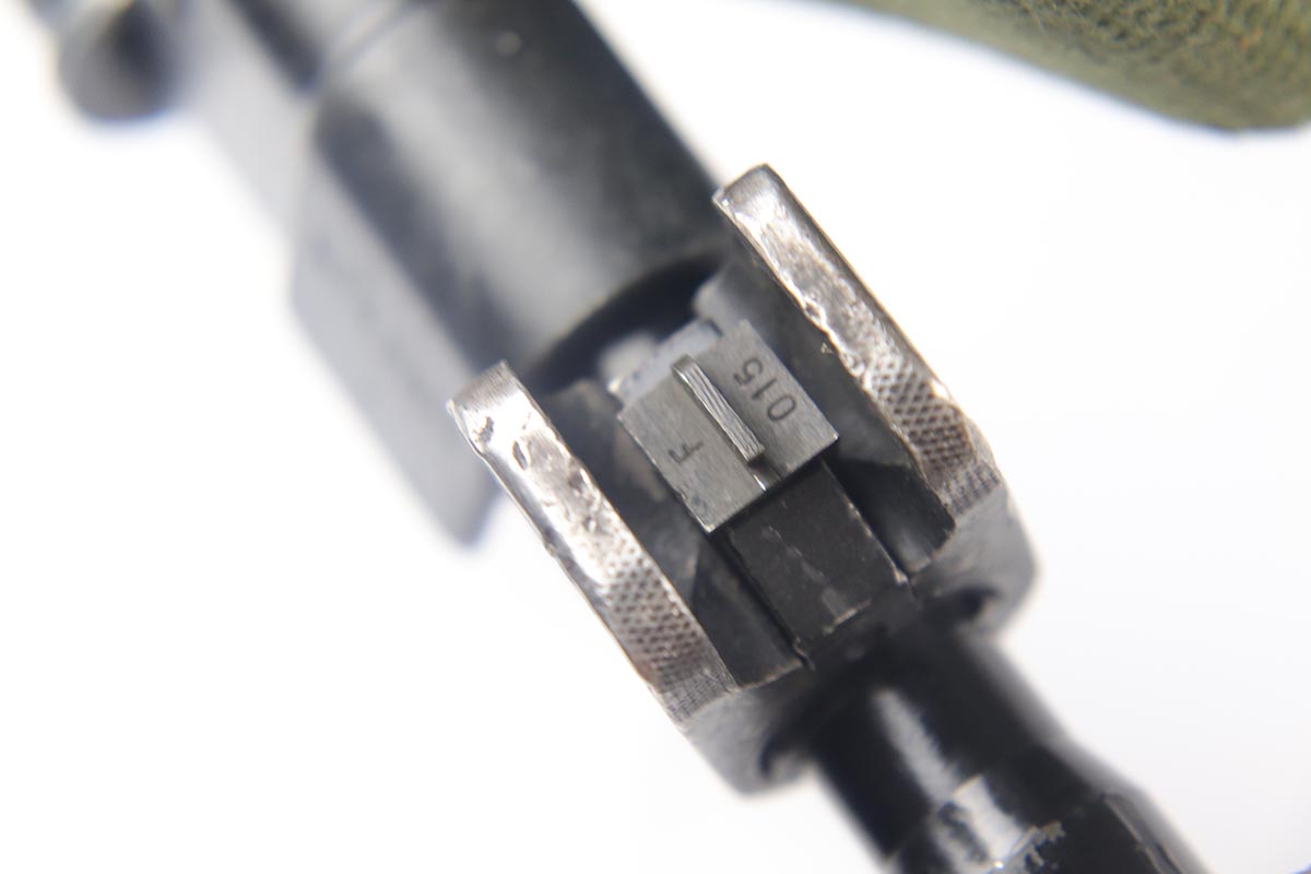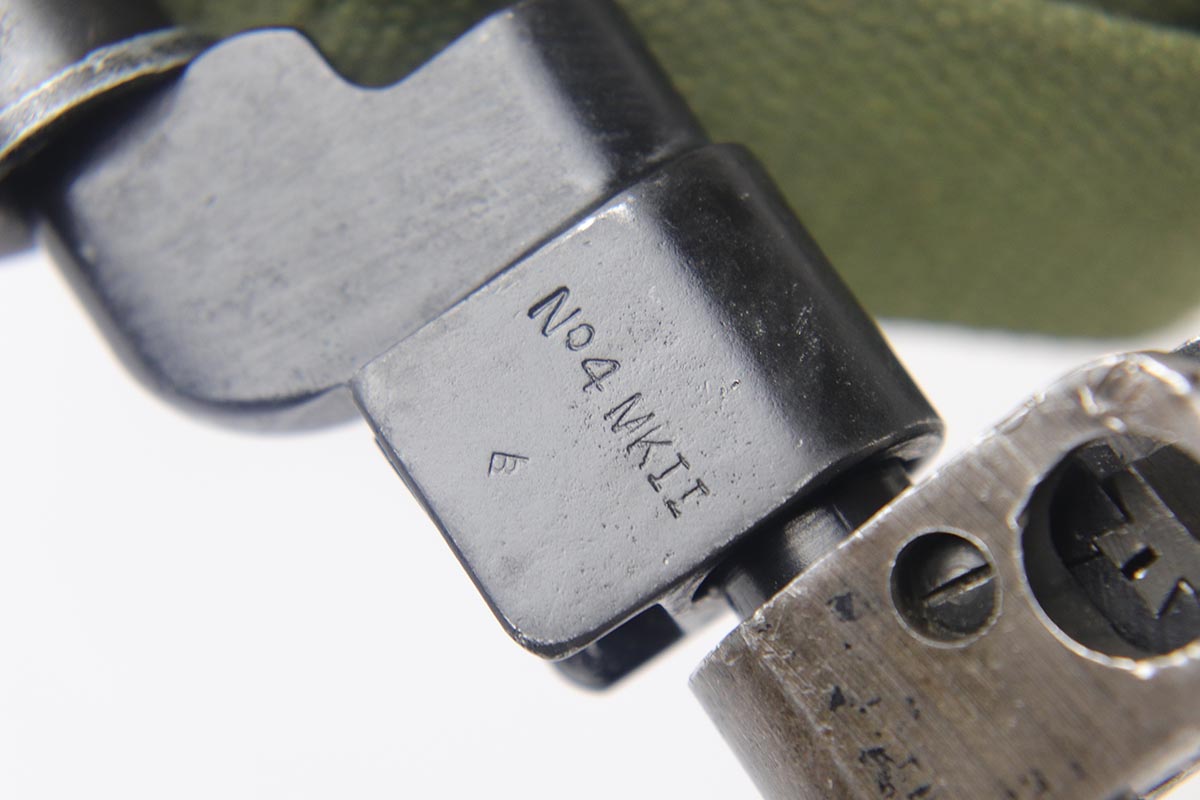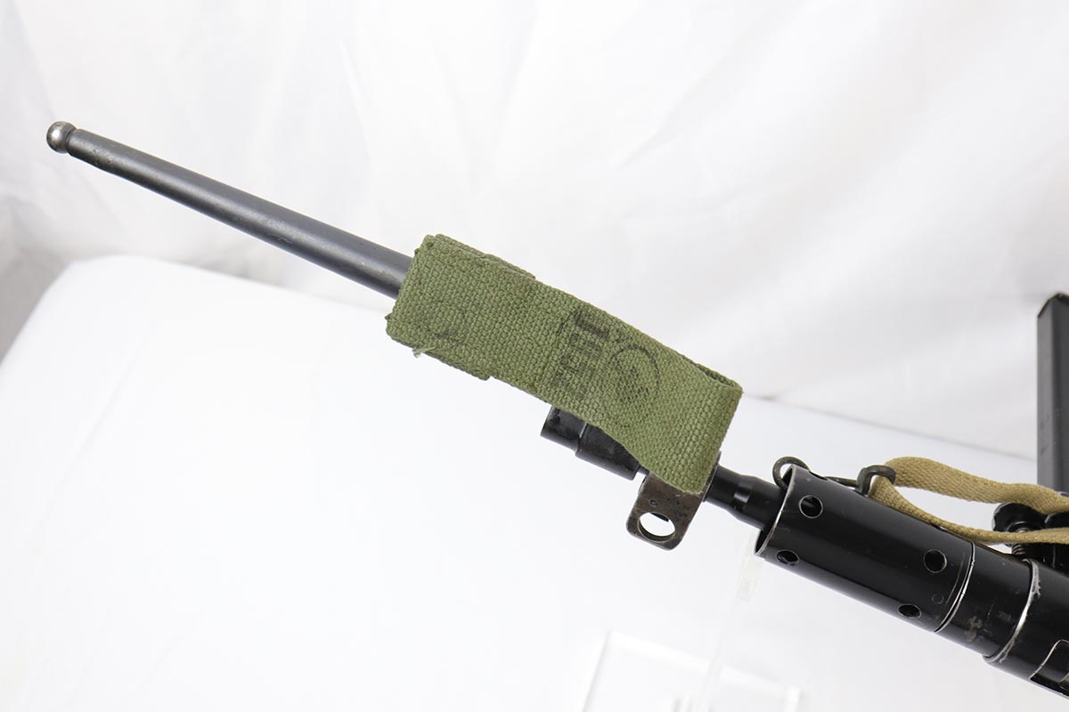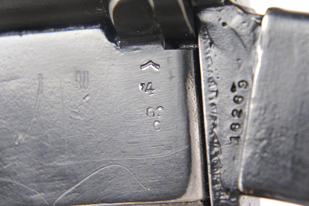 11/15/18 – This is a rare and beautiful, fully automatic British Sten MK V that was manufactured in 1944.  The Sten was a favorite of the British Paratroopers and was used on D-Day and at Operation Market Garden.  This is a broad arrow proofed Sten with matching bolt and receiver, and includes three total magazines (32 rd) and an original oiler.  The left side of the receiver has the broad arrow mark over a ‘4 G2 C.  Detachable wooden buttstock with brass buttplate.  The Mk V was an improved and more elaborate version of the  Sten Mk 2, and changes included the wooden pistol grip, wooden stock and bayonet mount.  They also have a No4 Lee-Enfield foresight and this rifle includes No4 MkII marked bayonet.  This is the Mk V variant with swivel stock but not the rear sight mirror.  Excellent bore and mechanics, as the rifle has already been test-fired with no issues.  Fully transferrable.