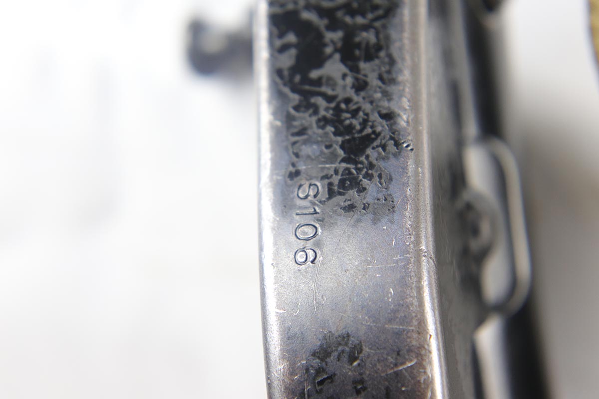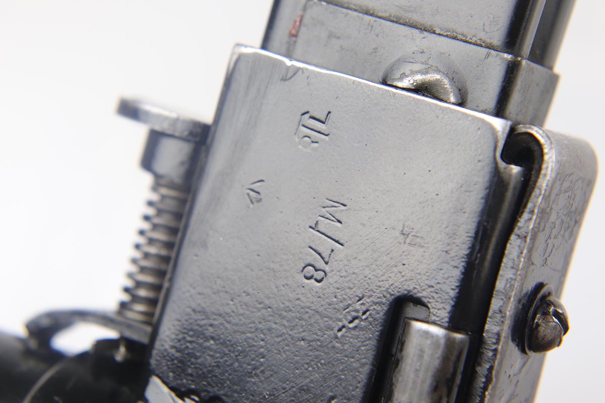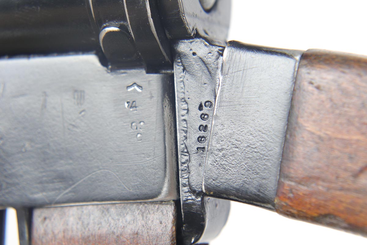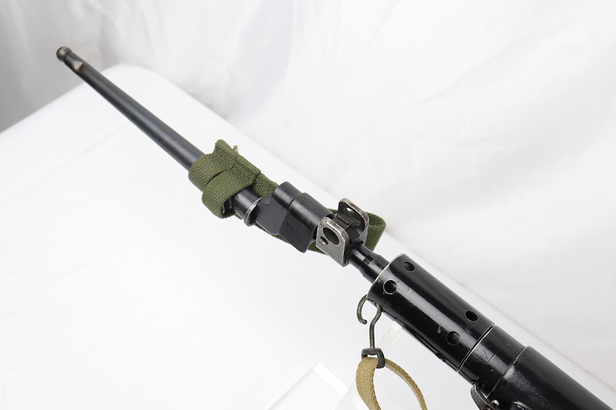 11/15/18 – This is a rare and beautiful, fully automatic British Sten MK V that was manufactured in 1944.  The Sten was a favorite of the British Paratroopers and was used on D-Day and at Operation Market Garden.  This is a broad arrow proofed Sten with matching bolt and receiver, and includes three total magazines (32 rd) and an original oiler.  The left side of the receiver has the broad arrow mark over a ‘4 G2 C.  Detachable wooden buttstock with brass buttplate.  The Mk V was an improved and more elaborate version of the  Sten Mk 2, and changes included the wooden pistol grip, wooden stock and bayonet mount.  They also have a No4 Lee-Enfield foresight and this rifle includes No4 MkII marked bayonet.  This is the Mk V variant with swivel stock but not the rear sight mirror.  Excellent bore and mechanics, as the rifle has already been test-fired with no issues.  Fully transferrable.