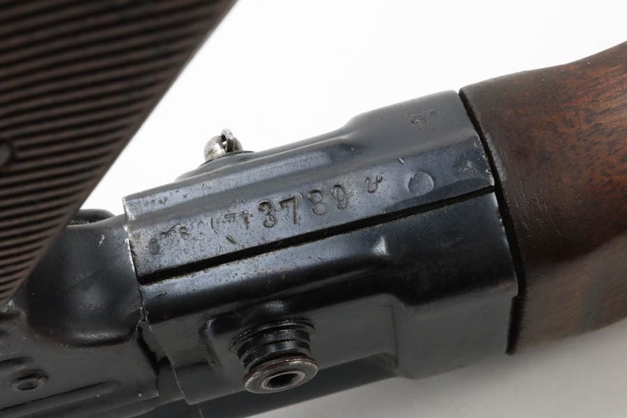 11/14/24 – This is a fantastic, original German MP44 parts-kit with matching numbers and original finish. It’s about as nice as you’ll ever encounter, with all matching numbers and all parts included (bolt, slide, springs remain present). The original blue rates at 90-95% with minor edge wear and a general, mild patina on the receiver. Fantastic bore. Excellent wood furniture.