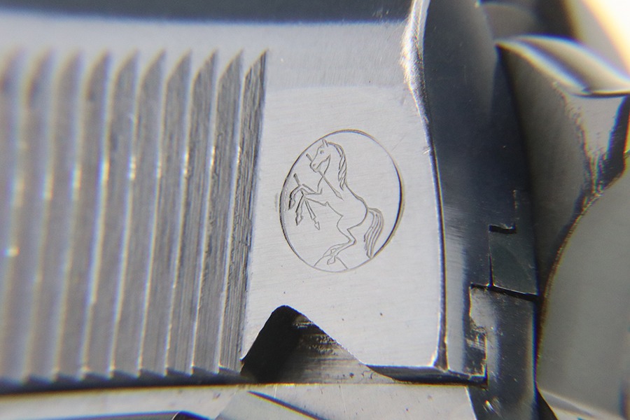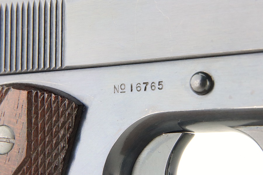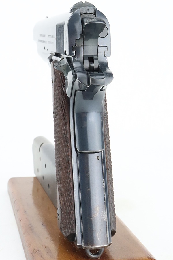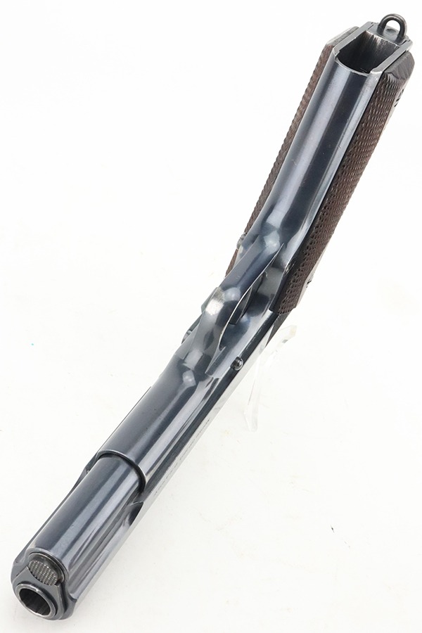 11/7/24 – This listing is for the finest 1912 manufactured Colt M1911 we have encountered/offered for sale. All correct and original, this example shipped in December of 1912. It remains in nearly un-issued condition, with just a tiny hint of front edge wear on the left side of the slide, and slightly more on the mainspring housing. Minor ‘idiot scratch’ on left side frame. Proper vertical ‘H’ on back of slide and hood of barrel. Rare, correct “keyhole” magazine in good condition. Bore has shiny, strong rifling but there is pinpricking through the grooves. A time capsule example, and about as nice as you’ll ever see from 1912!