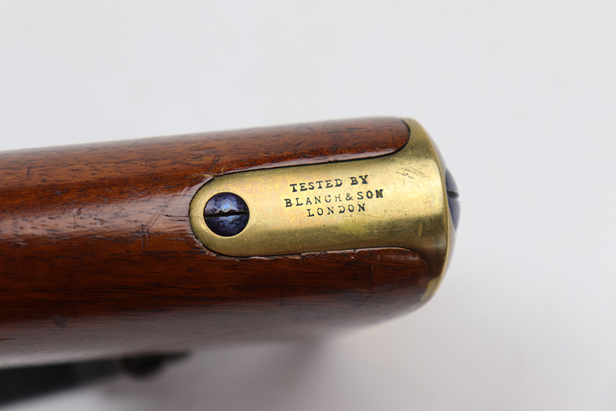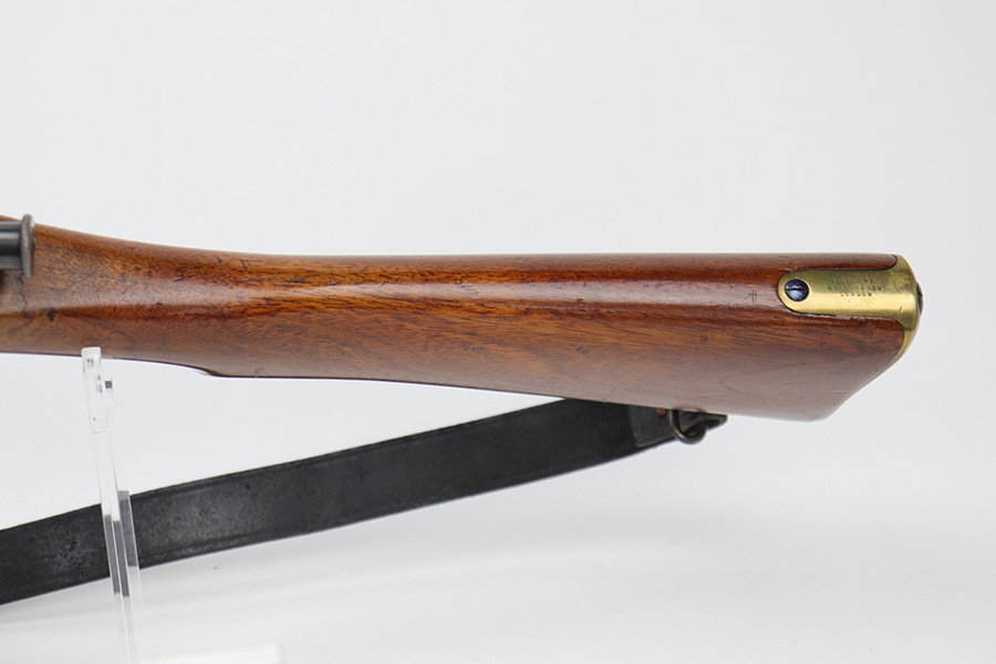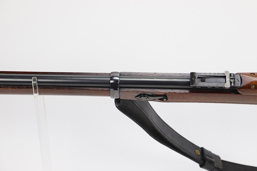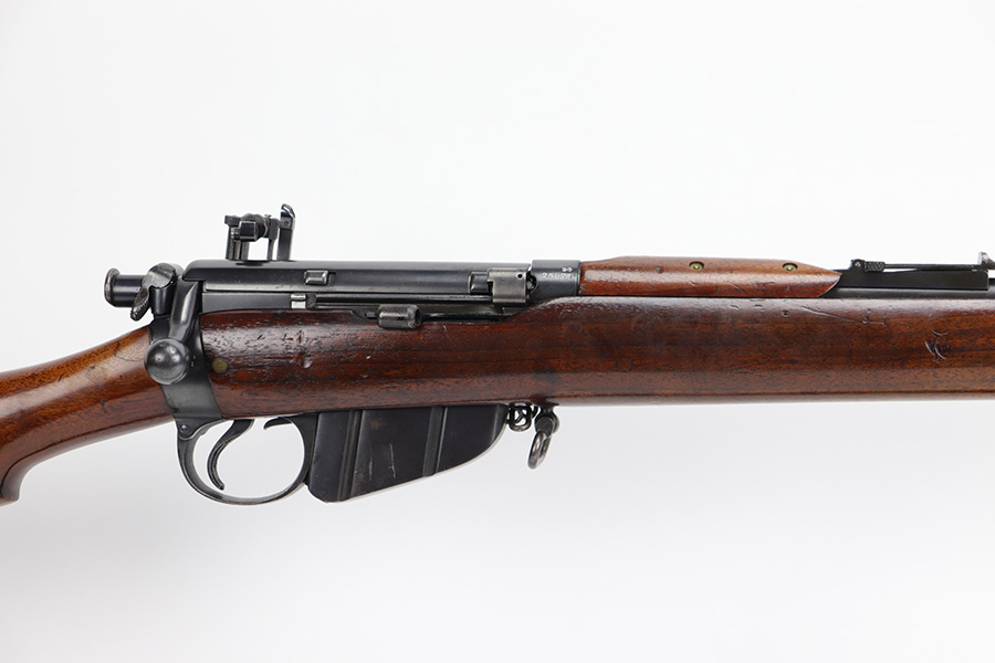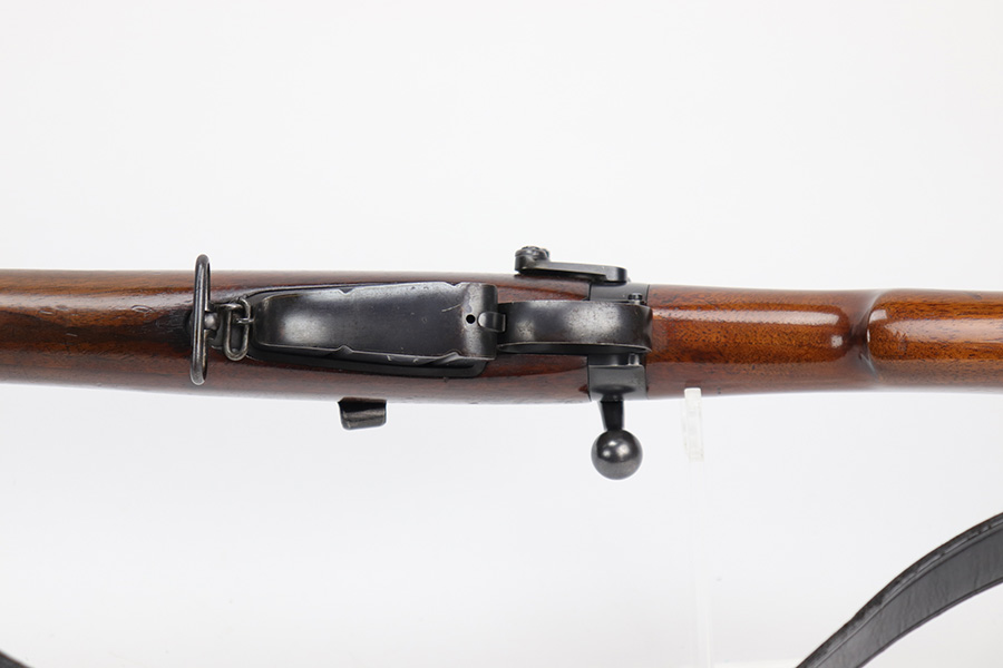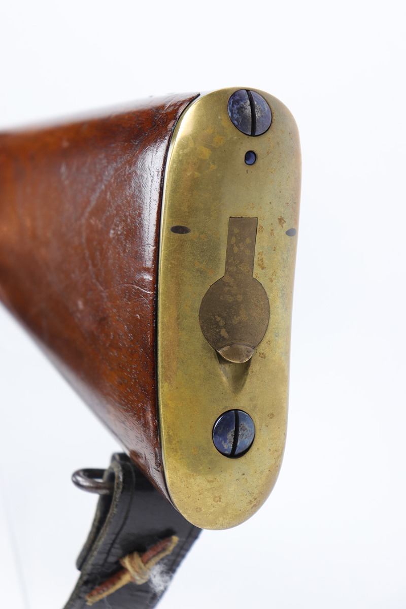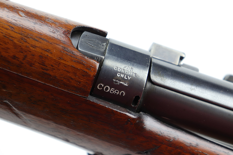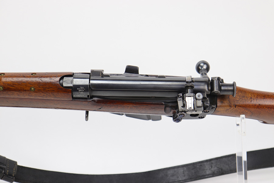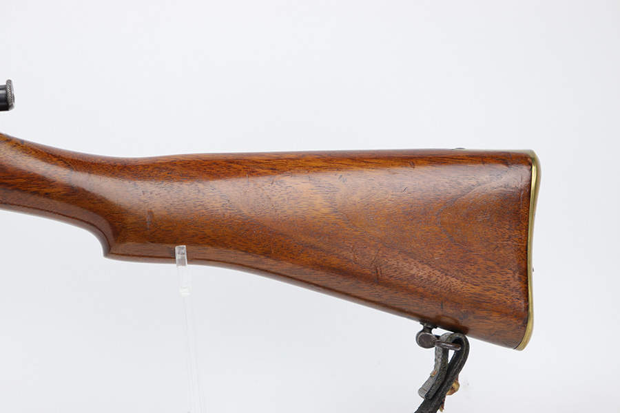 6/21/23 – This is an absolutely fantastic example of a rare BSA Long-Lee Enfield rifle from the early 1900s. The bluing is gorgeous with only minor wear and patina on the mag and trigger guard. Minty bore. Terrific wood furniture aside from a surface crack on the upper wrist. Still has the original sighting wheel, with BSA diopter sight intact. Brass buttplate is marked ‘TESTED BY BLANCH & SON LONDON’ along the top and has a trapdoor. Receiver is marked ‘FOR CORDITE ONLY’. Barrel marked ‘MORRIS TUBE CO. LONDON’. Bolt and receiver serial numbers do not match. Comes with after-market sling.
