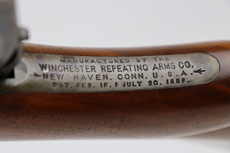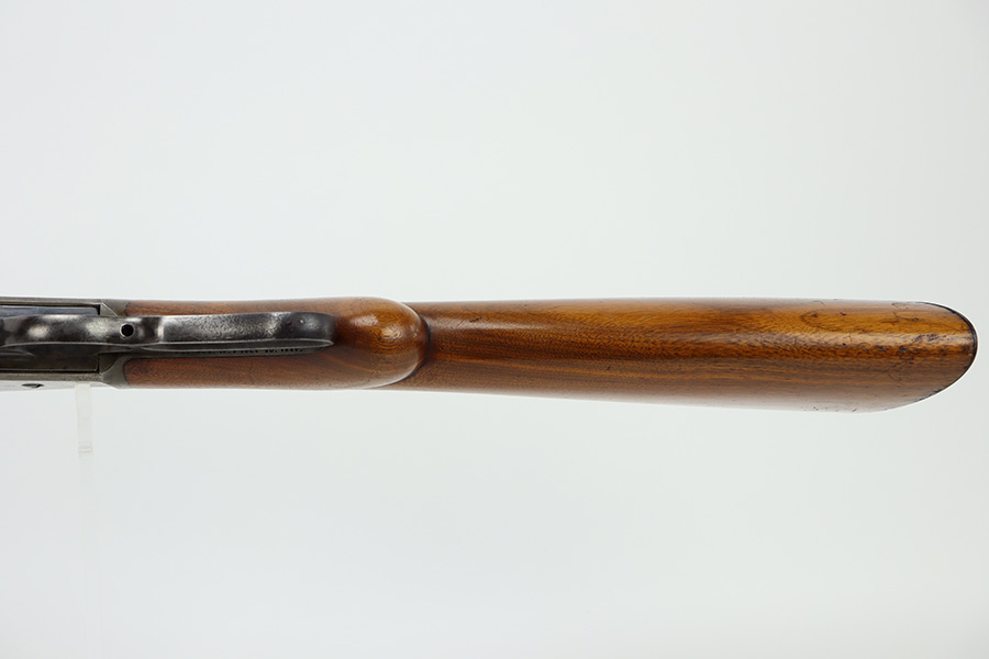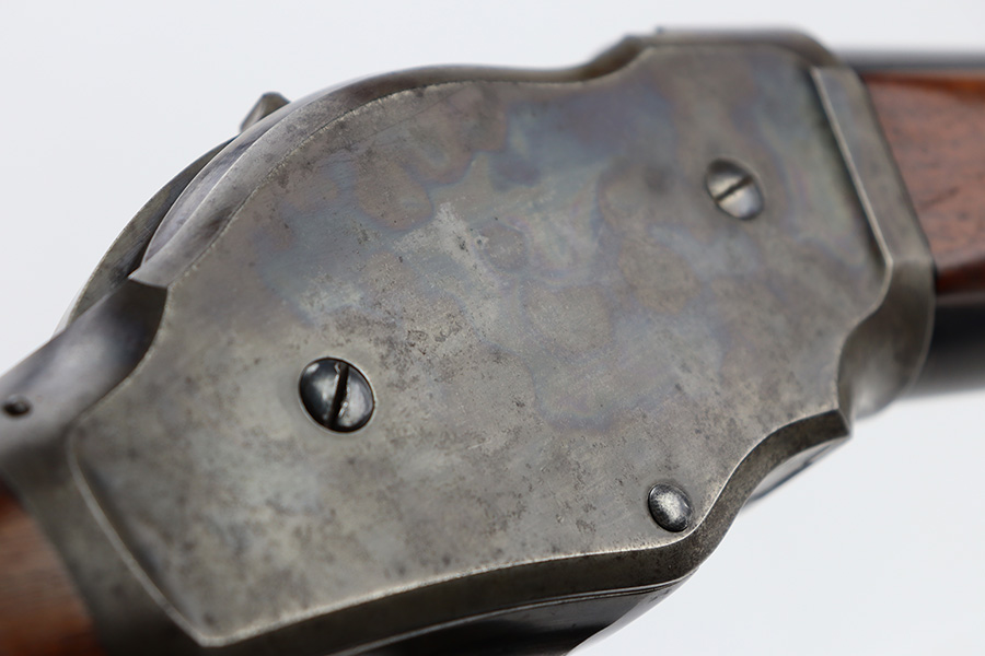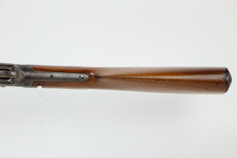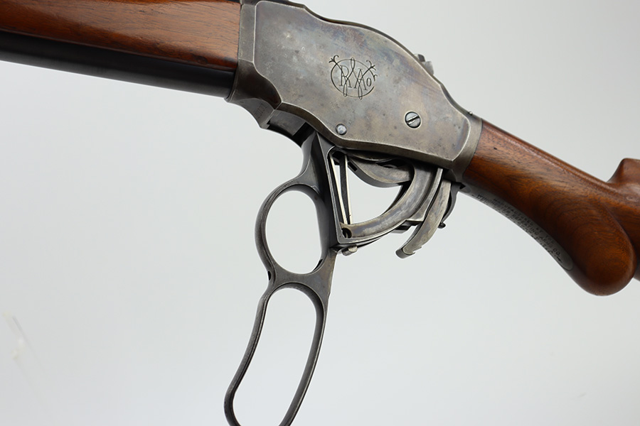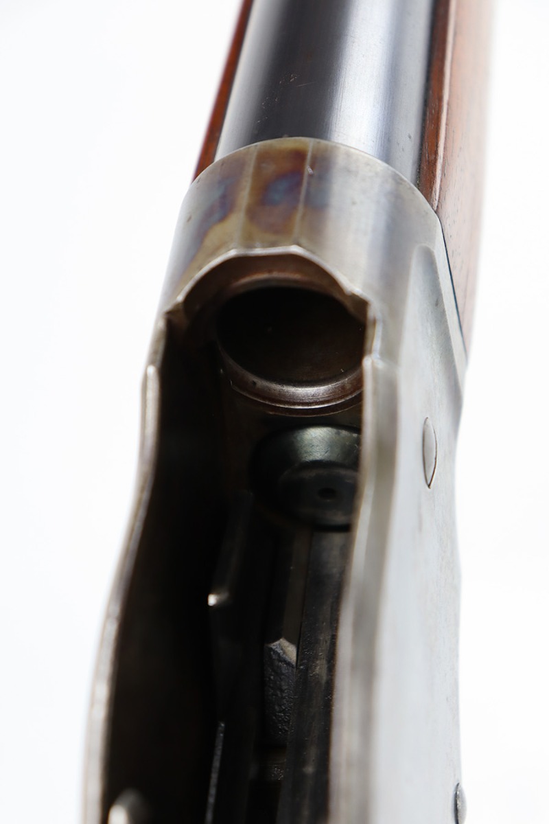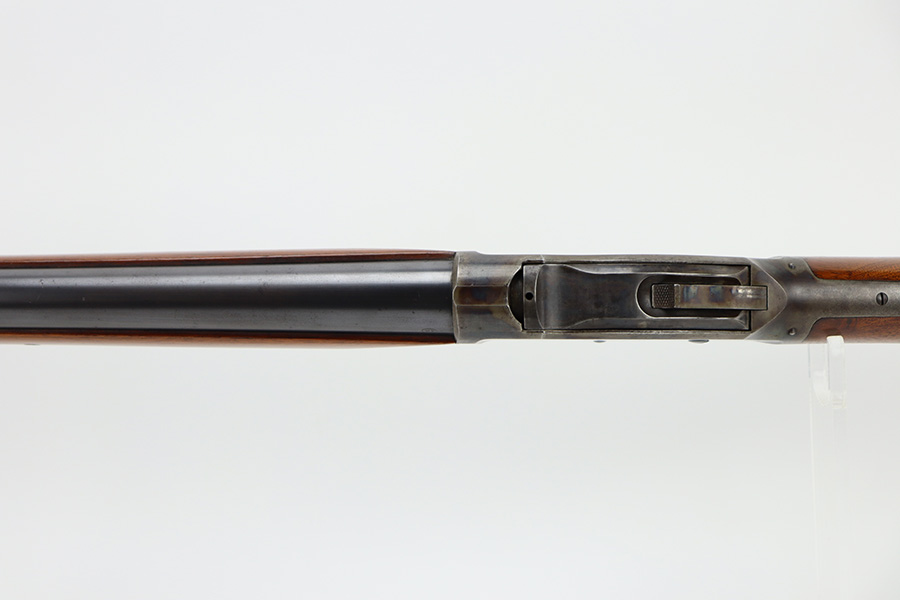 12/5/23 – This is a fantastic example of a rare and early Winchester Model 1887 lever-action shotgun from 1888, the 2nd year of production. The Model 1887 was the first lever-action repeating shotgun produced by Winchester. Only 64,855 of these were made from 1887-1901, and this is a particularly high condition example with deluxe case-hardened receiver. Most prior shotguns were single or double barrel break actions. The Model 1887 held six shots and could be fired rapidly. The Model 1887 built upon the solid reputation of Winchester’s lever action rifles and carbines that were already in widespread use throughout the country. Many Model 1887s replaced double barrel coach guns used by “shotgun messengers” employed by express companies and lawmen throughout the country. The left side of the receiver has the “WRACo” monogram. The lower tang is stamped with the four-line address/patent dates marking. The receiver has beautiful case-hardening that even extends to the internals of the action. Excellent bluing overall with some finish loss and freckling on the mag tube. The receiver also shows some minor pinpricking on the right side. The bore is somewhat shiny but there are a few patches of pitting. Excellent wood furniture with no notable defects. Cody letter states the serial was applied in 1888 but shipped in 1890.