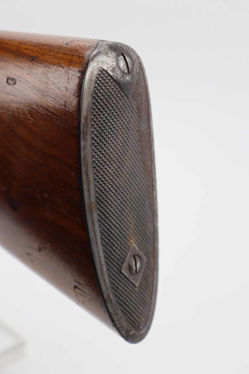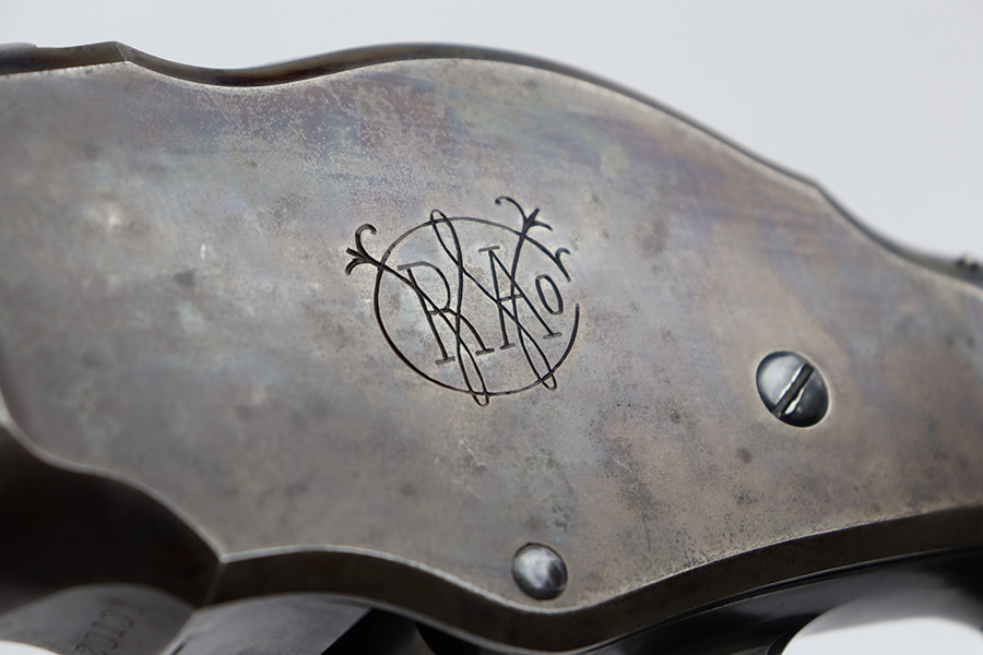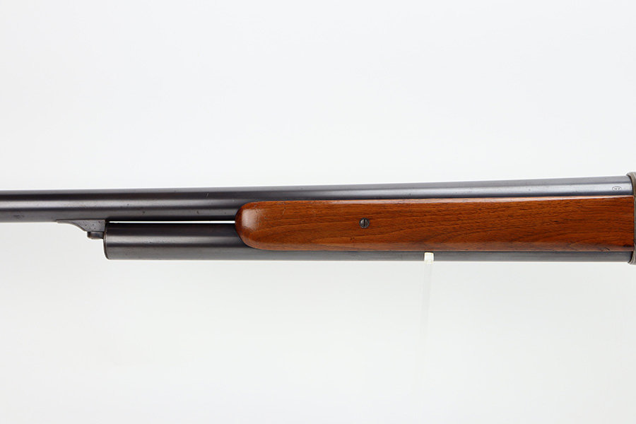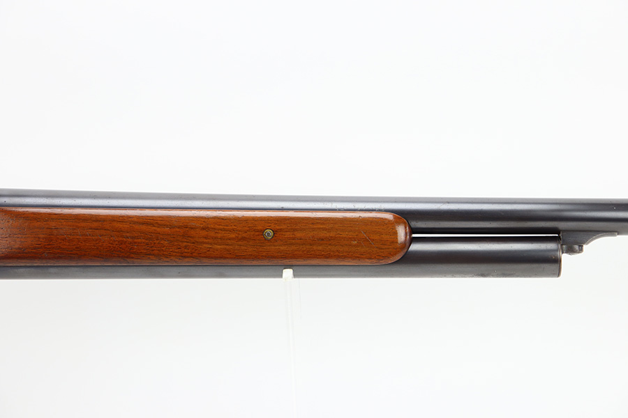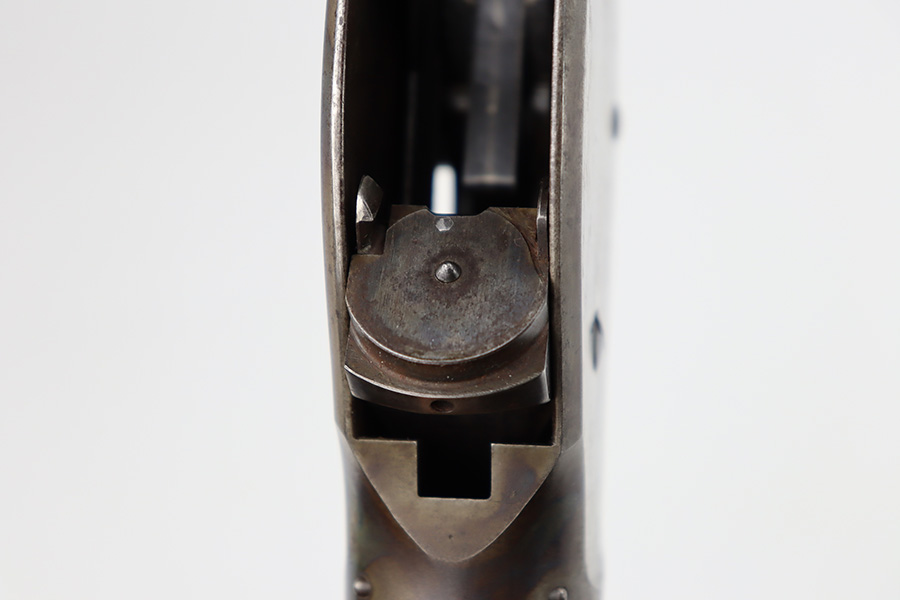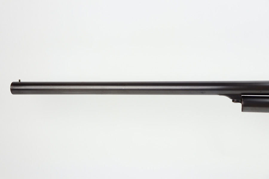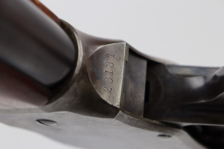 12/5/23 – This is a fantastic example of a rare and early Winchester Model 1887 lever-action shotgun from 1888, the 2nd year of production. The Model 1887 was the first lever-action repeating shotgun produced by Winchester. Only 64,855 of these were made from 1887-1901, and this is a particularly high condition example with deluxe case-hardened receiver. Most prior shotguns were single or double barrel break actions. The Model 1887 held six shots and could be fired rapidly. The Model 1887 built upon the solid reputation of Winchester’s lever action rifles and carbines that were already in widespread use throughout the country. Many Model 1887s replaced double barrel coach guns used by “shotgun messengers” employed by express companies and lawmen throughout the country. The left side of the receiver has the “WRACo” monogram. The lower tang is stamped with the four-line address/patent dates marking. The receiver has beautiful case-hardening that even extends to the internals of the action. Excellent bluing overall with some finish loss and freckling on the mag tube. The receiver also shows some minor pinpricking on the right side. The bore is somewhat shiny but there are a few patches of pitting. Excellent wood furniture with no notable defects. Cody letter states the serial was applied in 1888 but shipped in 1890.