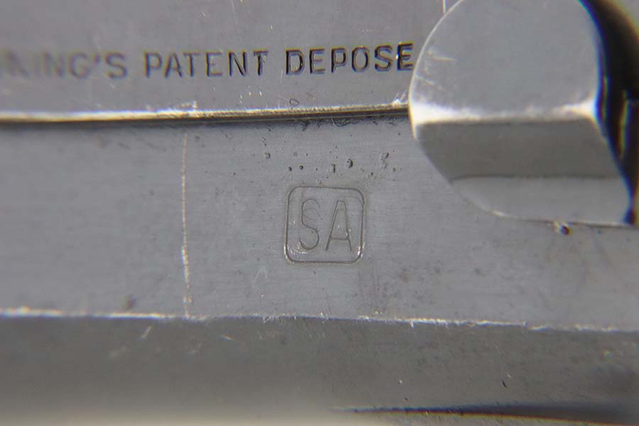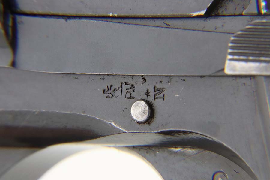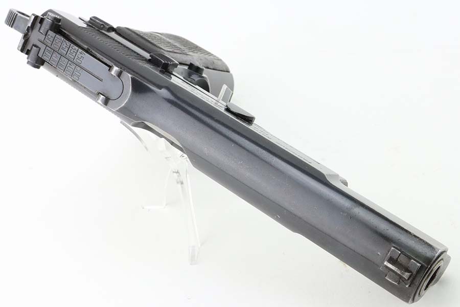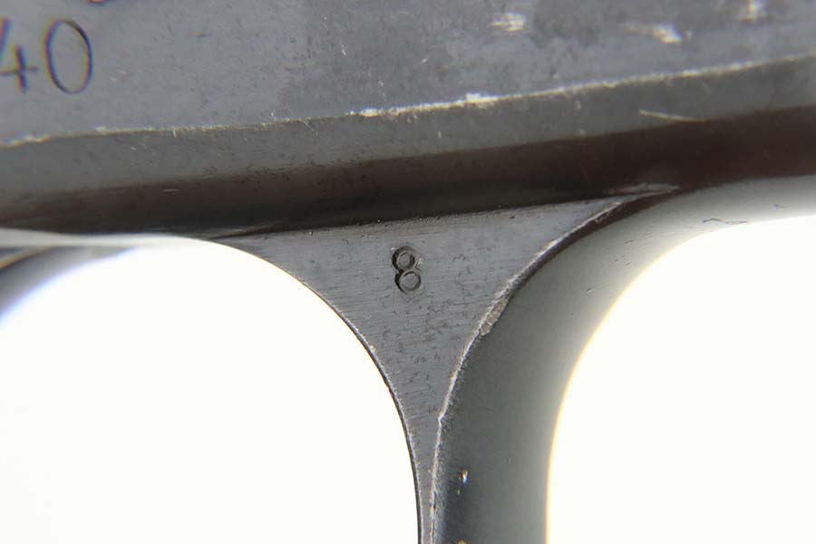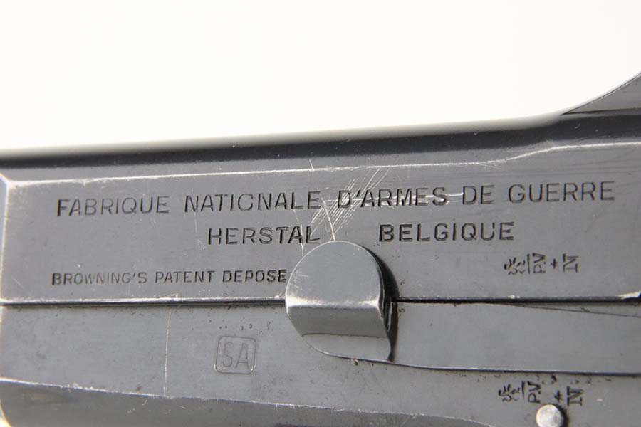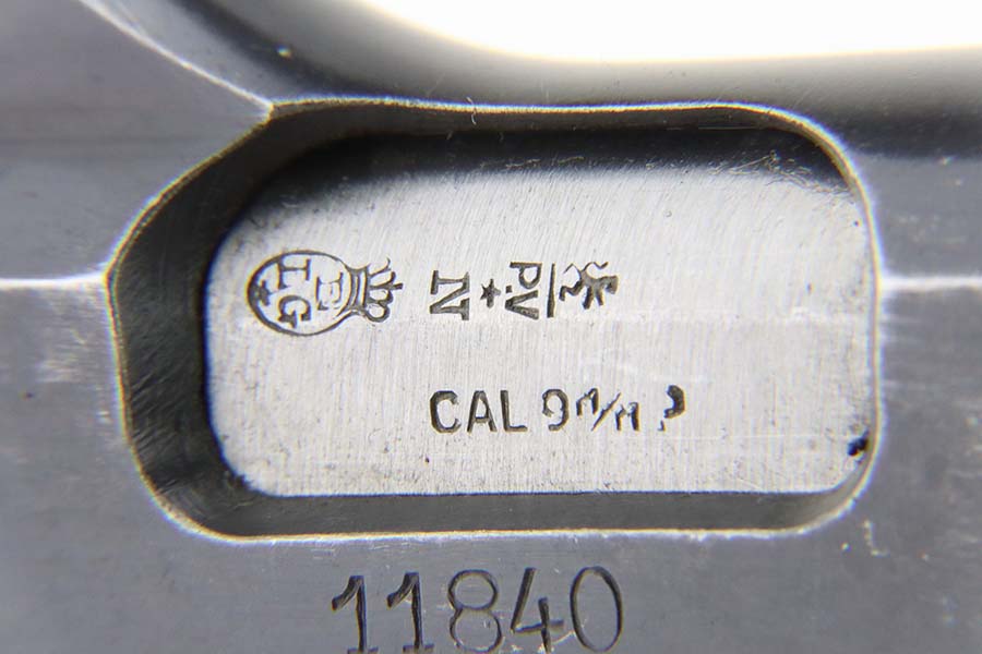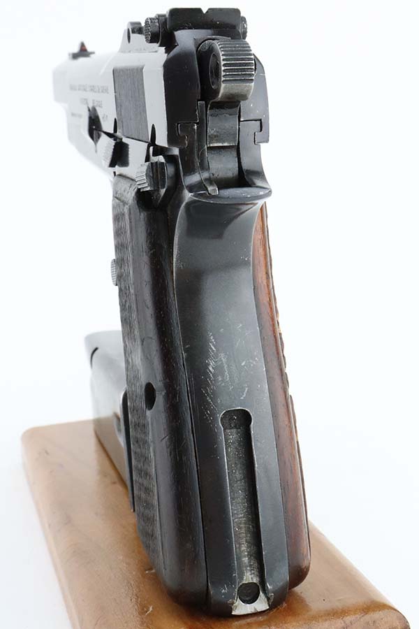 4/3/24 – This is a very rare and desirable FN Browning High Power that was part of a very small Finnish contract. Per Vanderlinden’s book on FN pistols, Finland used nearly every FN handgun over the years in their attempts to defend themselves against their Russian neighbors. With the outbreak of the Winter War, Finland requested a supply of High Powers with shoulder-stocks on a short schedule. Only ~2,400 such examples were shipped, all in serial range 11,000-15,000. This pistol is in the proper serial range. Finnish “SA” marking on the right side of the frame. It is all matching. The original finish rates about 95% with general high edge wear, some light scratches here and there, and dulling on the grip straps. Fitted with proper wood grips – the colors don’t match each other. The bore has good rifling for the most part, but there are some pits in the grooves.