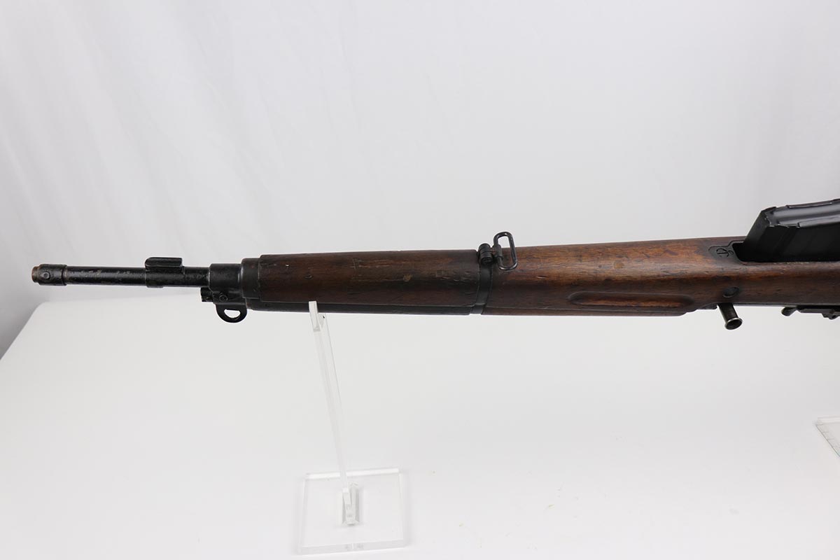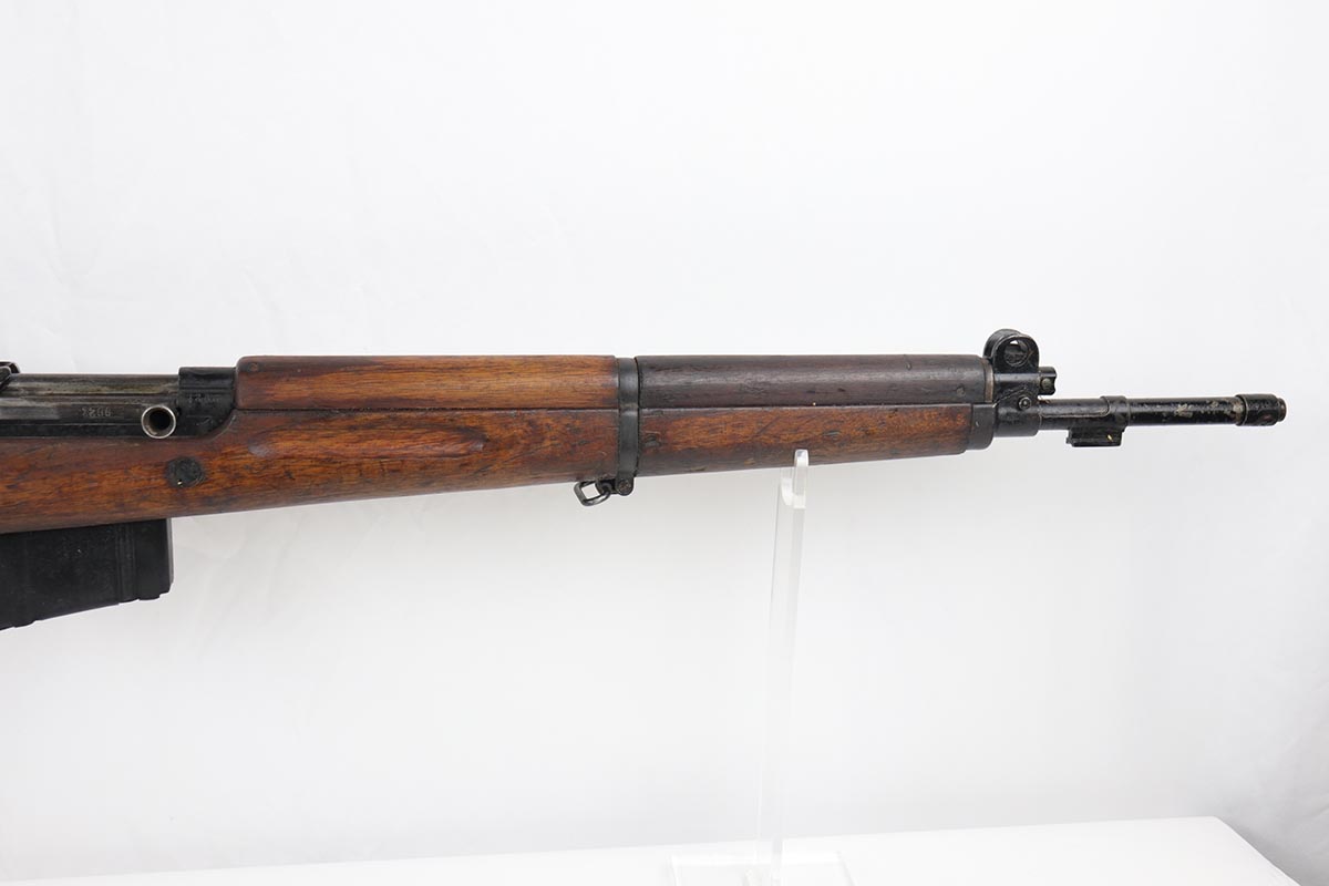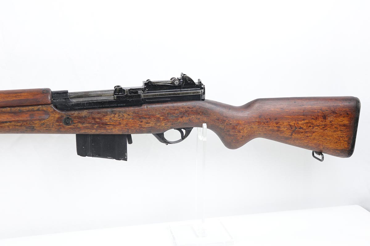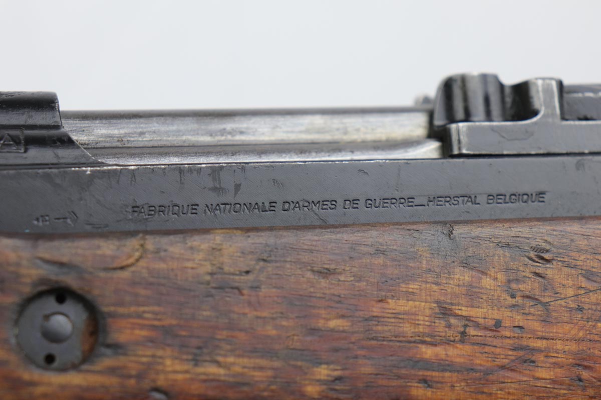 7/9/19 – This is a very nice example of a rare FN Model 1949 rifle that was part of an Argentine Navy contract. This is a non-import example that comes with three sister contract examples that will be listed concurrently on the Legacy site. The FN49 was designed by the Belgian manufacturer Fabrique Nationale before WWII; however, plans to produce the semi-automatic rifle were abandoned when the Germans occupied Belgium. Many FN engineers fled to England during the war and returned to Belgium when it was liberated by the allies in 1944. With their return to Belgium these engineers revitalized their plans for what would eventually become the FN49, (also known as the SAFN short for “semi-automatic FN”). While the FN49 was high quality in its time, it saw limited production and use because it did not come into production until after WWII and it eventually had to compete with the popular HK G3 and FN FAL rifles which utilized more modern technology. The FN49 was produced for 8 primary contracts. This particular rifle was produced for the Argentine contract of a 5,536 rifles in 1953. In the early 1960s the Argentine navy converted their FN49s to 7.62mm Nato and the magazine was converted from the 10-round fixed magazine to a 20-round detachable magazine which was again later cut down to a 10-round detachable magazine. This particular gun has the 10-round detachable magazine. The gun is all matching, including the stock. Stock is otherwise unmarked, aside from rack number on the right side. There is minor thinning and patina throughout on the receiver, and some more obvious wear and paint chipping on the barrel. The bore is excellent and shiny. This is a non-import example, and are not often found in such configuration. Having said all that, these four examples are the first we’ve offered and we are not experts on this model. If any of our followers or customers are more educated on these rifles, feel free to email us with any notes on them, or to ask any necessary questions.