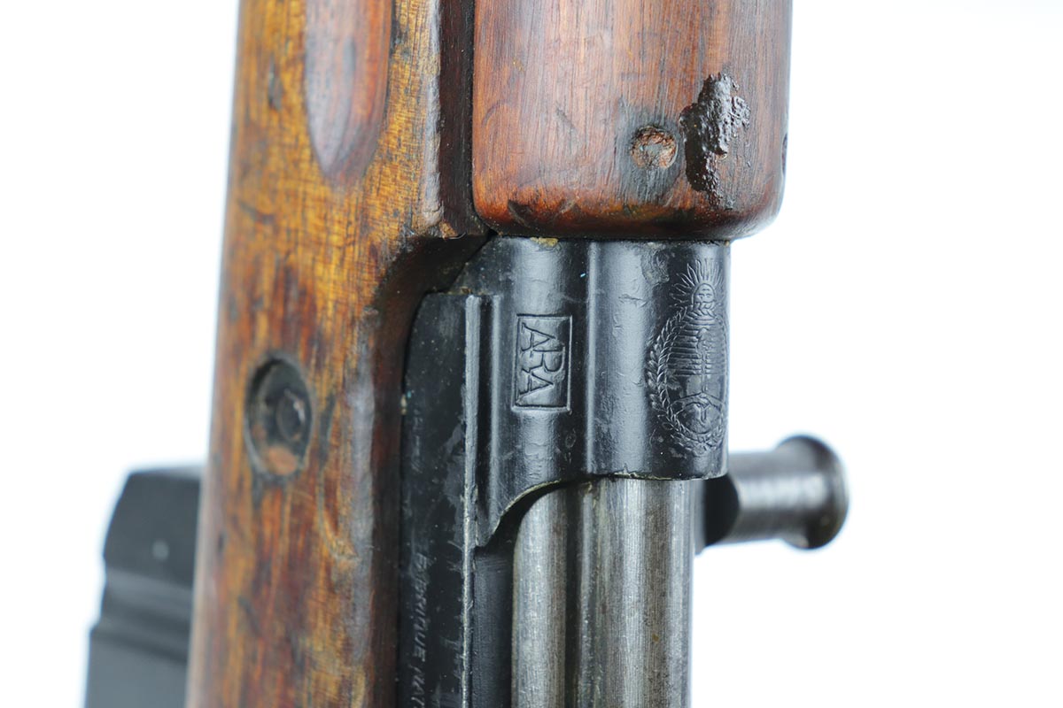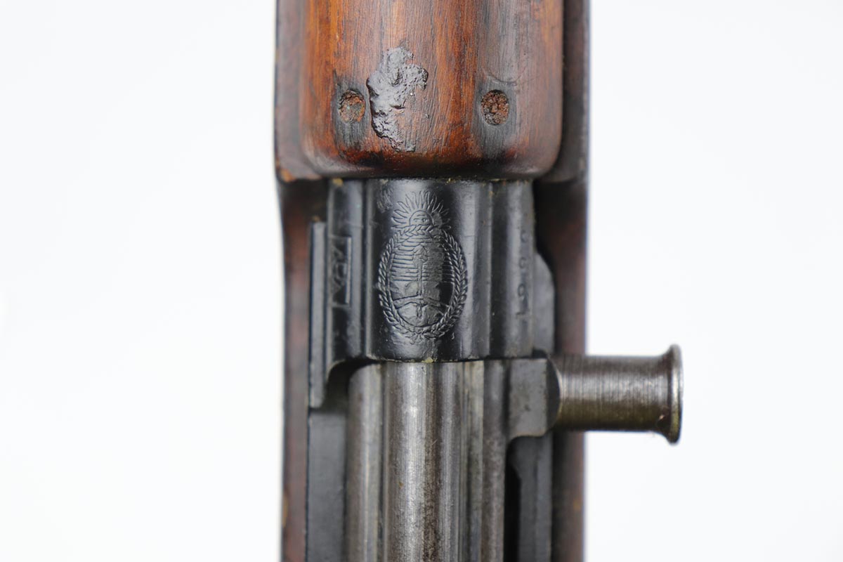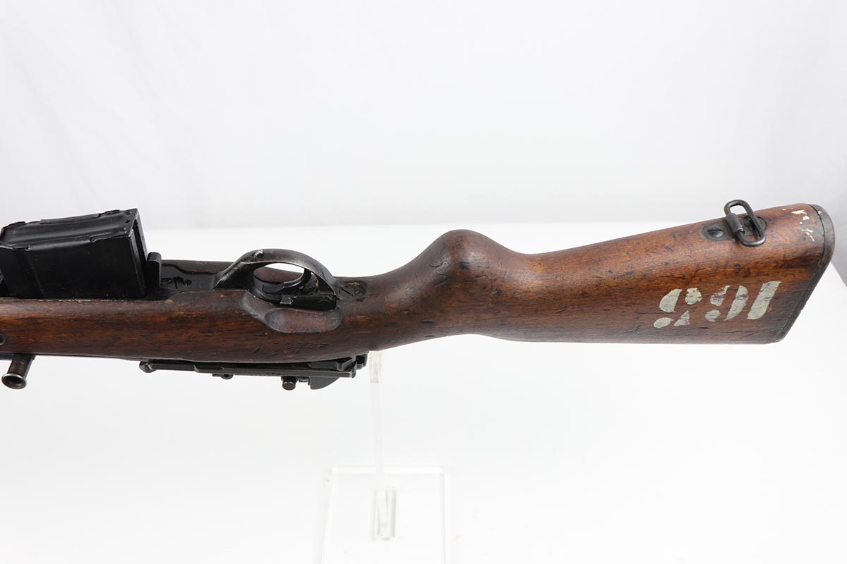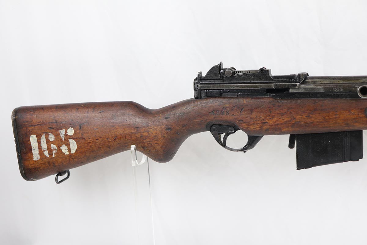 7/9/19 – This is a very nice example of a rare FN Model 1949 rifle that was part of an Argentine Navy contract. This is a non-import example that comes with three sister contract examples that will be listed concurrently on the Legacy site. The FN49 was designed by the Belgian manufacturer Fabrique Nationale before WWII; however, plans to produce the semi-automatic rifle were abandoned when the Germans occupied Belgium. Many FN engineers fled to England during the war and returned to Belgium when it was liberated by the allies in 1944. With their return to Belgium these engineers revitalized their plans for what would eventually become the FN49, (also known as the SAFN short for “semi-automatic FN”). While the FN49 was high quality in its time, it saw limited production and use because it did not come into production until after WWII and it eventually had to compete with the popular HK G3 and FN FAL rifles which utilized more modern technology. The FN49 was produced for 8 primary contracts. This particular rifle was produced for the Argentine contract of a 5,536 rifles in 1953. In the early 1960s the Argentine navy converted their FN49s to 7.62mm Nato and the magazine was converted from the 10-round fixed magazine to a 20-round detachable magazine which was again later cut down to a 10-round detachable magazine. This particular gun has the 10-round detachable magazine. The gun is all matching, including the stock. Stock is otherwise unmarked, aside from rack number on the right side. There is minor thinning and patina throughout on the receiver, and some more obvious wear and paint chipping on the barrel. The bore is excellent and shiny. This is a non-import example, and are not often found in such configuration. Having said all that, these four examples are the first we’ve offered and we are not experts on this model. If any of our followers or customers are more educated on these rifles, feel free to email us with any notes on them, or to ask any necessary questions.