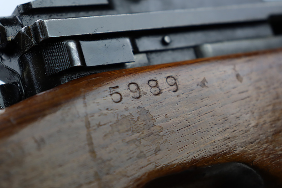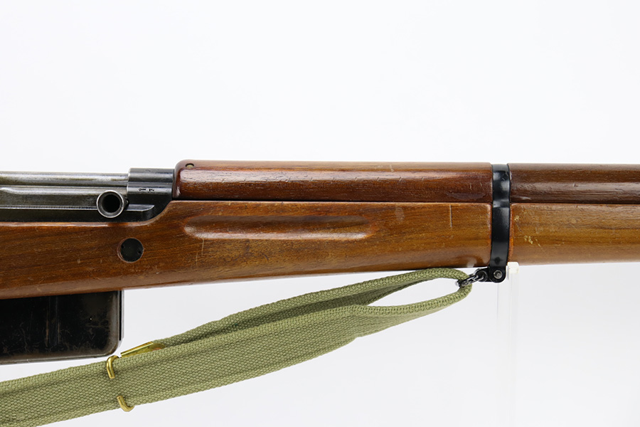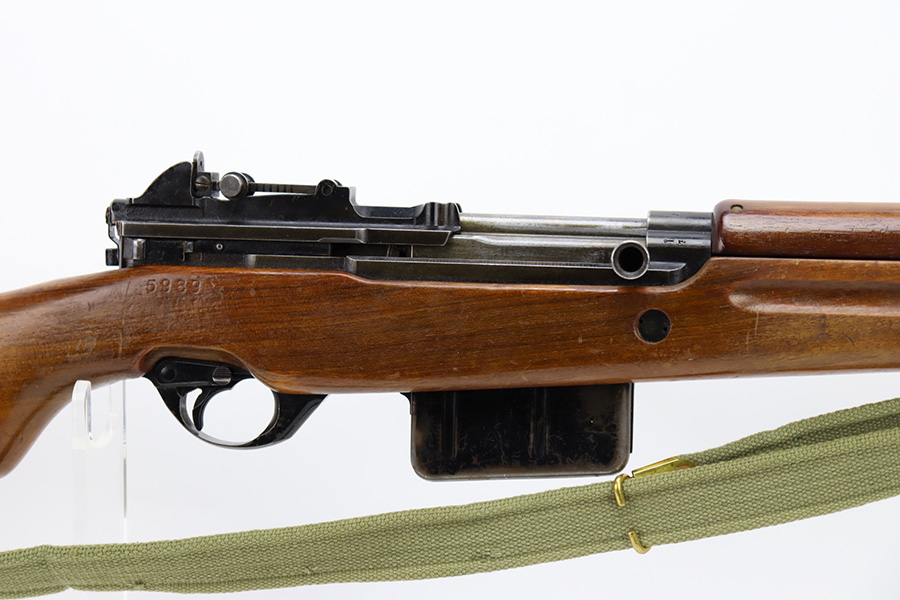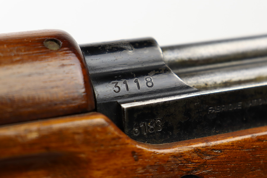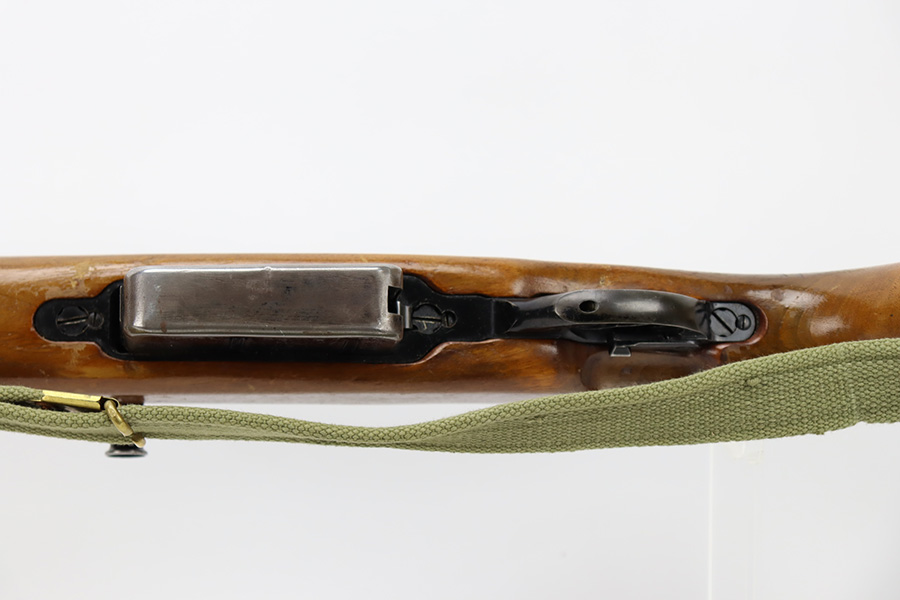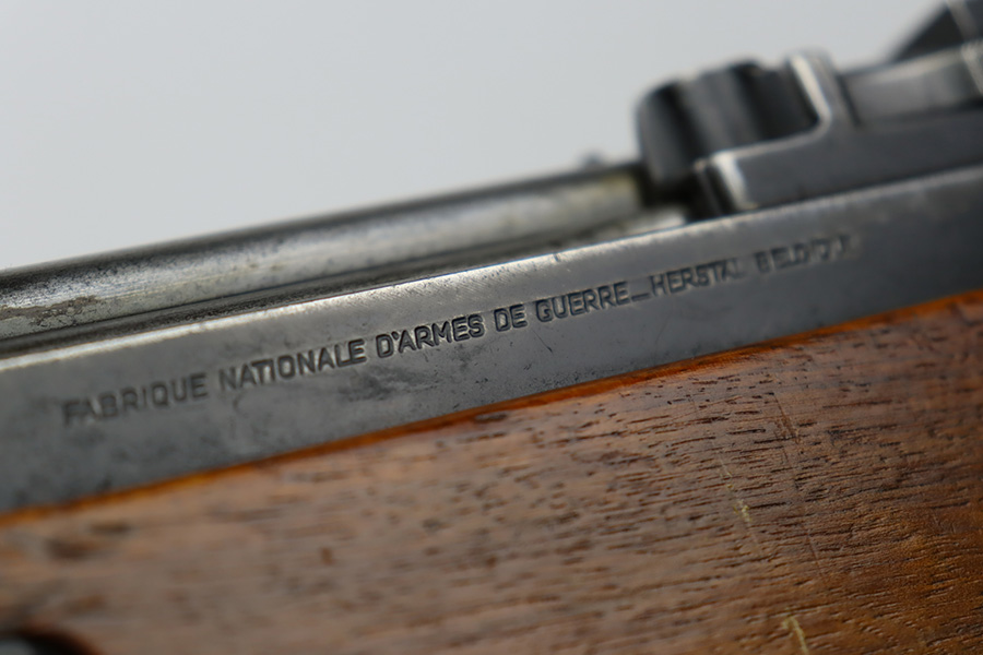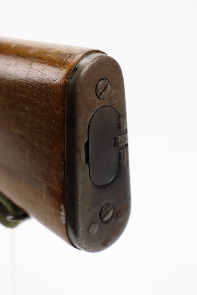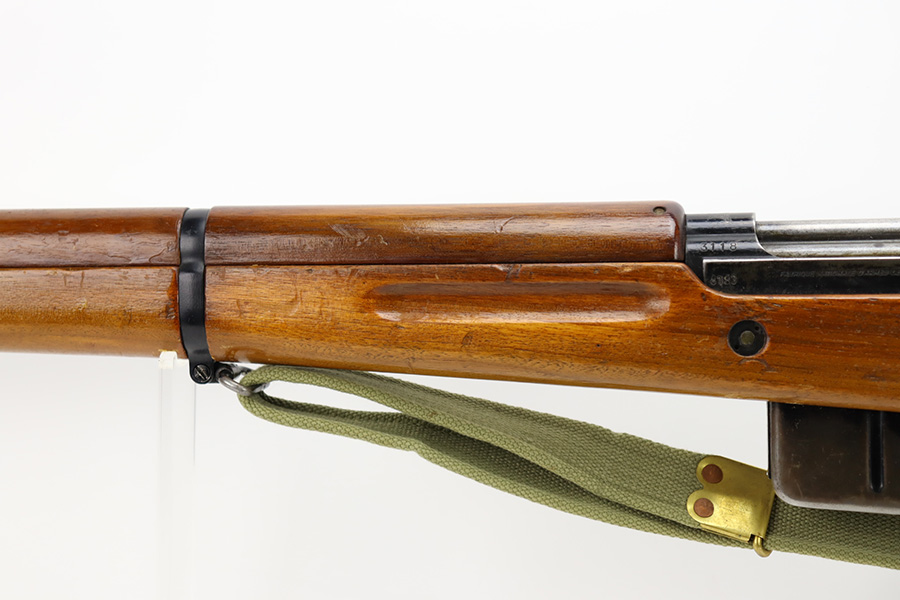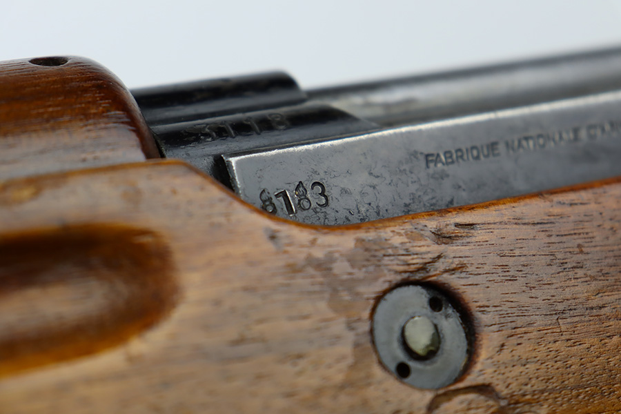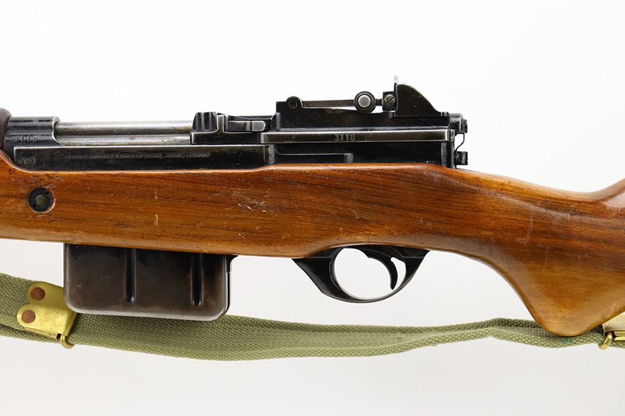 12/4/23 – The FN49 was designed by the Belgian manufacturer Fabrique Nationale before WWII; however, plans to produce the semi-automatic rifle were abandoned when the Germans occupied Belgium. Many FN engineers fled to England during the war and returned to Belgium when it was liberated by the allies in 1944. With their return to Belgium these engineers revitalized their plans for what would eventually become the FN49, (also known as the SAFN short for “semi-automatic FN”). While the FN49 was high quality in its time, it saw limited production and use because it did not come into production until after WWII and it eventually had to compete with the popular HK G3 and FN FAL rifles which utilized more modern technology. The FN49 was produced for 8 primary contracts. This particular rifle was produced as part of the 4th contract which was for 6,306 rifles for Luxembourg in 1951. The gun has matching numbers on barrel and receiver, but there’s a mismatched number on the stock. The receiver shows a proof of a flaming bomb next to the digit ‘1’ and another next to a digit ‘3’, but not sure the significance. It has retained about 70-80% of its black enamel finish. Generally, there is some thinning on the barrel and receiver edges, with finish loss on the magazine and trigger guard. No major damage to the stock, but there are bruises and scratches throughout. Comes with a canvas sling. The bore has strong rifling but notable frost throughout and could benefit from a thorough cleaning.