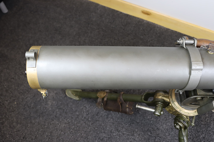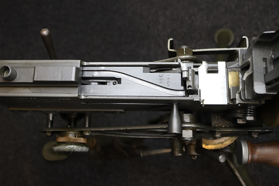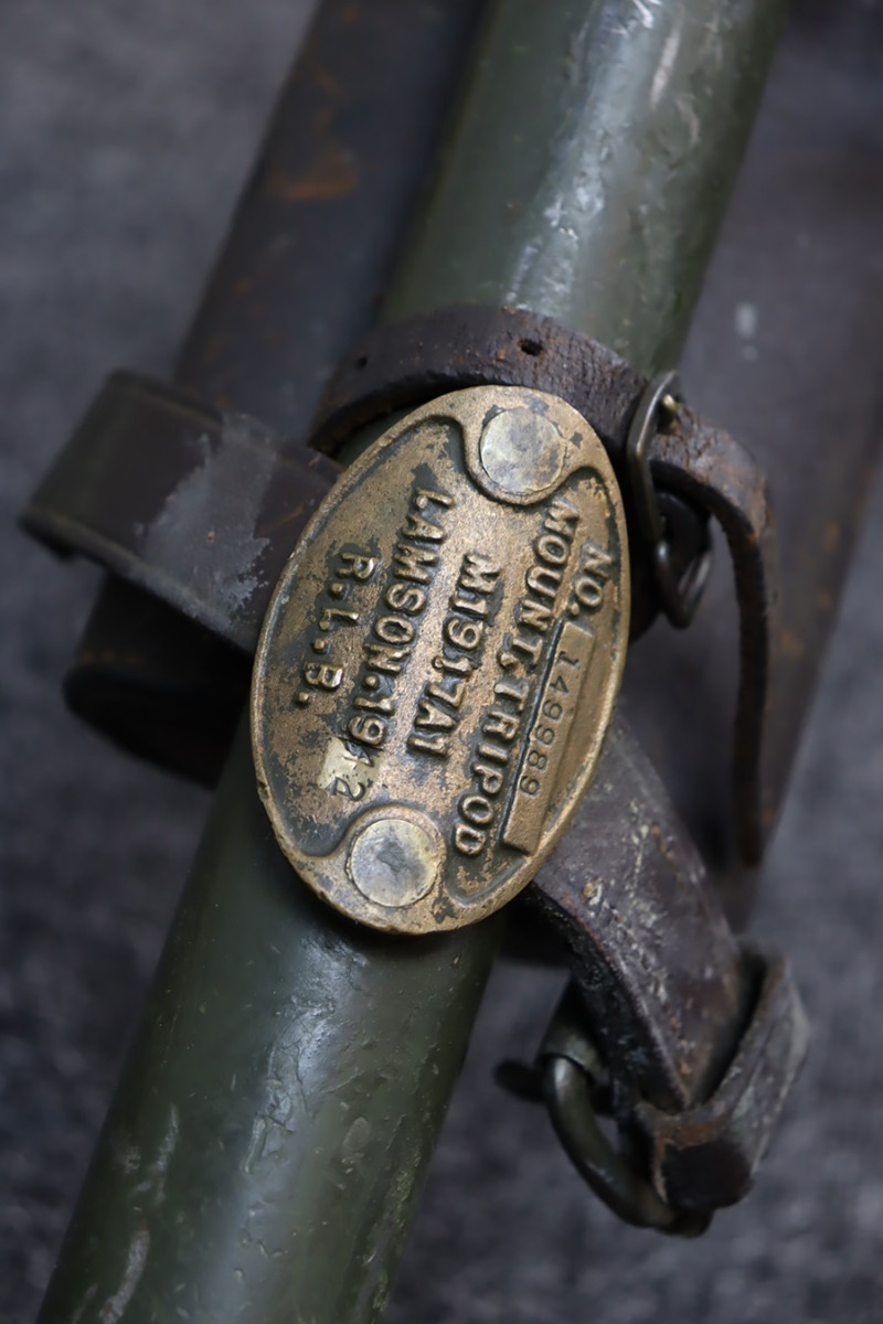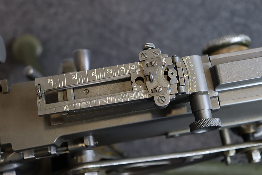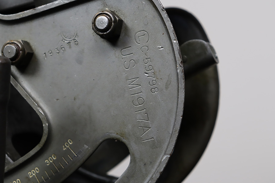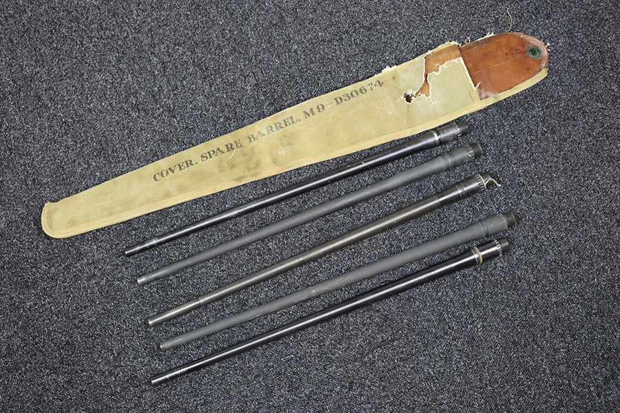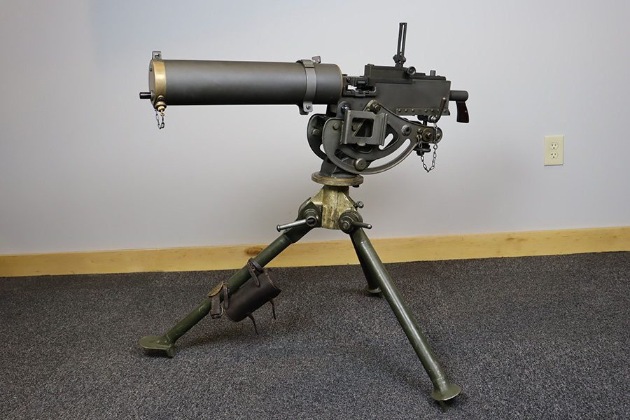 11/28/23 – This is an example of a very desirable early belt feed, medium machine gun as remanufactured by Inland Arms of Austin Texas (not to be confused with the GM Inland Division or the Inland Arms currently located in Dayton, Ohio). The 1917 series of machine guns were developed right at the end of WWI; however, they saw service in WWII, Korea and even in Vietnam. The difference between this the 1917 series and the later 1919 series is that the 1917 was fitted with a large water jacket around the barrel to help cool it during heavy sustained fire, while the 1919 was air-cooled. This was patterned after the Maxim MGs that also used a similar water cooling system. Both the 1917 and later 1919 designs were developed by John Browning, based on a square boxed riveted receiver that was so successful it actually became the forerunner to the later M2 50cal which is still in use after over 85 years. This particular example is in fantastic condition, and currently set up to operate with 8mm Mauser. The listing does include a total of five spare barrels, including one for .30-06 and another for .308. With the proper guides, the gun can be used interchangeably with all three calibers, and the seller likely has those guides available should the buyer wish to purchase them. There are many extras included with this listing, including an original 1917 tripod and cradle. There is also an original ammo pouch, five spare barrels, a spare barrel pouch, the water tank, two hoses, a loading device and a case with links/belts for the ammo. The tripod is marked for the M1917A1 and labeled ‘Lamson.1942 / R.L.B.”, with those initials also on the ammo pouch. The rifling remains strong in every barrel, but a few have some pitting in them while others are excellent throughout. The seller tells us this gun appeared to be in unfired condition when he bought it many years ago, and ran flawlessly for him. Fully transferrable.
