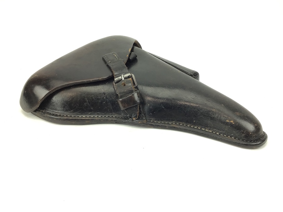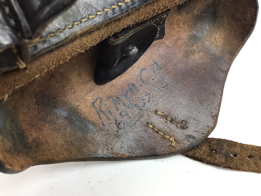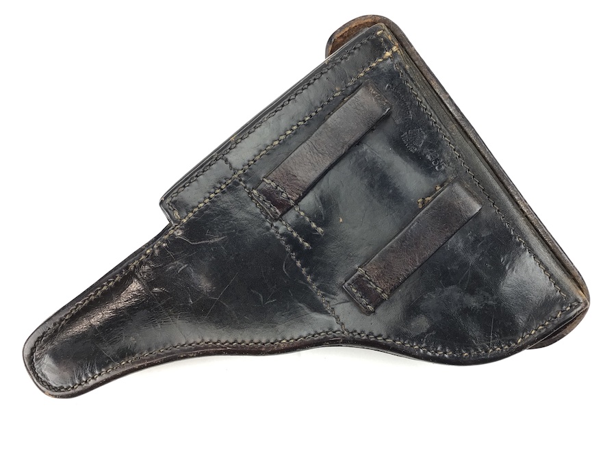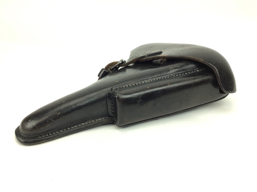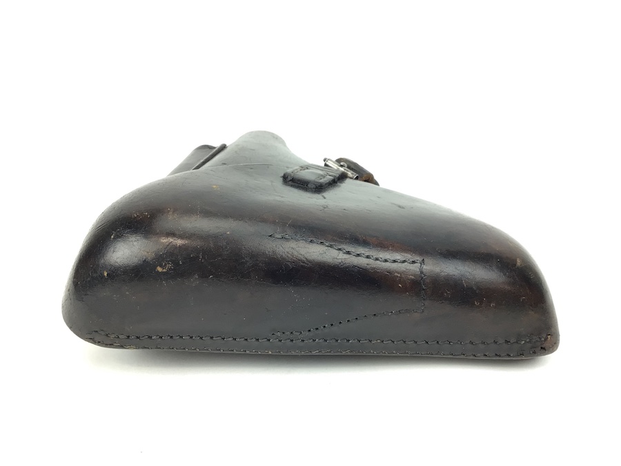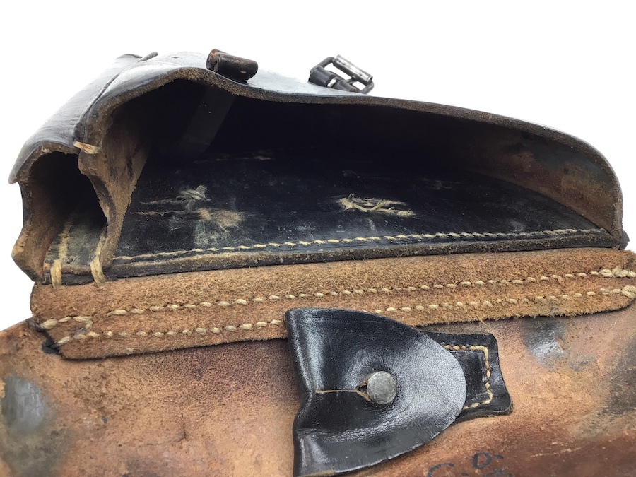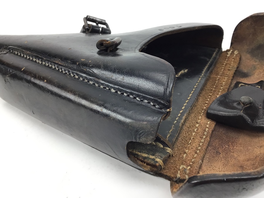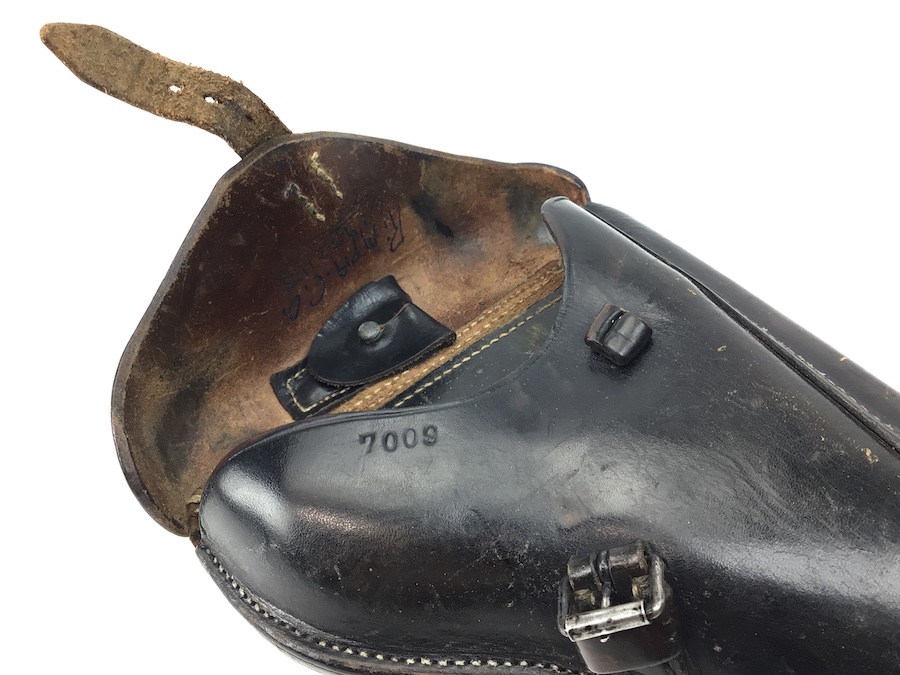 6/10/21 – This is an extremely rare 1935 dated Luger holster. This is the rarest of the WW2 Luger holster dates. The holster is appropriate for K date and G Date Lugers. The back of the holster is maker stamped, dated, and waffen proof stamped. There is also 4 numerals stamped on the front “7009”. Personalized under the flap with ink. The holster has nice leather with normal pliability. There is minor surface wear. The stitching is all original and in tact. Clean interior with secure lift strap.