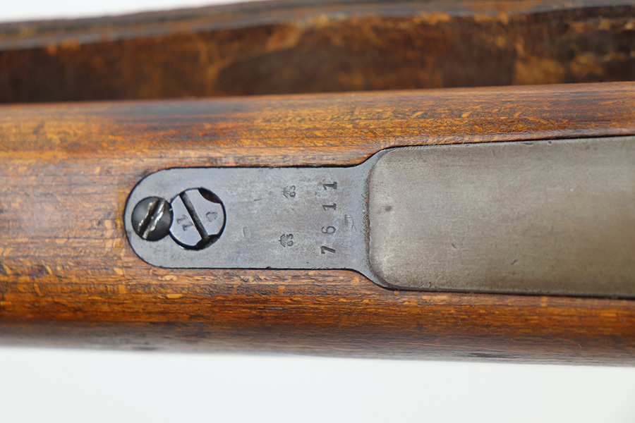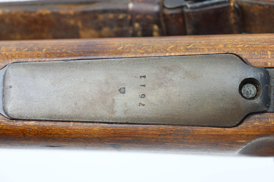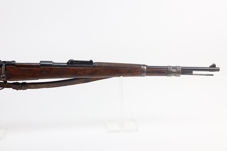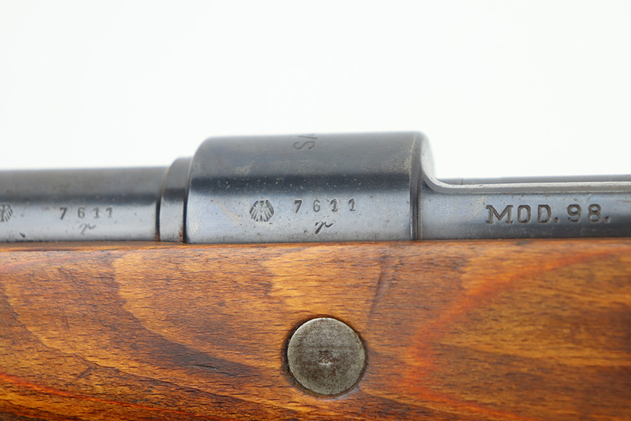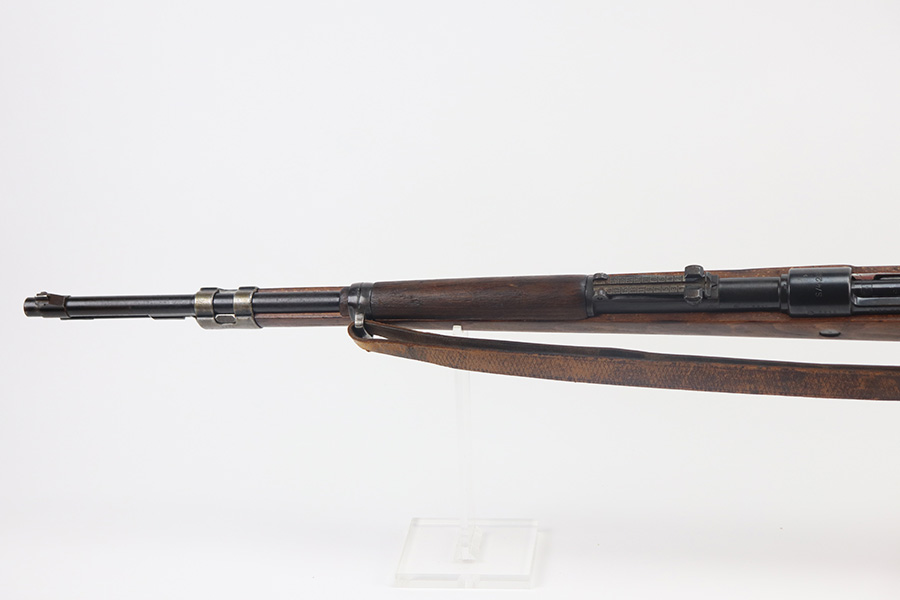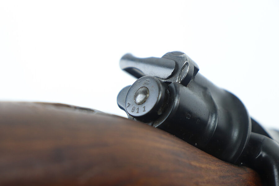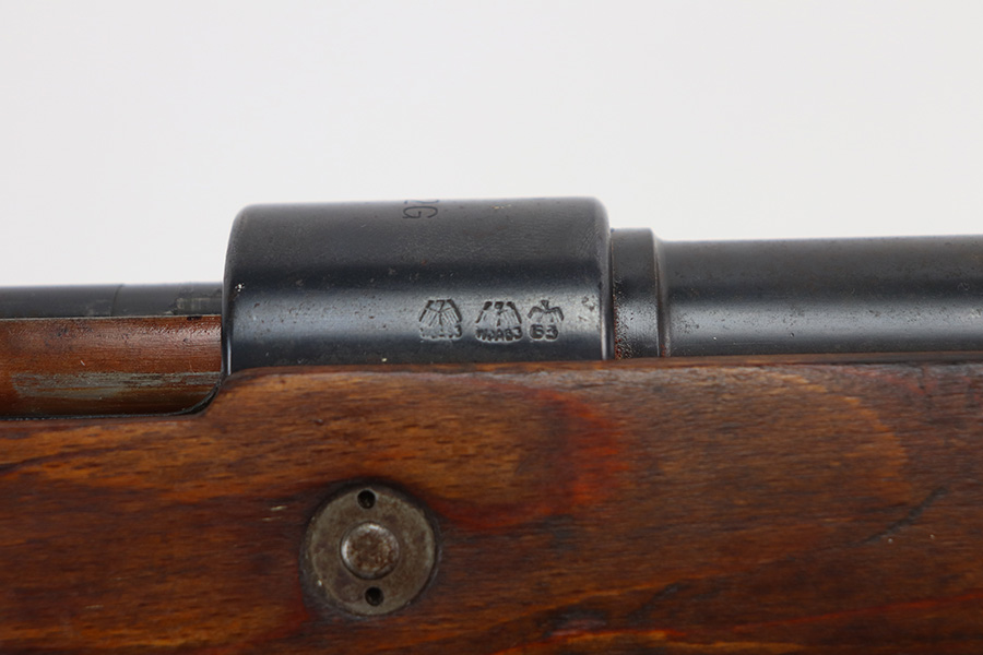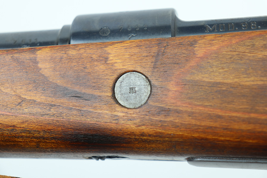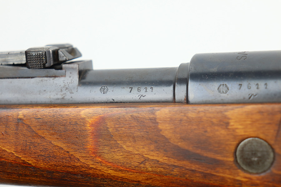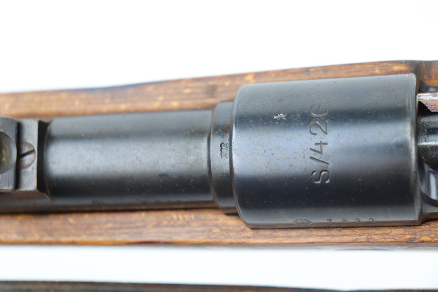 5/21/21 – This is a rare “G Date” Mauser K98 rifle issued to the Nazi military in 1935. Introduced during the early years of the Nazi Party’s dominance of Germany, the code system was intended to obscure the scale and speed of German re-armament, and all correct G Date K98s are seldom available to the collector market. The date/factory code is “S/42G”. The gun is mostly matching except for the barrel bands and stock. It has the proper early proofs throughout. The stock is numbered and has Luftwaffe proofs. Overall, the gun is in excellent condition. There is spotty oxidation throughout, though. The stock is nice with just minor dings and dents throughout. The gun comes with a correct cleaning rod and leather sling. The bore is near-mint.