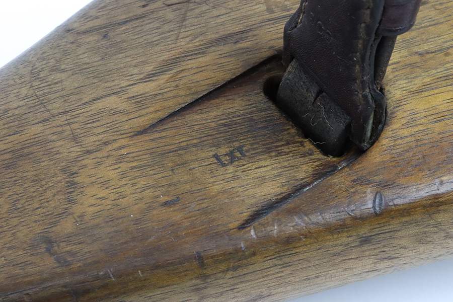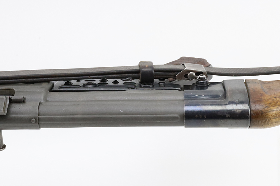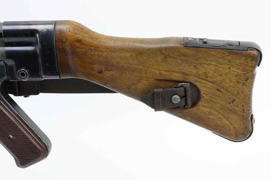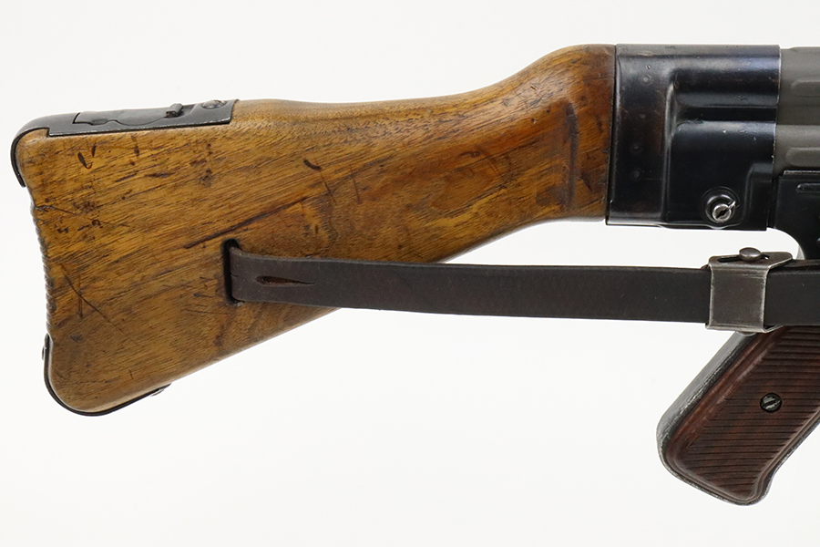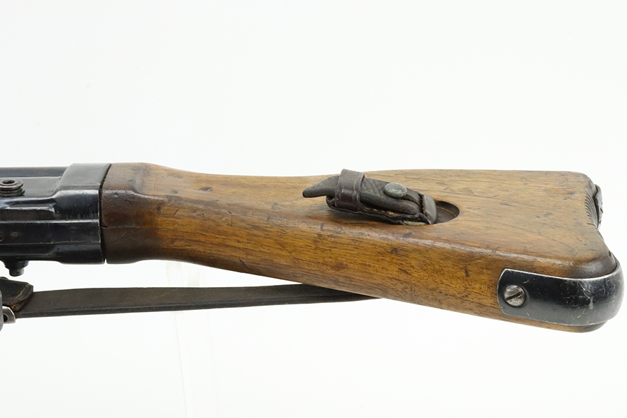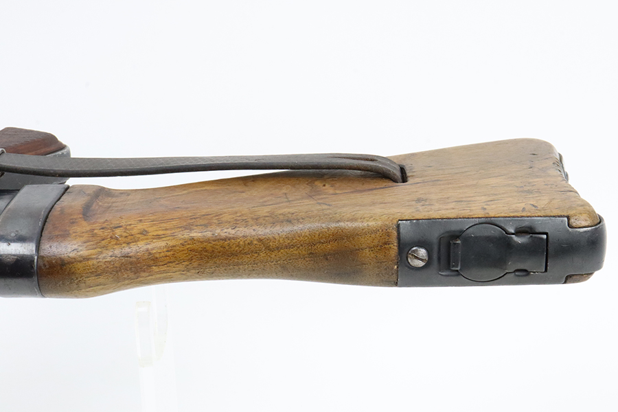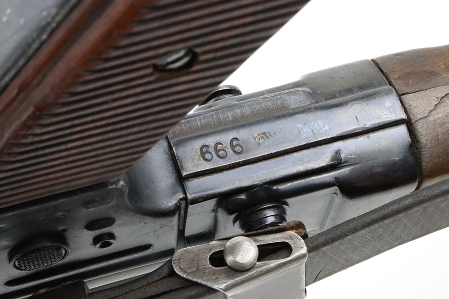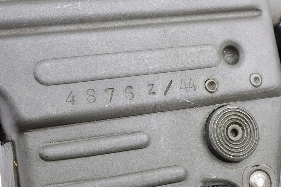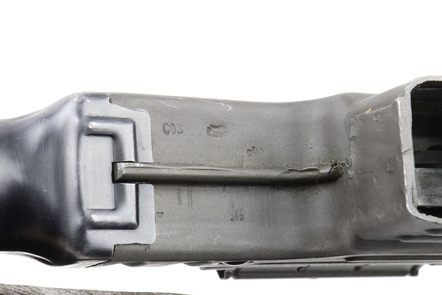 2/29/24 – This is a rare Nazi MP 44 modified to semi-automatic after the war. This MP44 is a professionally rebuilt 100% original parts kit. It is made to ATF specs as a semi auto rifle and is serialized. The receiver is a 1944 made and was tri-cut and skillfully re-welded. It has WW2 parts but mismatched numbers throughout. The finish is generally very good, and the receiver was parkerized after rebuild. Terrific bore. The listing includes a period leather sling. Receiver is proofed ‘cos’ and has several waffenamts, including a E/280 proof. Wood furniture appears to be period original and has a minor surface crack on the underside.