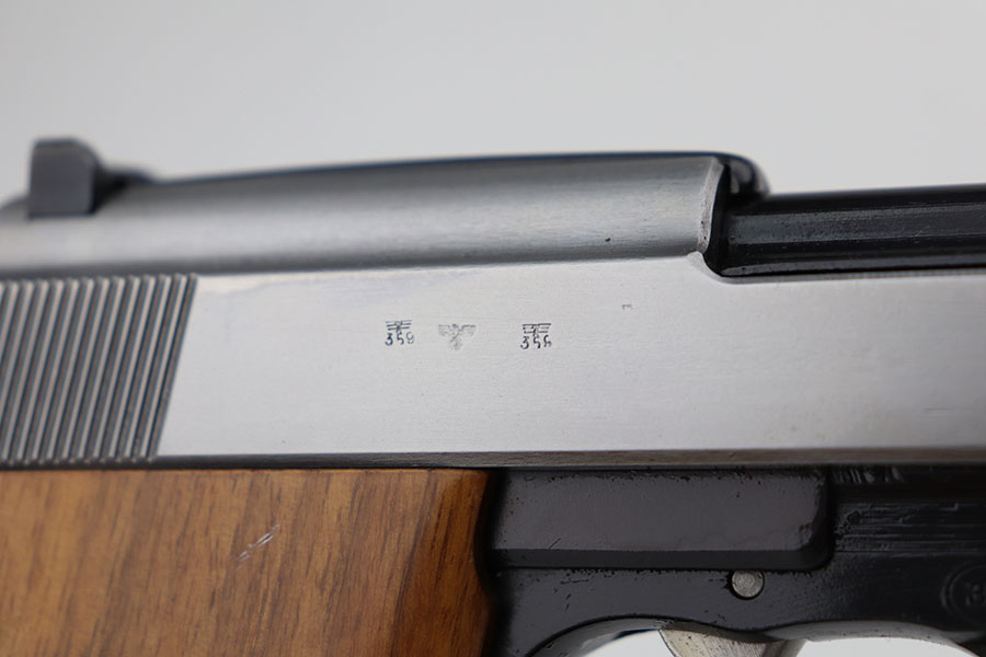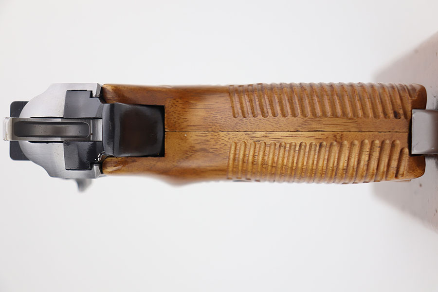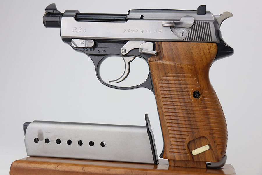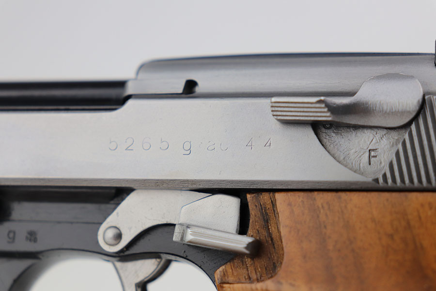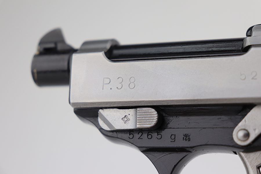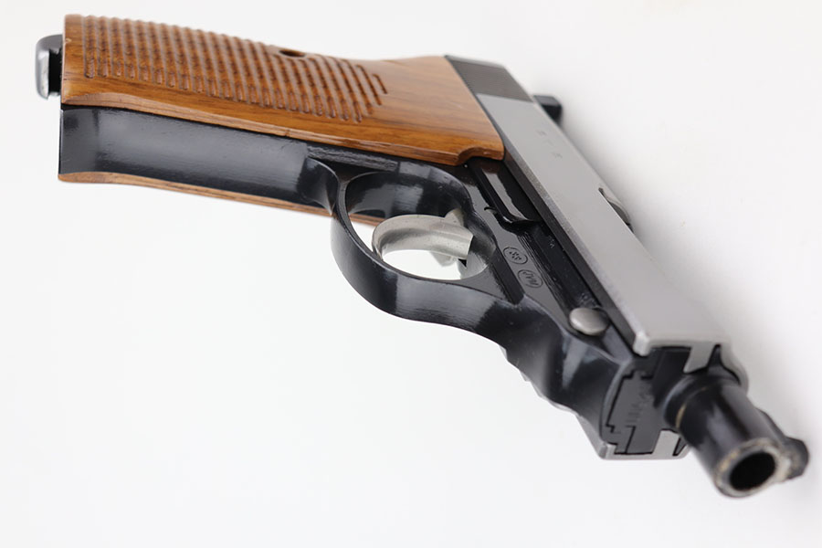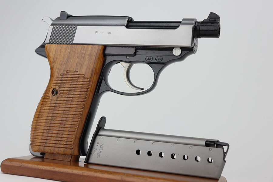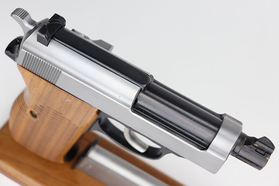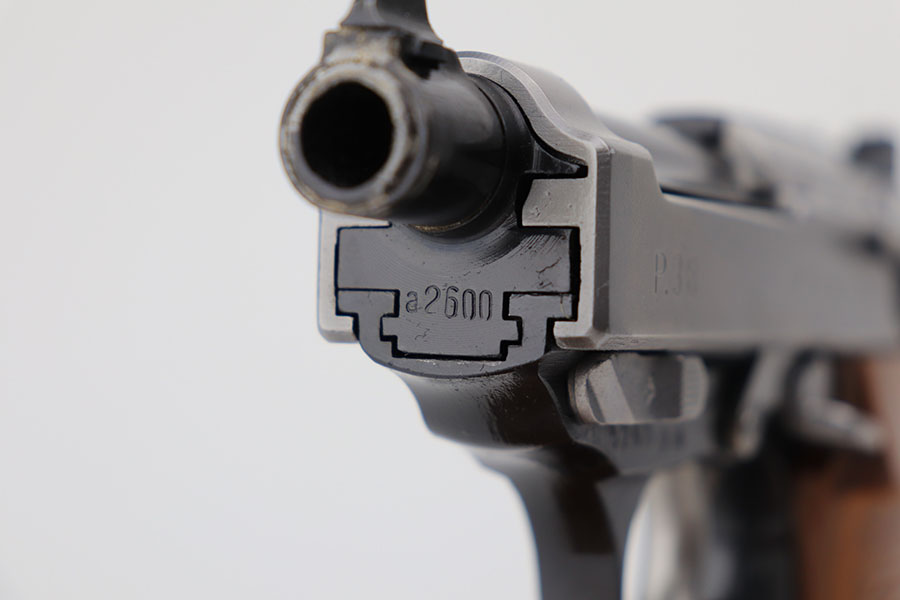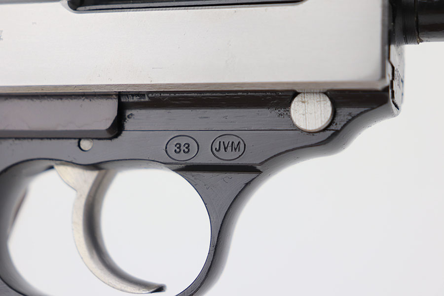 3/18/21 – This is a rare John V. Martz creation – a custom “Gestapo” P38 with snub nose barrel! John Martz became a world famous custom pistol maker in the mid-70s, when he invented MSTR – a Martz Safe Toggle Release modification for a Luger pistol. Since then he made many variations of custom luger pistols in various calibers and configurations, until his passing a few years ago. His custom guns became legendary and are mentioned in many gun magazines and books. In addition to working on lugers, John also manufactured/converted a number of P38 pistols, which actually proved to be a much greater challenge than the Lugers. This particular gun appears new with a minty bore and no wear. The metal work and bluing are stunning, and the slide and magazine have a satin style finish. Marked with Mr. Martz name and the production number, this fabulous gun is also made a with a scarce FN frame that’s matching to the slide. The barrel is a Spreewerk made example. Excellent presentation-style grips. NOTE: The safety works but not as a de-cocker.