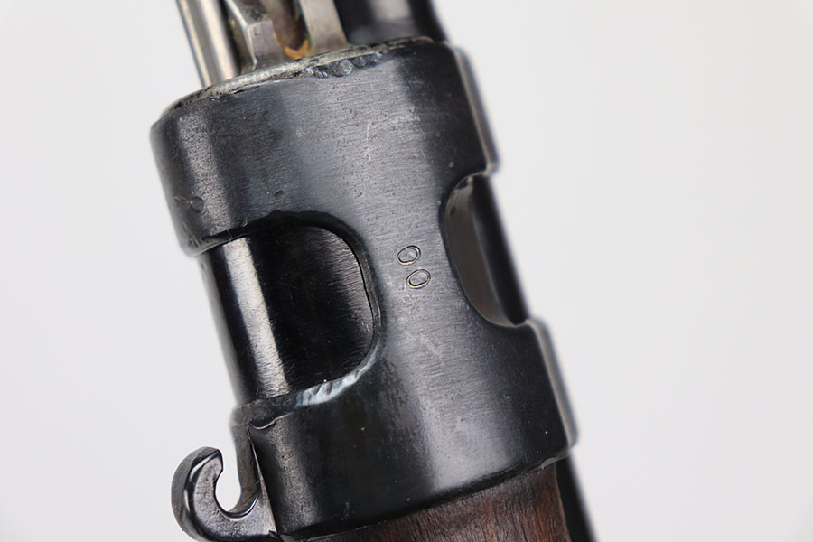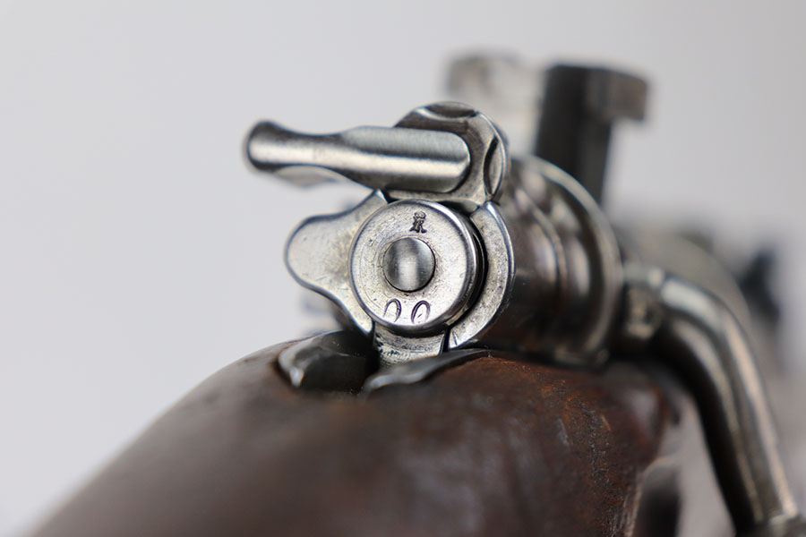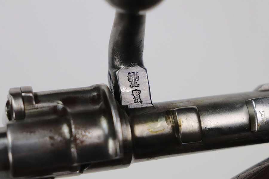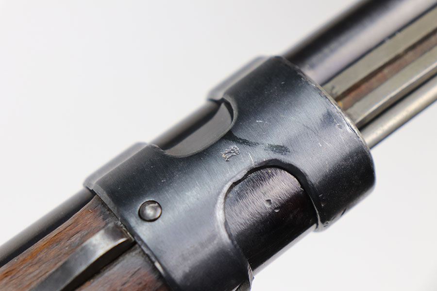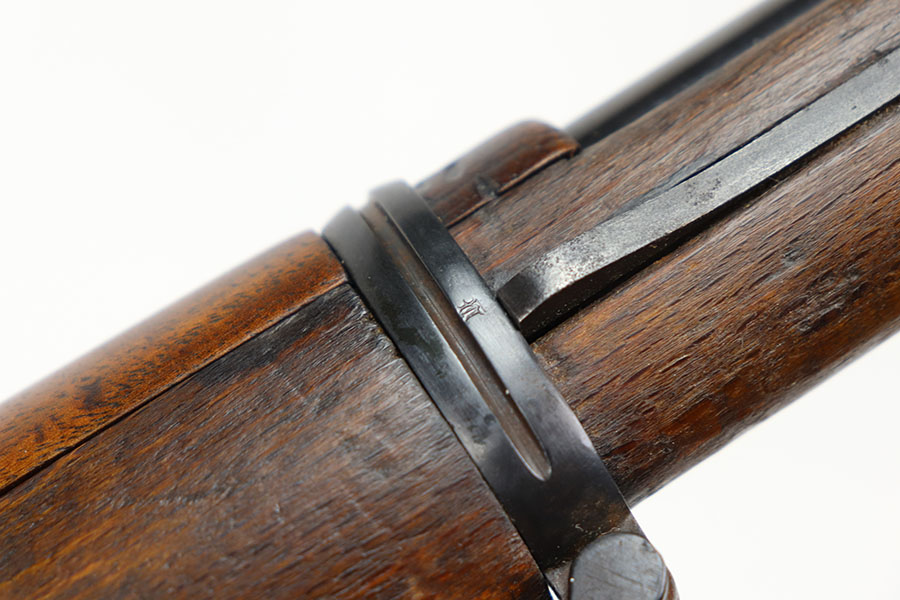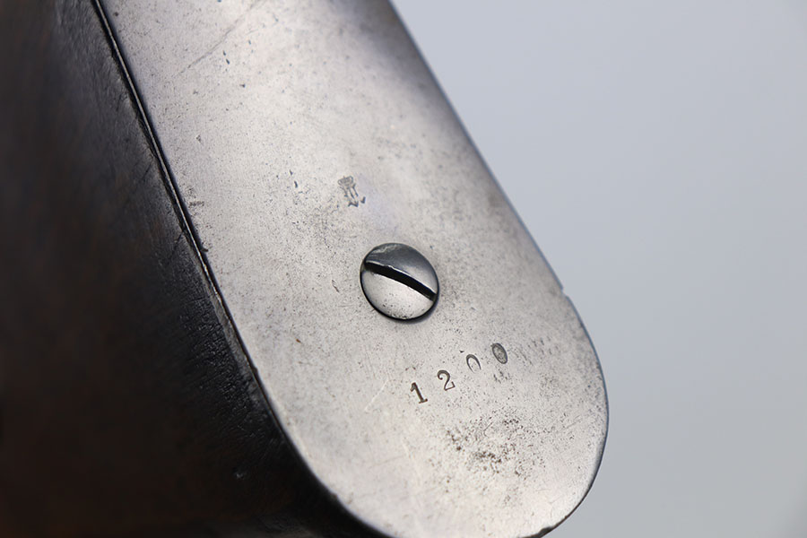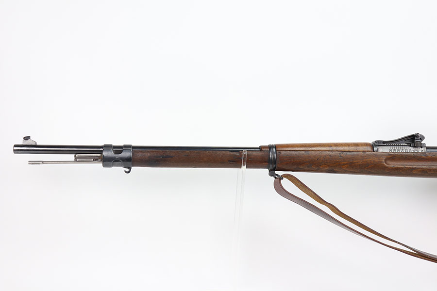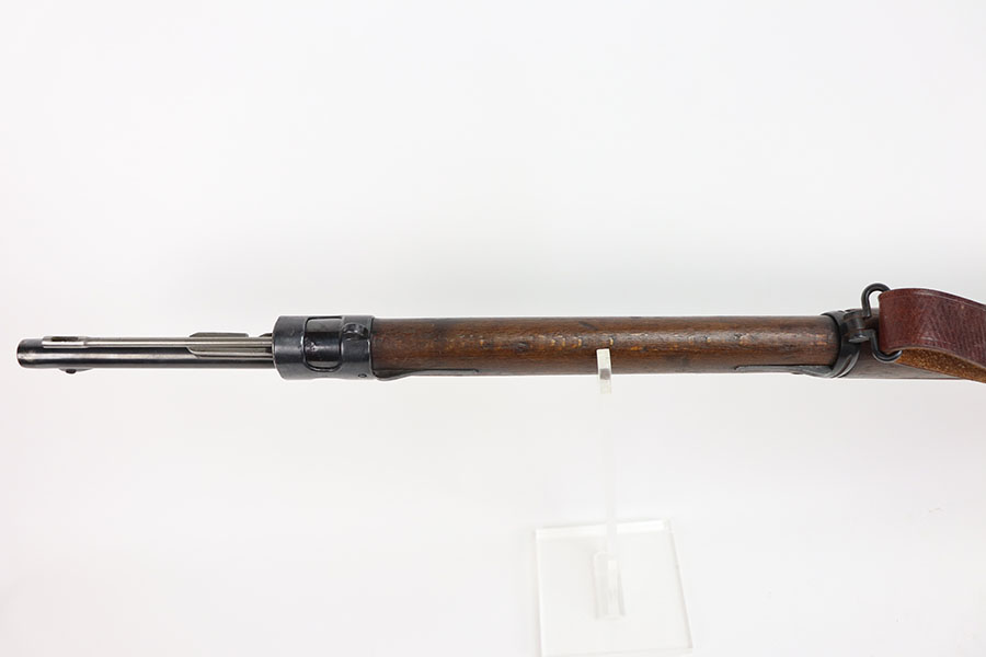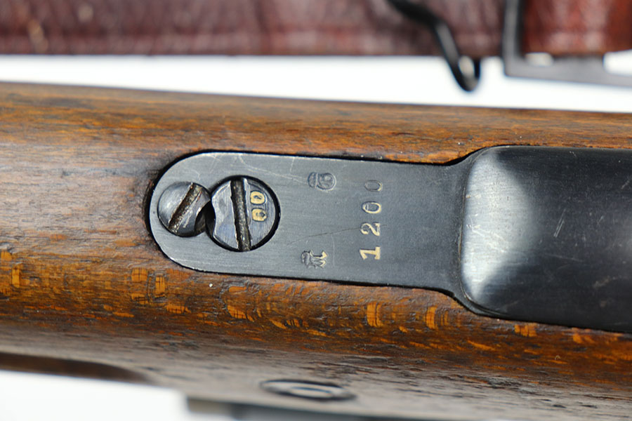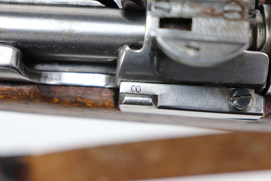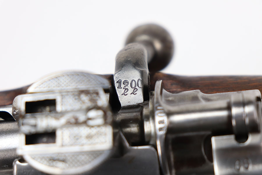 3/23/23 – This is a rare and super cool Gewehr 98 sniper rifle that was made during WWI at the Waffenfabrik Mauser A-G Oberndorf factory. It’s a terrific example of a WWI German Gewehr rifle that was converted into a sniper rifle. These WWI rifles all started out as standard service rifles and were modified/converted to sniper configuration by the addition of a set of double claw scope bases and scope. The primary difference of these WWI GEW snipers is the scope manufacturer and type of scope bases used; either the scope bases/claws were both mounted directly on top of the receiver or the rear base/set were off-set to the left side of the rear receiver, as in this case. The top of the receiver is covered by the front scope base, so we can’t identify the year of manufacture but can make out enough to identify the “Waffenfabrik Mauser A-G Oberndorf” marking. The rifle is all matching and original, serialized down to the mounts, adjustable sight, buttplate, etc. Receiver correctly in the white as this part was never blued. The stock has some dings and nicks but sharp Imperial proofs remain. Scarce Helios 5A scope with nice, clear optics. It’s also marked ‘Scharfstelling’ on the opposite side. We believe the only after market piece is the sling, which is certainly aged but we don’t believe is WWI original. Bore has strong rifling but some frost throughout.