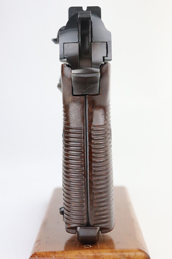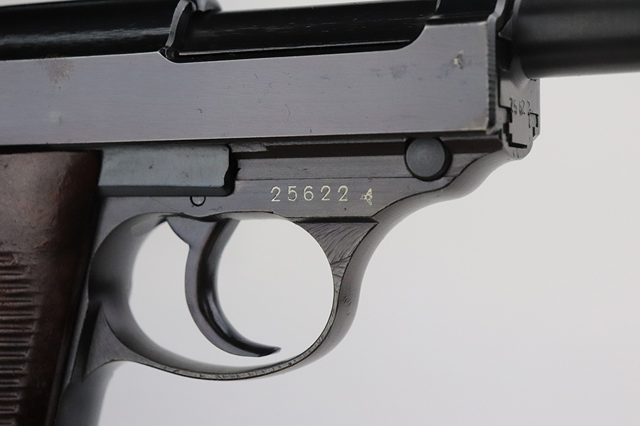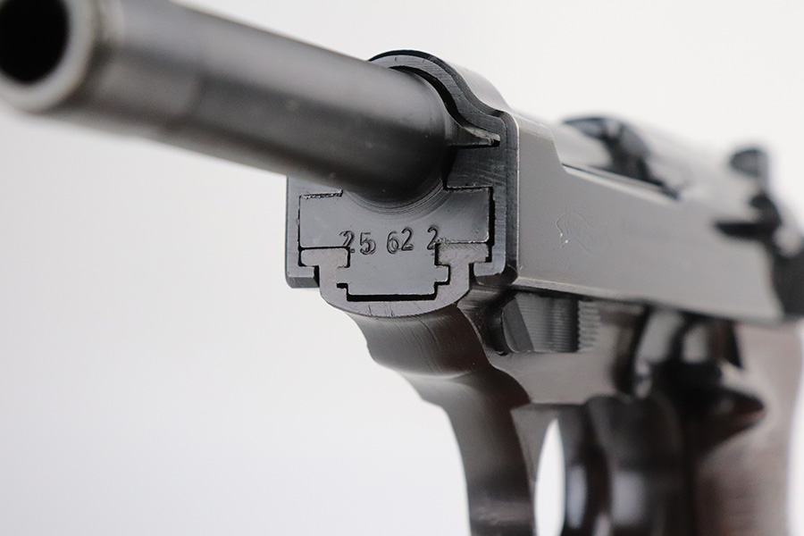 8/2/21 – This is a gorgeous example of a Walther Mod P.38 sold in the commercial market in the 1940’s. This particular gun is listed by serial number on Page 102 of Volume I of Buxton’s P.38 Book. It is all matching and has the proper commercial “Eagle N” proofs. It has retained about 99% of its bluing. There are just a few small spots of discoloration on the right side of the slide. Comes with excellent grips and a period-correct magazine. Mint bore. De-cocker is functional.