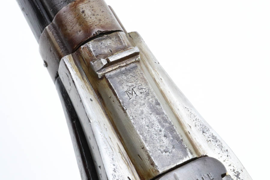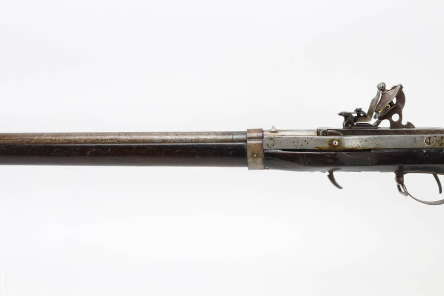 08/05/2024 – For sale is a nice Model 1819 Hall rifle made in 1825. These muskets are unique as they had implemented a very early breech loading system for US arms. The musket is in a flintlock configuration. The overall finish of the rifle heavily worn and there are spots of patina and shallow prickling. The flintlock action locks up properly and the breech loading mechanism functions well. The stock is well worn and other are two cracks at at the top where it meets the receiver. The bore is dark.