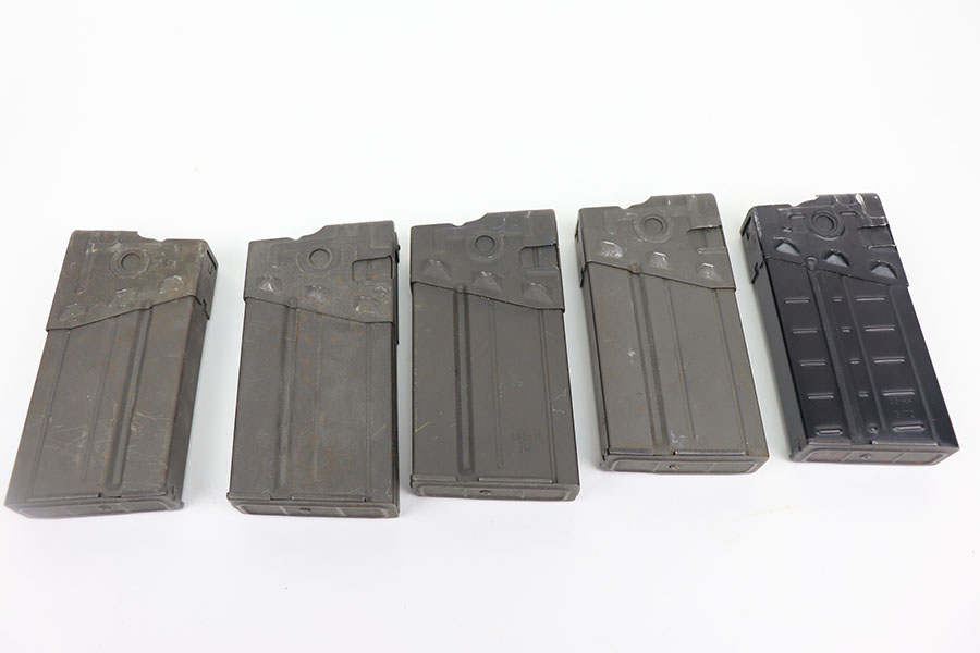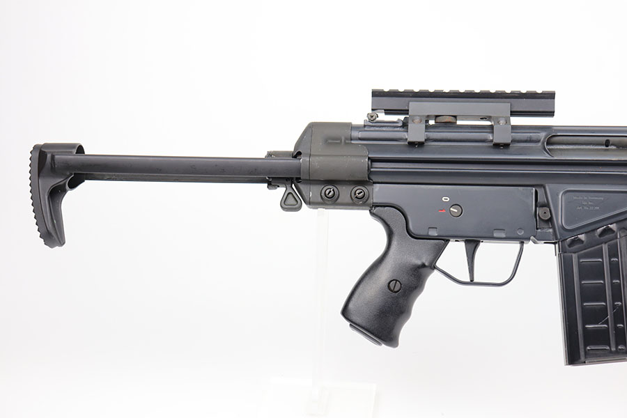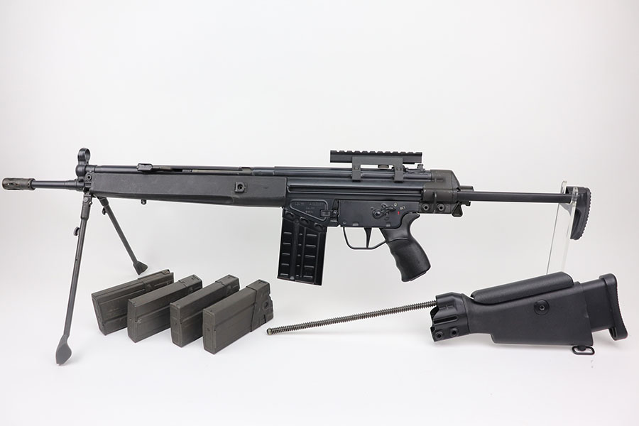 3/15/21 – This is an excellent example of the desirable Heckler & Koch HK91 in rare sniper configuration with sniper trigger. Date code dates this gun to 1981. Excellent finish with just a tiny bit of scuffing and handling wear on high edges. Minty bore. The listing includes the fixed sniper-style buttstock with cheek pad, and also the adjustable stock variation. The listing includes a total of five magazines, one of which is HK original.