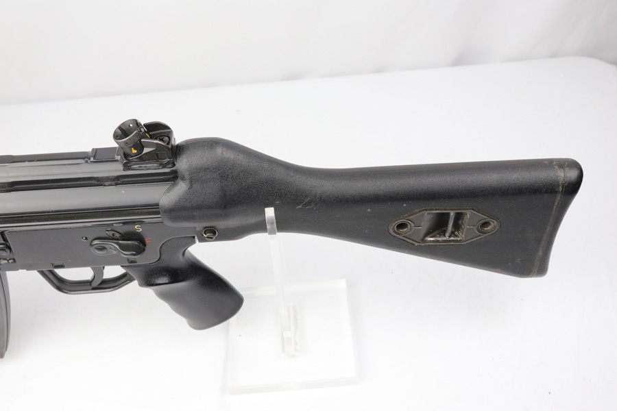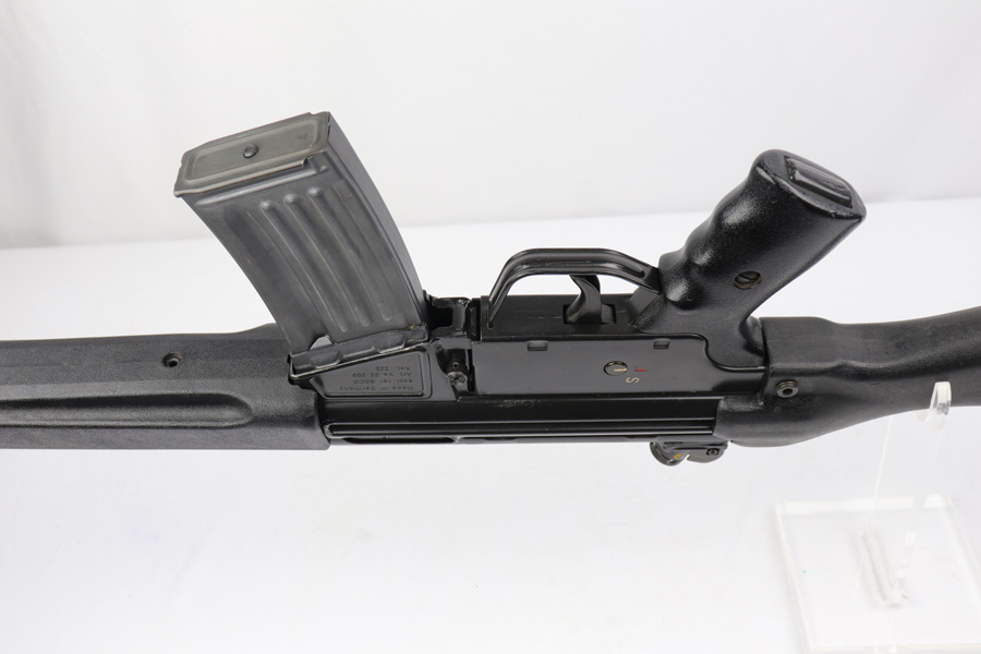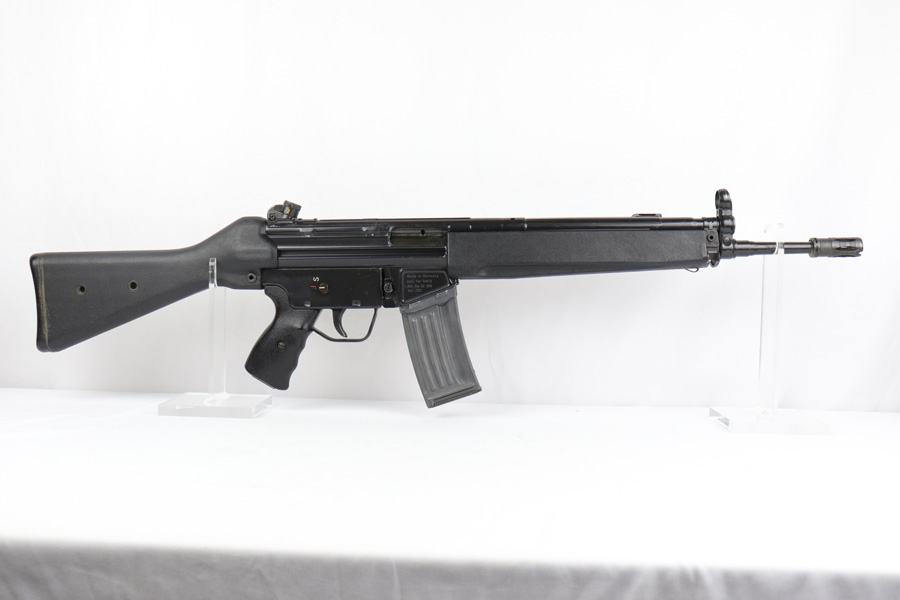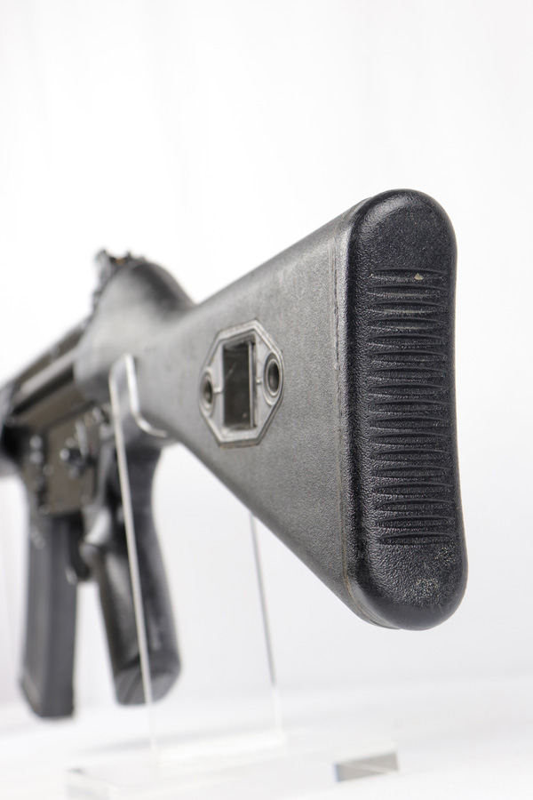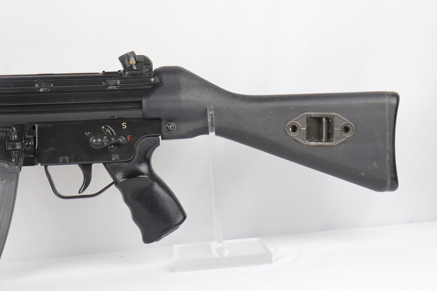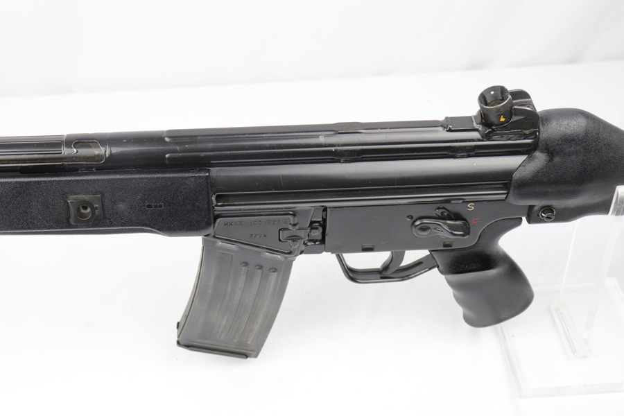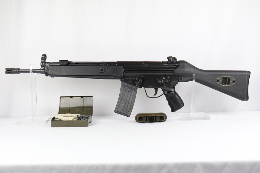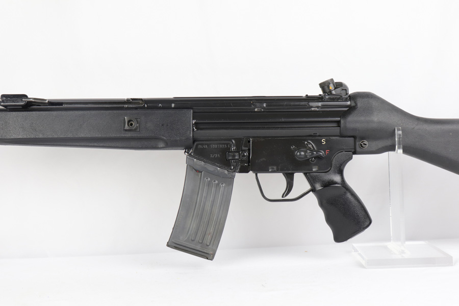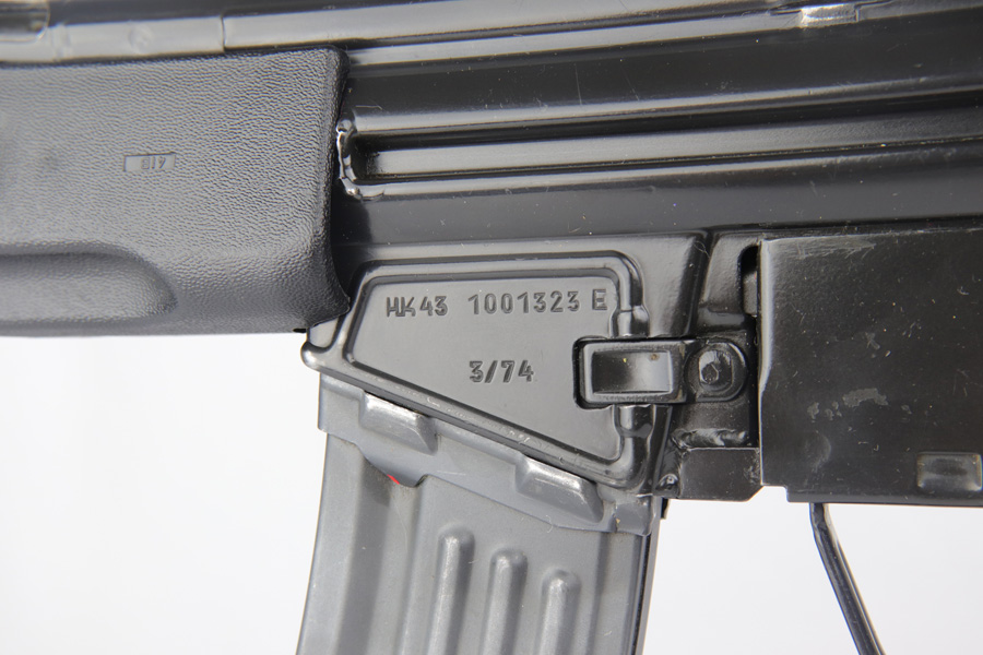 1/31/19 – This is a great example of a rarely seen HK43 assault rifle, chambered in .223 (5.56mm) and made in 1974. Only about 300 of these rifles were imported into the US, before being superseded by the HK93 model. This gun is all original and retains almost all of its finish with just a few rub marks here and there – and a few tiny scratches on the scope mounting points. The majority of finish loss is on the muzzle brake. Excellent bore and furniture. Comes with a cleaning kit, original manual and a spare buttplate. The least common of all of the HK rifles currently in US, the HK43 can be a centerpiece of any H&K collection. An original, cased German Fero sniper scope in minty condition can be made available to the purchaser at extra cost.