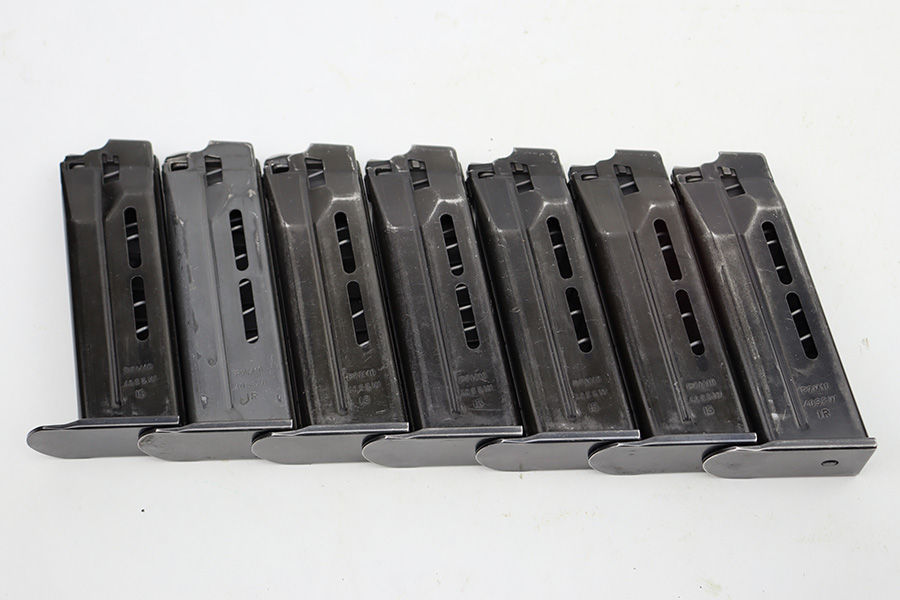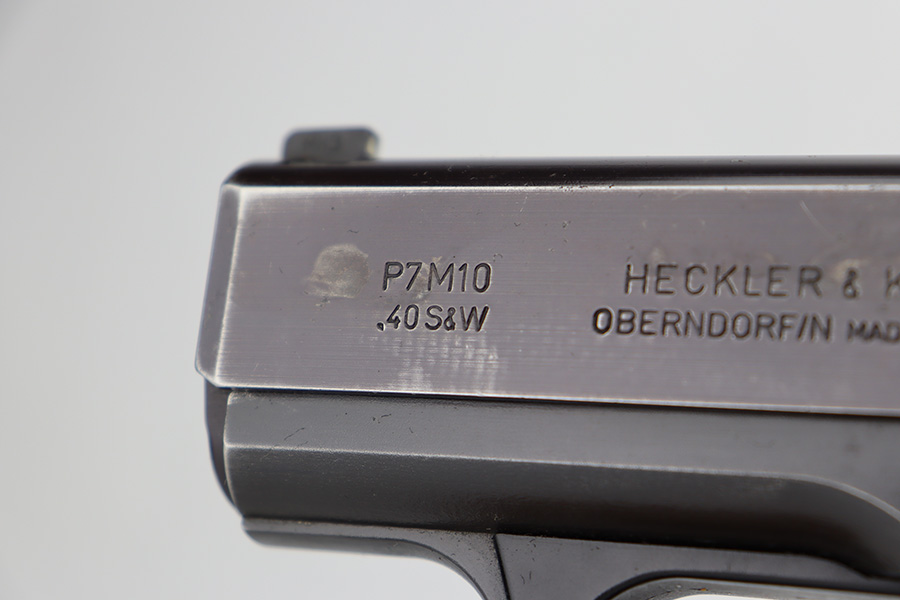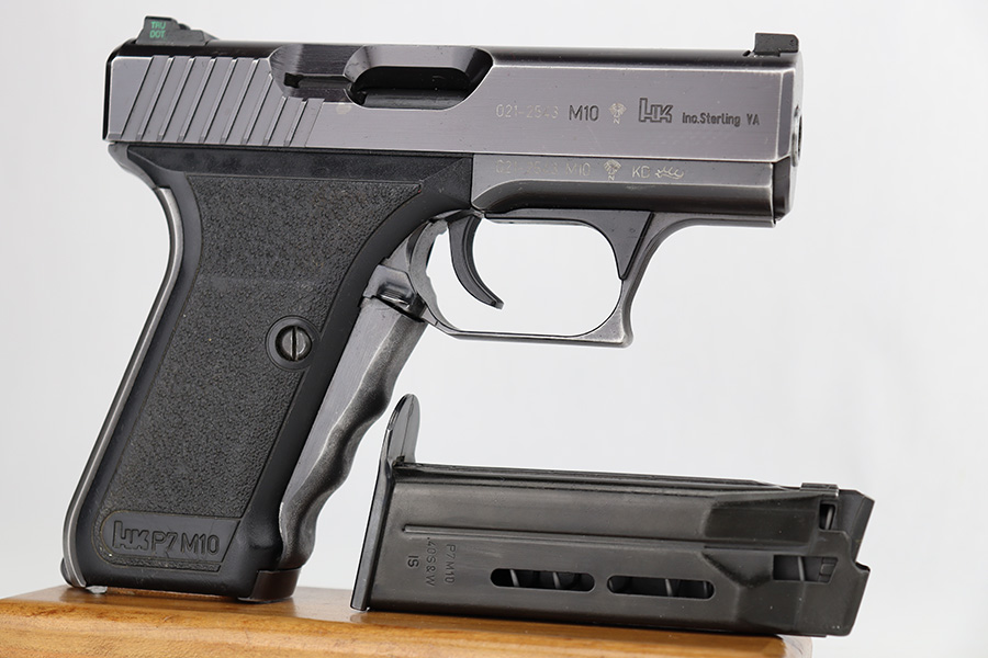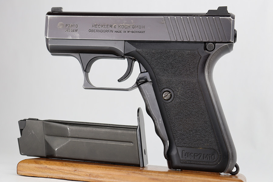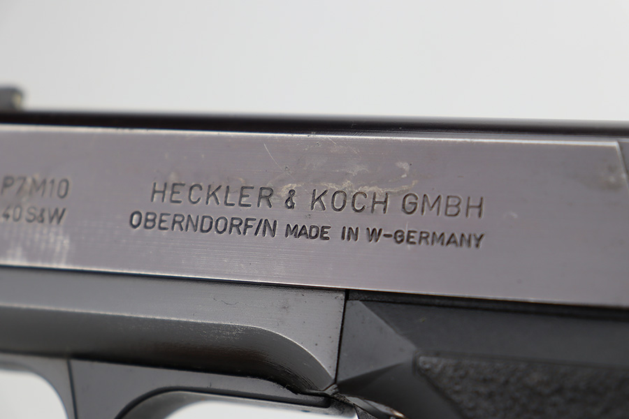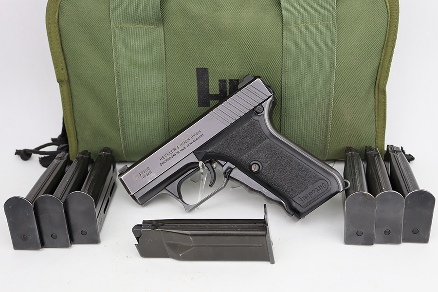 6/12/23 – This is a rare and desirable Heckler & Koch P7M10, the first we have offered. It’s all original with around 90% of the finish remaining, as there is some thinning on the grip safety and some wear on the left side of the slide. Minty bore. Date code of ’93. Comes with an HK carry case, as well as a total of seven original mags, which sell for $120+ each.
