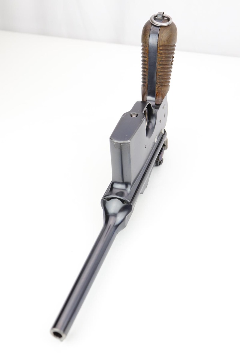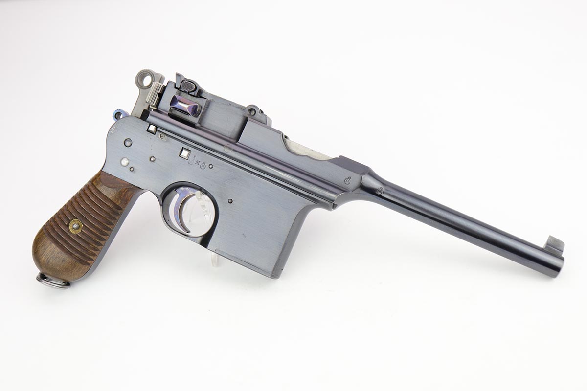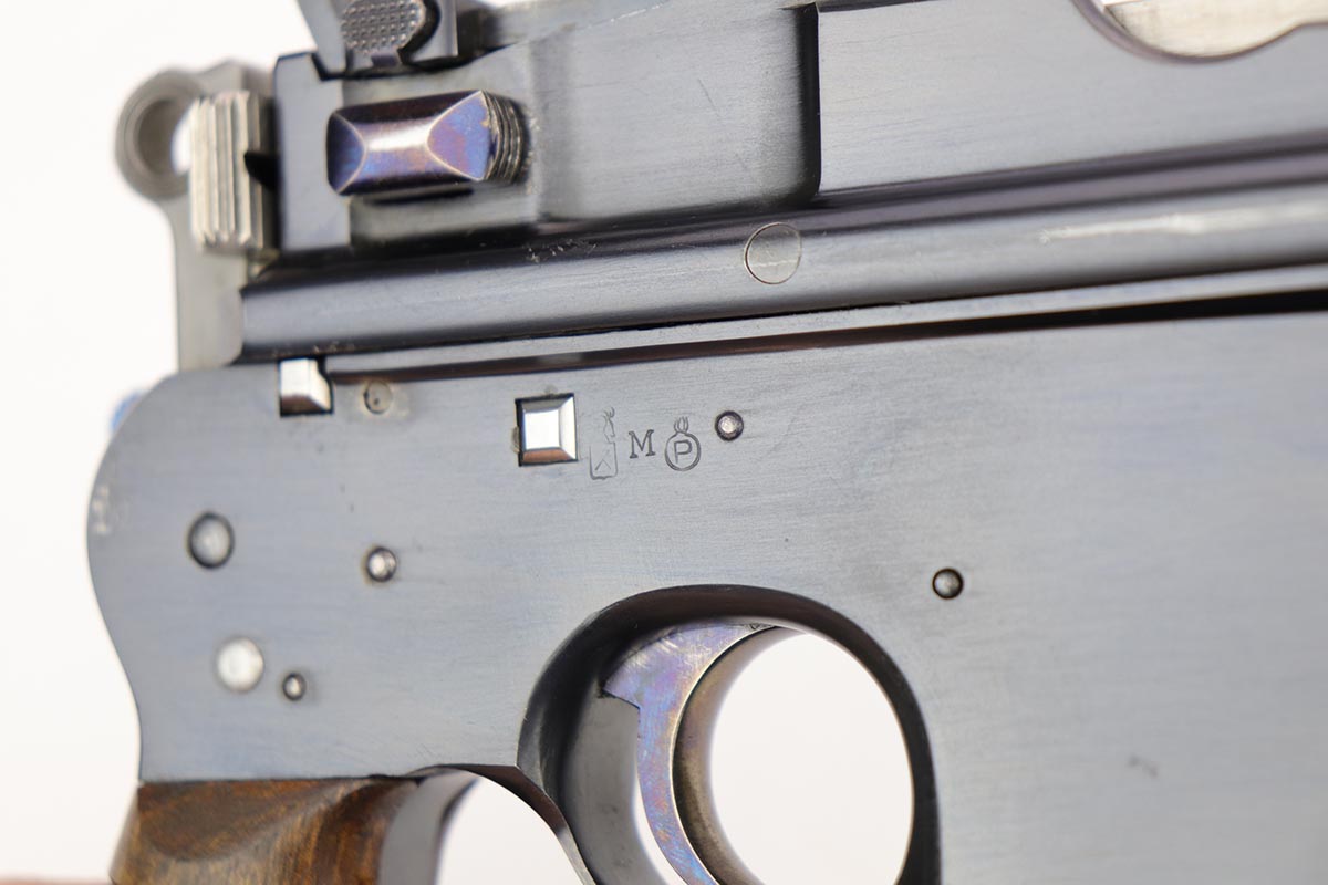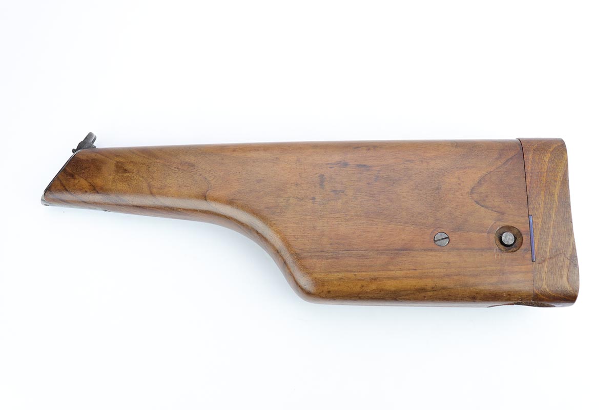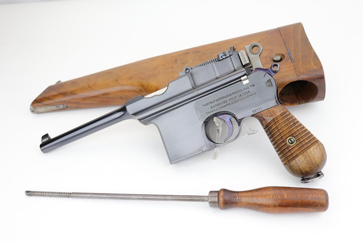 In March 1943, 1,052 Astra Modelo 900 semi-automatic pistols with their matching holster/shoulder-stocks were procured by the German forces in southern France. This well documented last shipment of Astra M900’s to the German Army were delivered to the Army Headquarters in the town of Hendye, France but for unknown reasons were not die-stamped with the typical Army Waffenamt acceptance stamp. Therefore, these units must be identified by their serial numbers. This Model 900 Pistol was manufactured in 1941 and delivered to the Wehrmacht in March 1943. Unlike the other Astra model pistols procured by the German Army, these few Astra M900 weapons did not see extensive service or harsh use with the Wehrmacht.