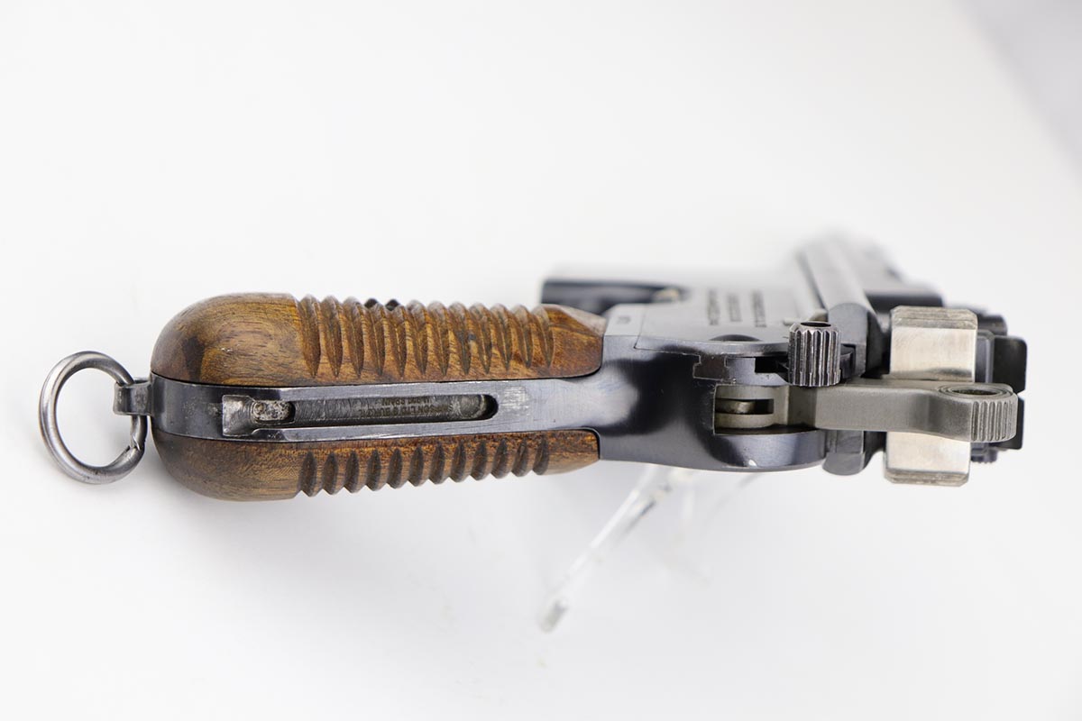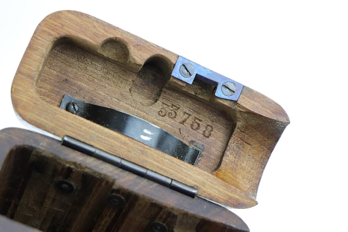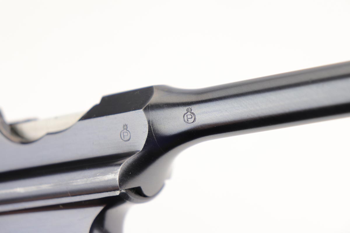 2/7/20 – This is a rare and immaculate Astra 900 rig, including stock and cleaning rod, that was one of about 1,000 sent to the German Army. The pistol has 98% of the original, lustrous blue remaining, showing just minor hints of high edge wear, and a spot of finish loss on the back right side of the frame. The pistol is all matching, including the grips, and has a mint bore. The stock is original but mismatched to the gun, which is very common for this model. It’s also in terrific condition with just a minor nick or two. The same can be said for the original cleaning rod. There is a minuscule import mark inside the stock slot. More info and history below.