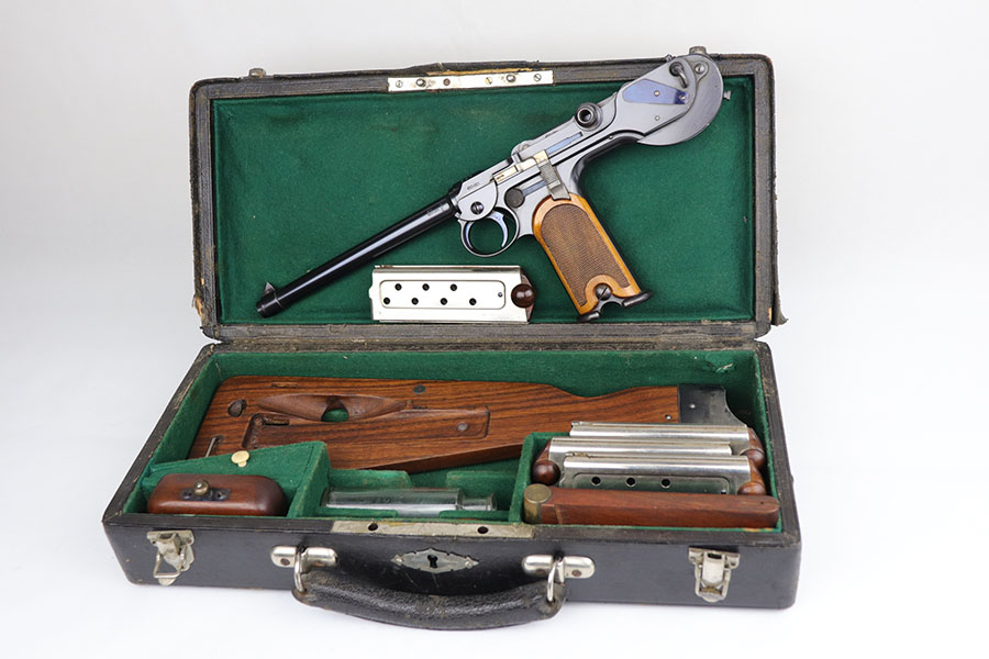 SOLD – Rare, Incredible Borchardt C-93 Luger Grouping – Four Matching Mags