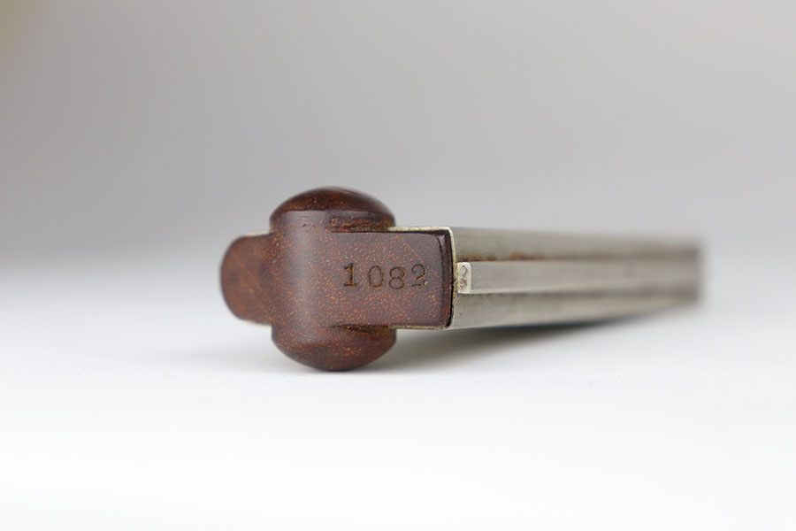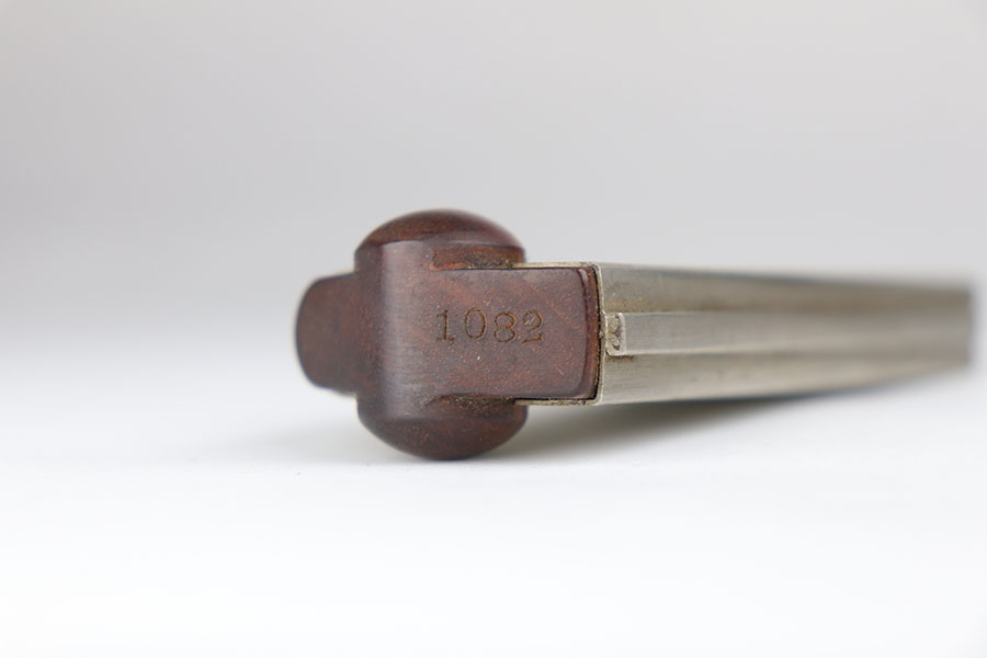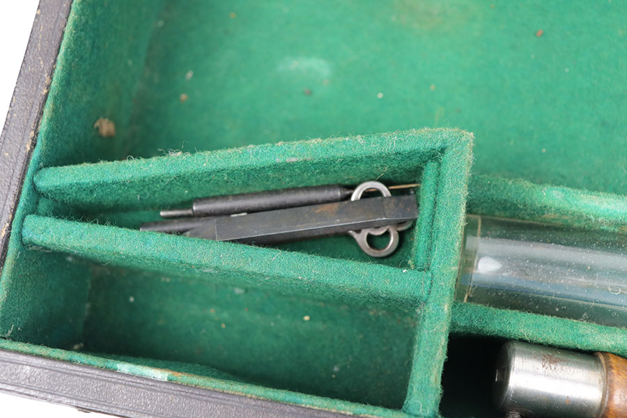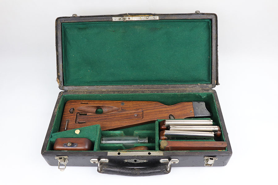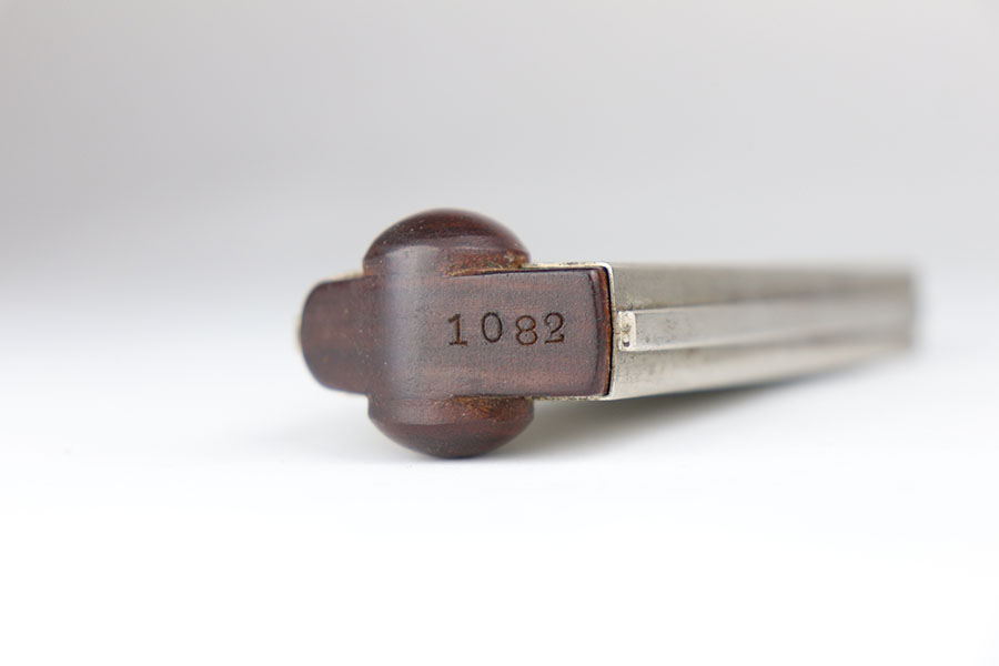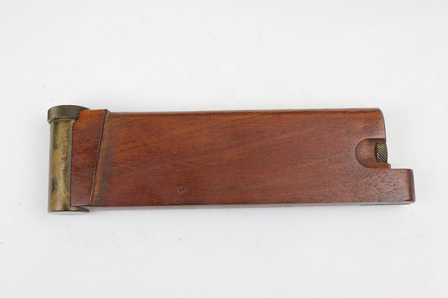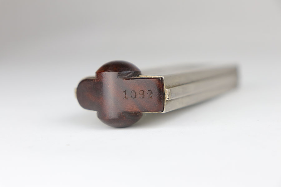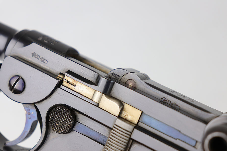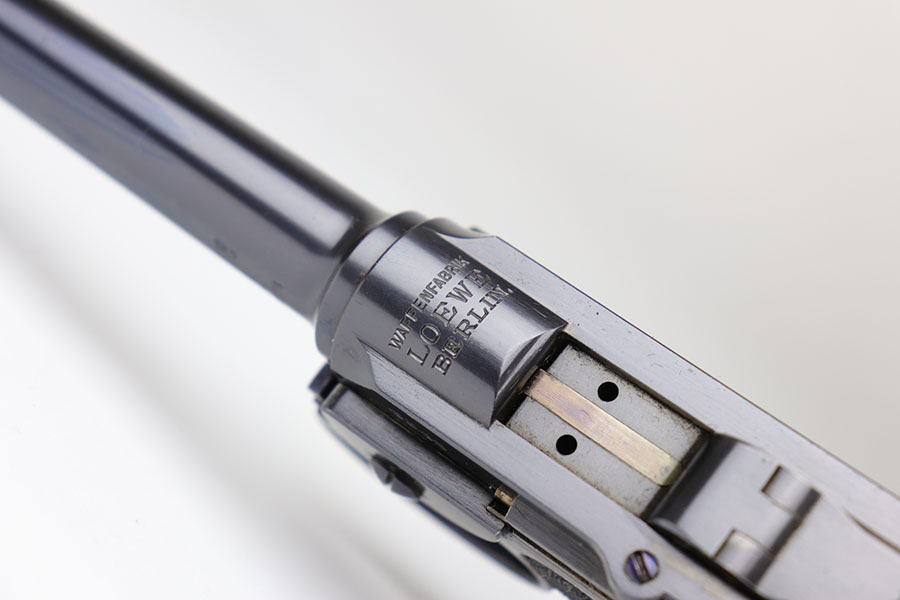 6/9/20 – This is a rare and gorgeous Borchardt luger, or C-93, with original case and extras. It’s likely one of the finest existing examples remaining, especially with all four of the original, matching magazines. The original bluing rates at 98+%, with minor muzzle wear, and a little bit of finish loss where the stock attaches. The included accessories: four magazines that match the pistol, the wooden shoulder stock, matching numbered cheek piece, takedown wrench and pin-punches, brass cleaning rod, and oiler, which are all contained in a Borchardt black leather bound carrying case. The case shows some obvious wear but has its structural integrity. Mint bore on the pistol, to go along with the condition of the grips and bluing.