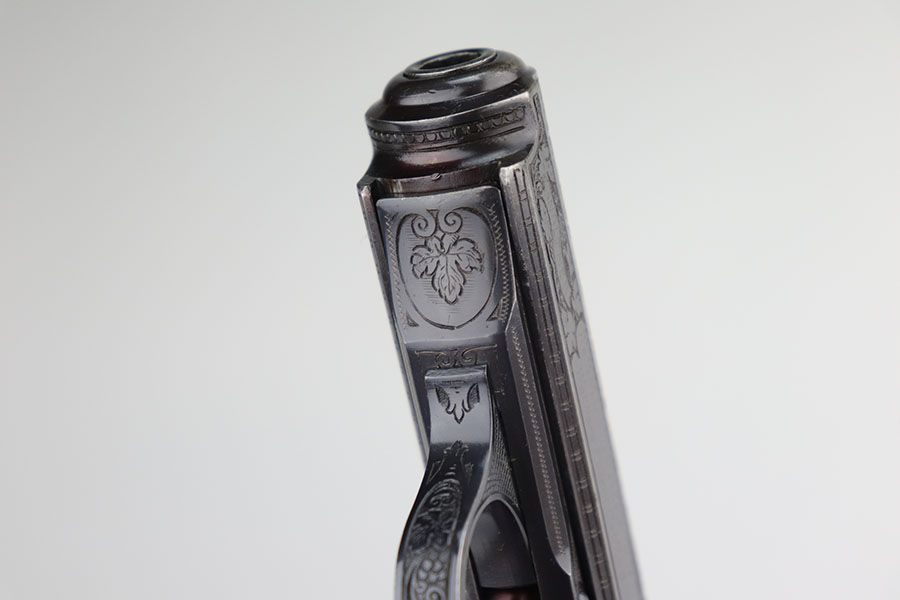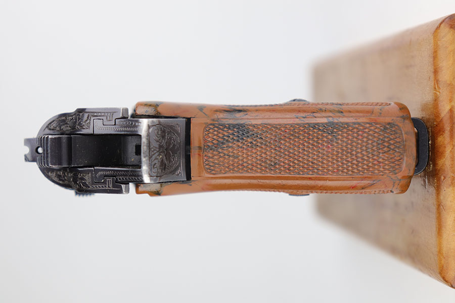 12/14/20 – This is a super rare and immaculate Walther PPK with factory engraving. Made in 1940, it’s part of a small block of confirmed factory engraved examples. Gorgeous acorn and oak leaf engraving style covers the pistol. Even the grip screw is engraved! Hardly any signs of use or wear with a mint bore. Terrific grip and finger extension with no cracks or chips.