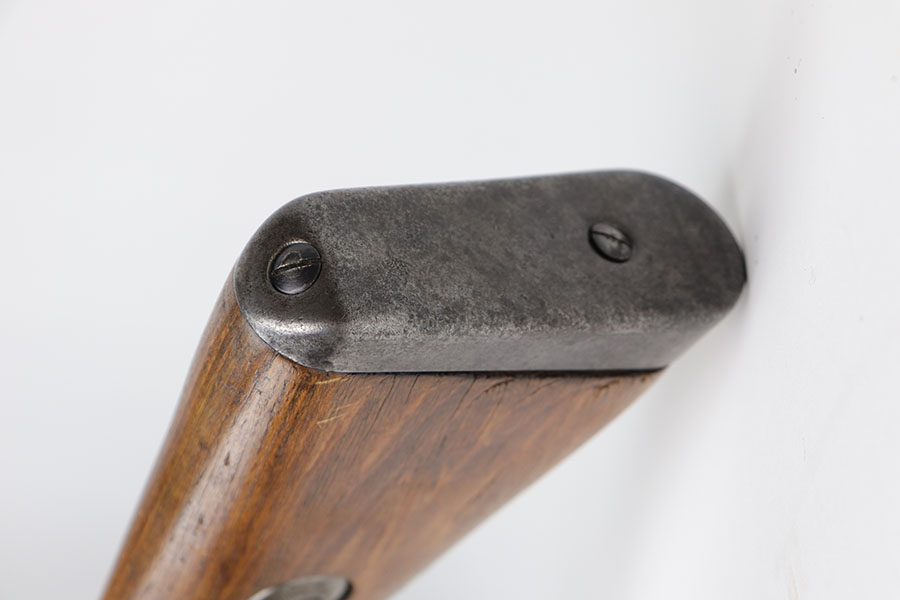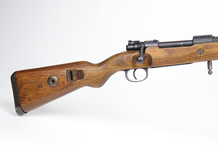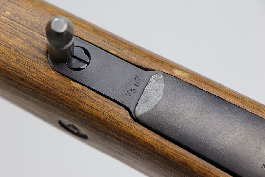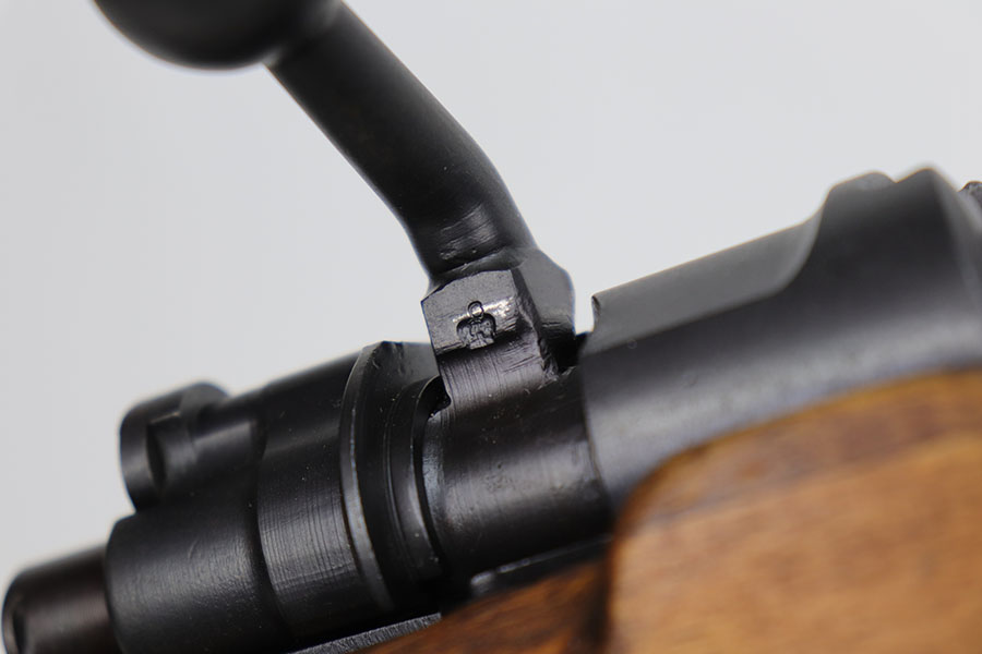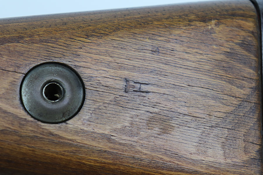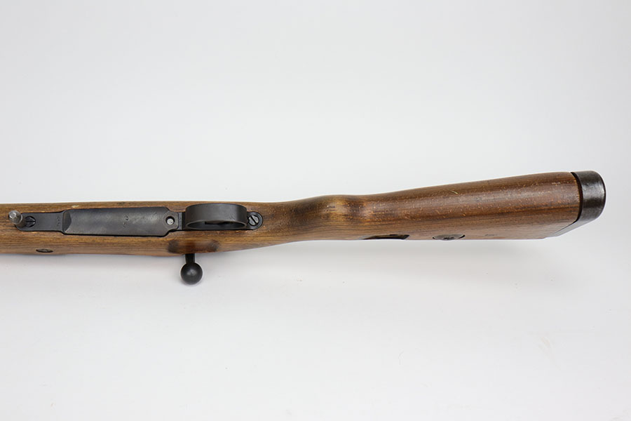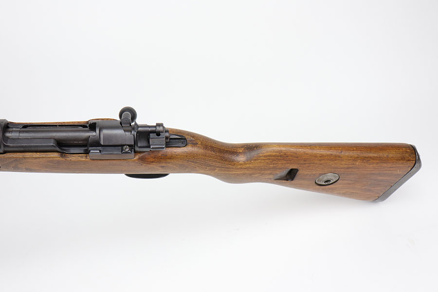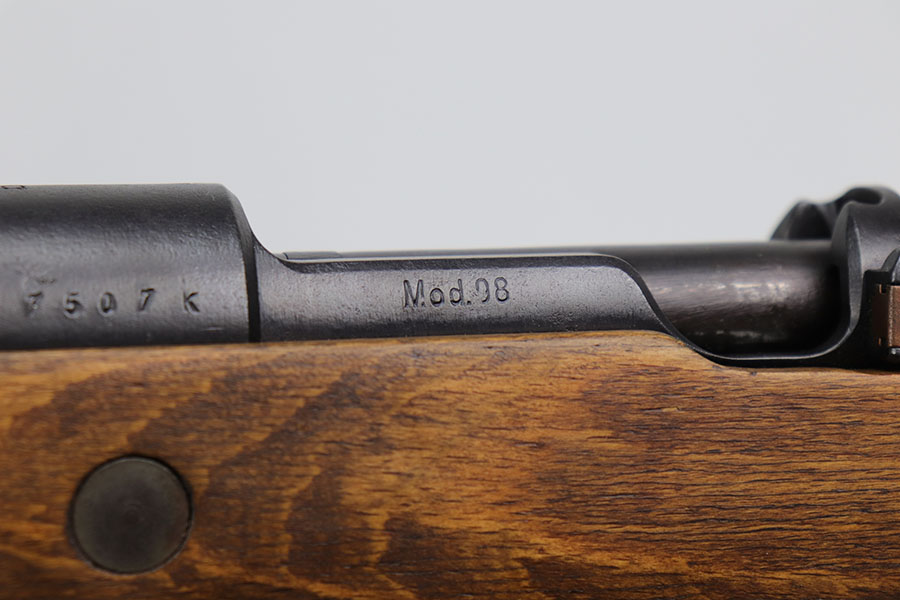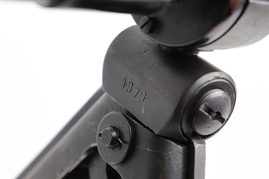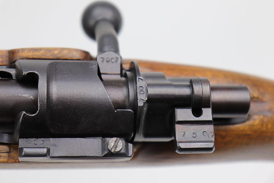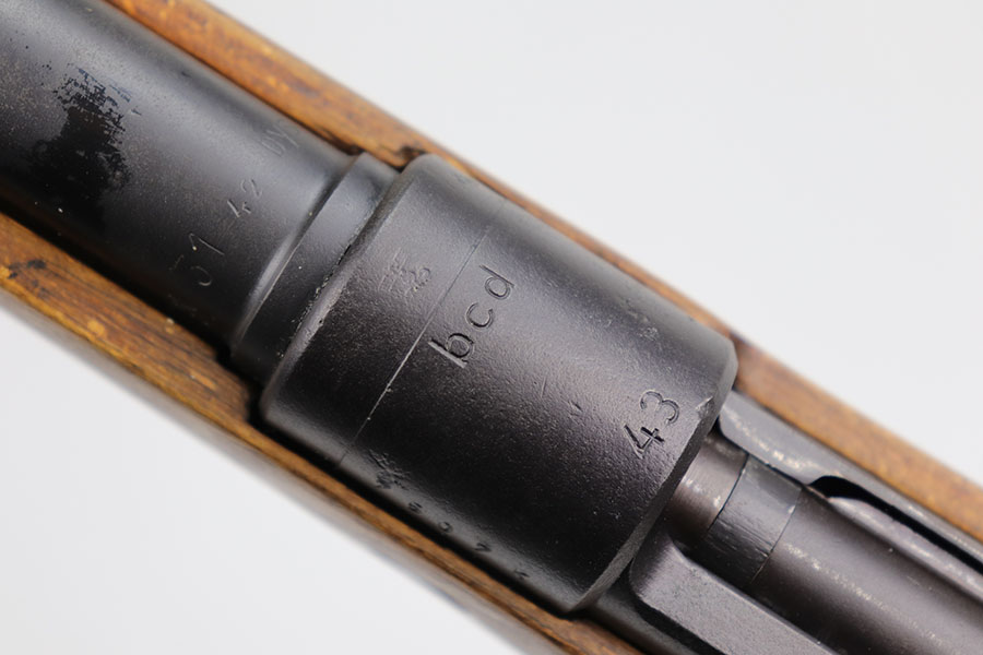 12/3/20 – This is a very interesting and potentially rare Nazi K98 in grenade launcher configuration, the first of its kind that we’ve encountered or offered. The base rifle was made in 1943 at the Gustloff-Werke factory and all numbers match with clear Heer Army waffenamt on stock. But as you’ll see, the rifle has been modified with original grenade launcher and bi-pod built directly into the barrel. The bi-pod is 1939 dated with maker mark and waffenamt. The barrel and launcher have that black enamel paint finish, similar to the S.A.C.M. 1935A. The finish on the original metal parts was redone at some point, too. Stock is in excellent condition. The bore is pitting and frosted throughout, perhaps facing extra corrosive material when used for launching. Overall a super cool and unique piece.