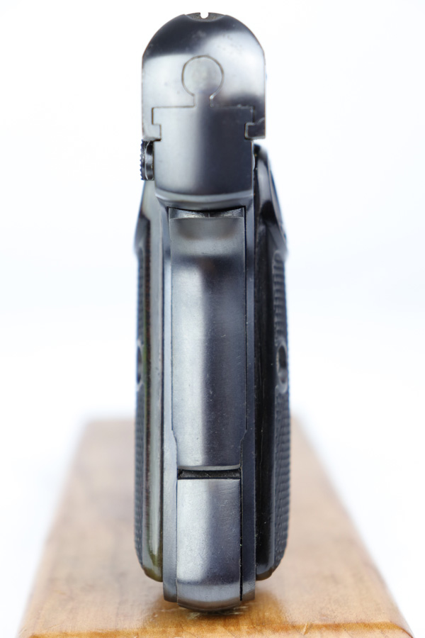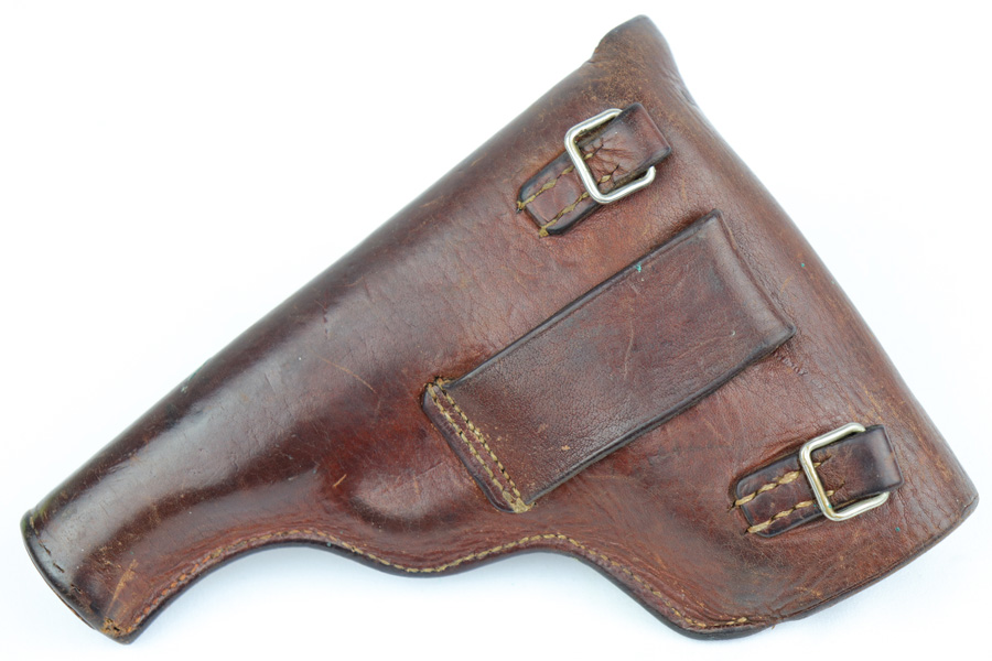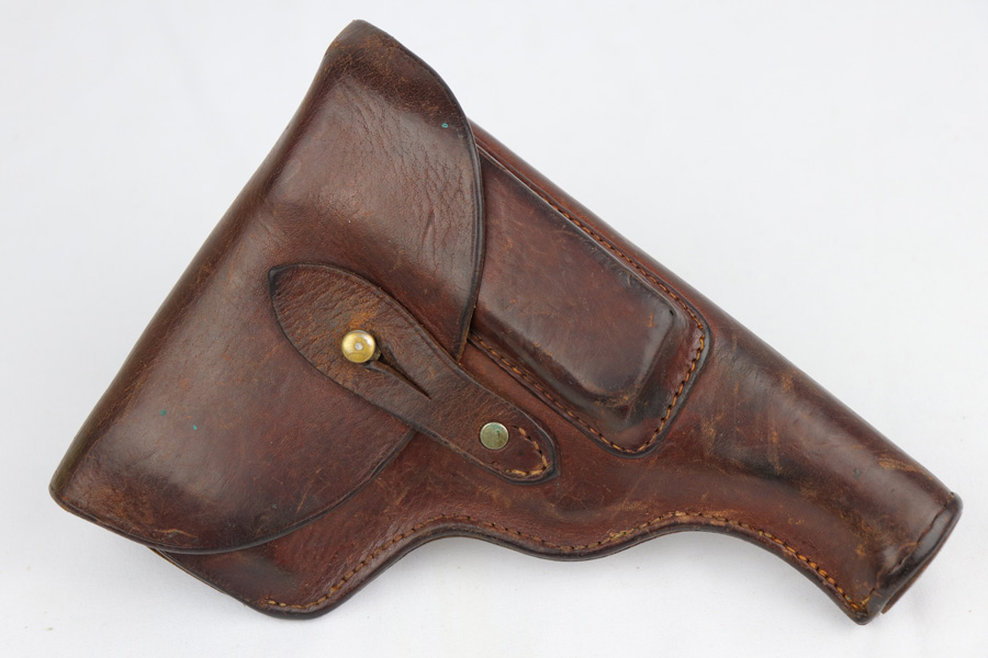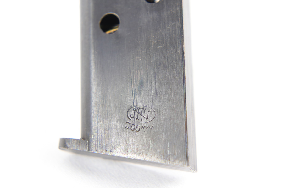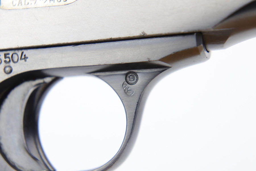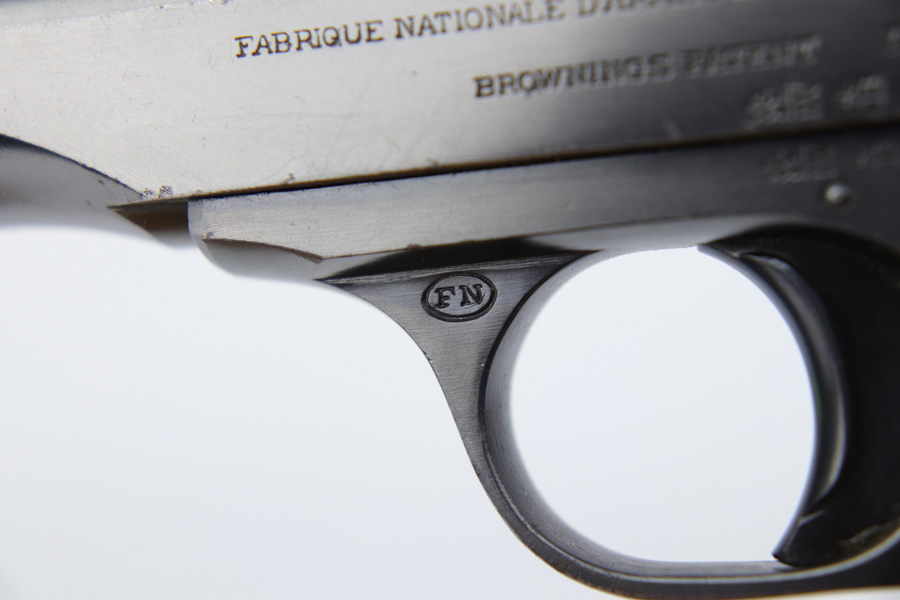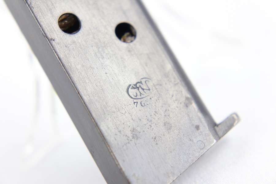 11/1/18 – This gun is a super rare Japanese procurement FN 1910 rig with original capture papers. Japanese officers had to purchase their own sidearms and many opted for European made handguns in .32 and .25 caliber. FN 1910 models proved to be very popular and were purchased with locally made holsters. A vast majority of the FN1910 Japanese procurement guns had a kanji marking preceding the serial number on the right side as the only proof that tied these guns to Japan. However, there were a few that were purchased in the early 30s that had no identifiable Japanese features. The only way to conclusively prove the Japanese connection for these guns is the presence of the capture papers and of the correct Japanese made holster. This is one of those guns. It remains in 98% original condition with just a hint of wear on the edges of the slide, and a couple of small areas of surface freckling at the front and back of the slide. It comes with a rare, one of a kind holster that actually has a maker mark in English, but was made in Tokyo! It has all the attributes of the Japanese made holsters, including the loops for the shoulder strap carry. There are also two original magazines. The capture papers specify the gun by the serial number. There is also a tag with Japanese writing, identifying a specific officer that the gun belonged to. We will attempt to get the translation soon. Excellent bore and grips. This is a rare opportunity to add such a set to your collection! NOTE: We were able to get the translation of the Japanese tag that came with this rare set. It identifies the gun as a personal sidearm of a high ranking Japanese officer and reads: