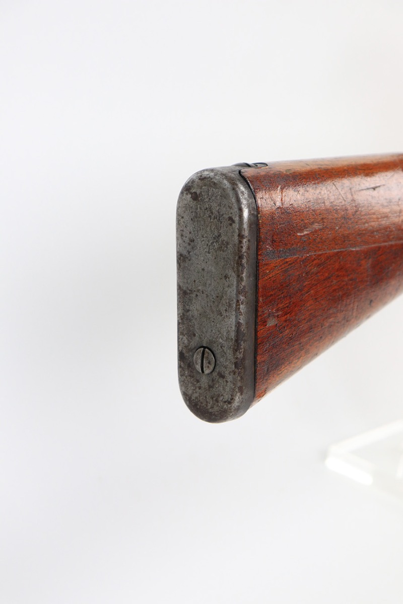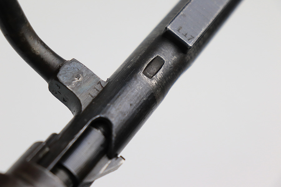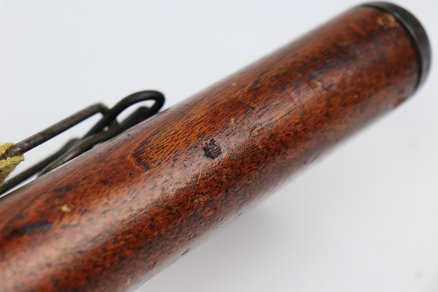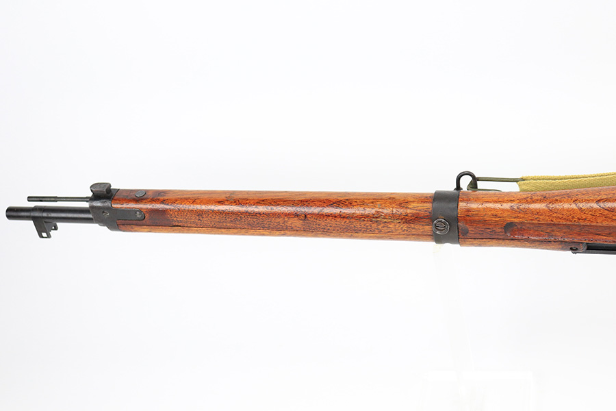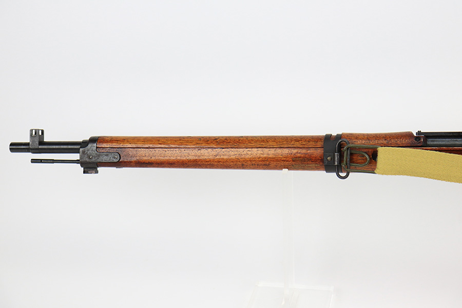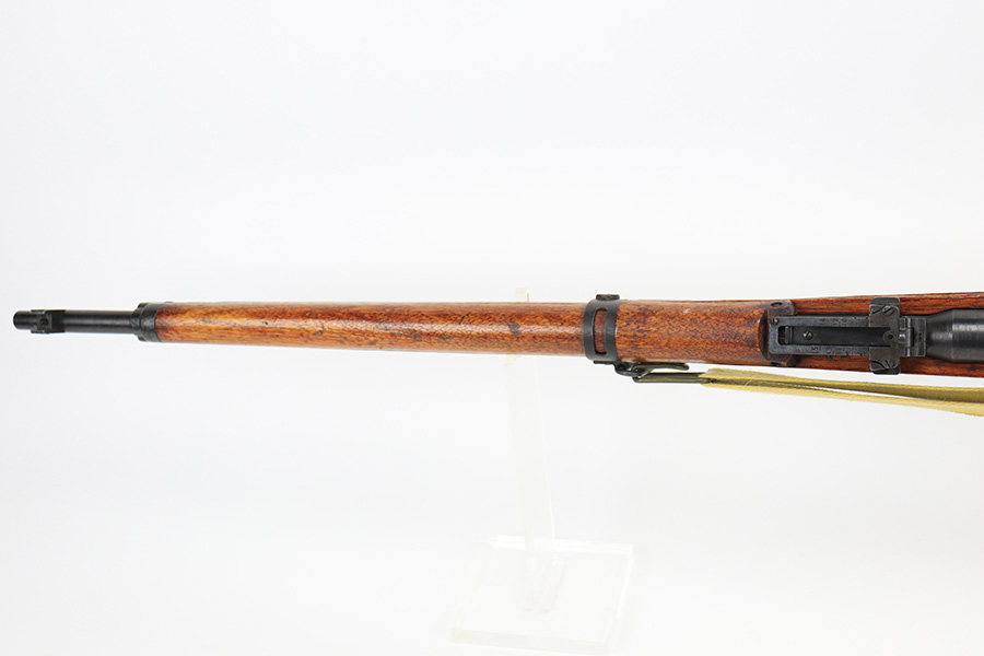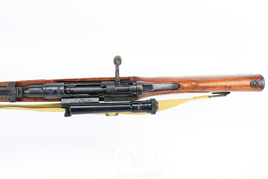 5/6/22 – Here we have a rare and desirably Japanese Type 99 sniper rifle that was made in 1943-44 at the Nagoya Army Arsenal. They had a contract to produce 10,000 Type 99 sniper rifles, with the first 5,000 being fitted with the 4x scopes. At serial number 5,000 they started to use the smaller 2.5x scopes that were left in inventory from the earlier Kokura contract, which is what we have here. This one has an earlier Type 97 base that would’ve been used on the Kokura snipers, and this scope would originally be one of the 1000 issued for the Kokura Type 99 sniper rifles, so was likely just part of the leftover inventory. The scope is NTC marked, which is the Japan Typewriter Company and it has clear optics though there is some speckling in the sight window. The stock has correct inspectors marks on the underside, and the bayonet lug matches the receiver. The bolt is mismatched to the gun but is a proper curved example. The stock is in excellent condition but appears lightly treated with a very thin coat of lacquer. The finish on the receiver and rifle in general is in great shape with the mum fully intact. The sling is a postwar quick release example. Comes with a cleaning rod. Beautiful, shiny bore.