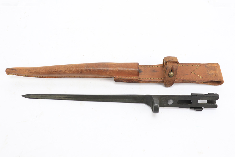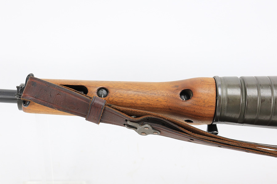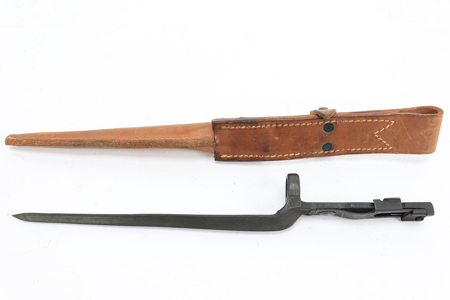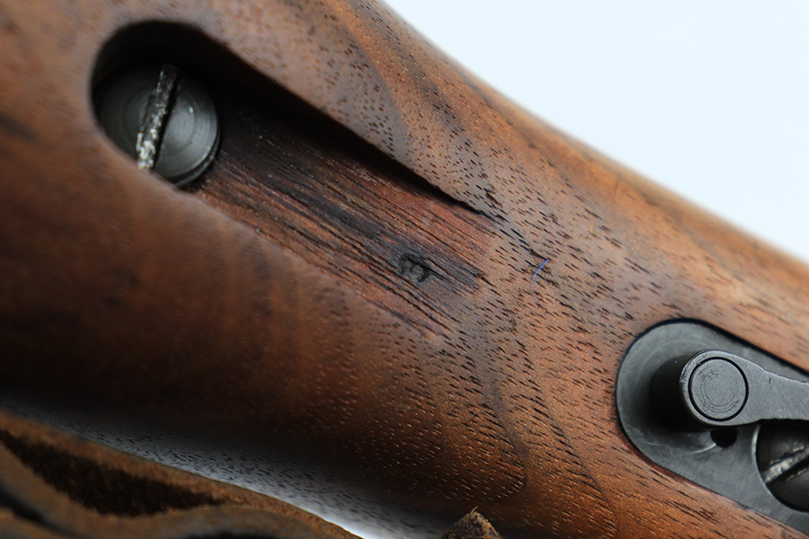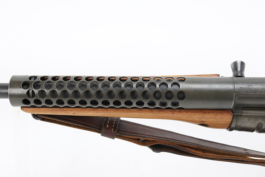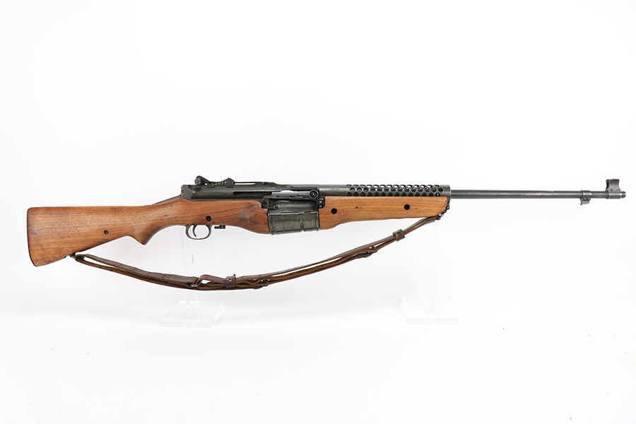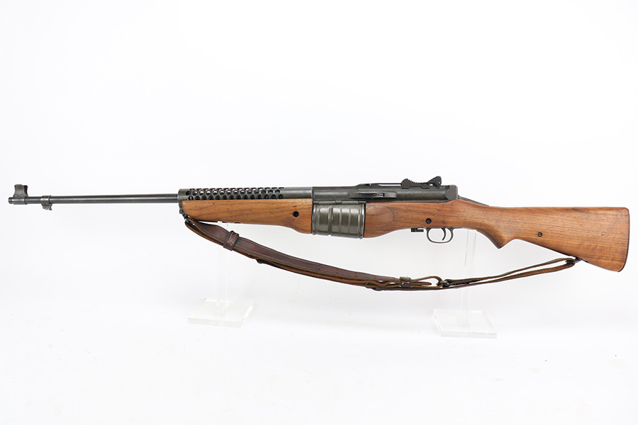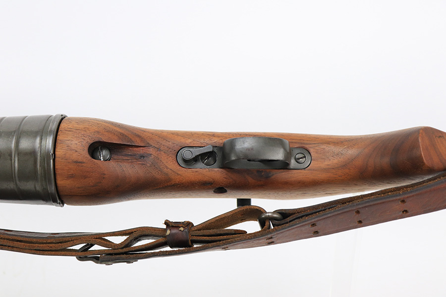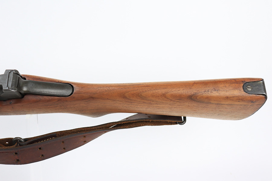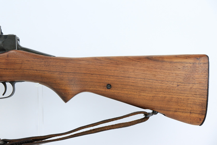 6/2/23 – This is a terrific, original Johnson M1941 Rifle from World War II! The finish is all original and shows very little finish loss. The wood is in great condition but we believe it was lightly sanded at some point.  Strong, shiny bore with just a little frost in the grooves.  Comes with an excellent leather sling, and also a rare and desirable Johnson bayonet with scabbard, which can be harder to find than the rifle itself. Only 20,000 of this model were manufactured!